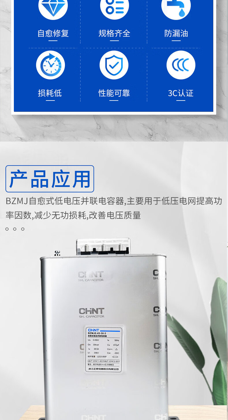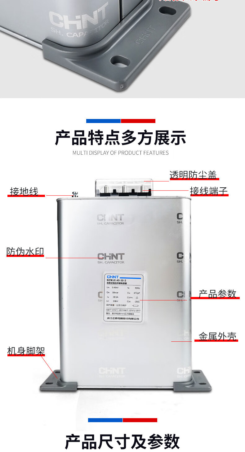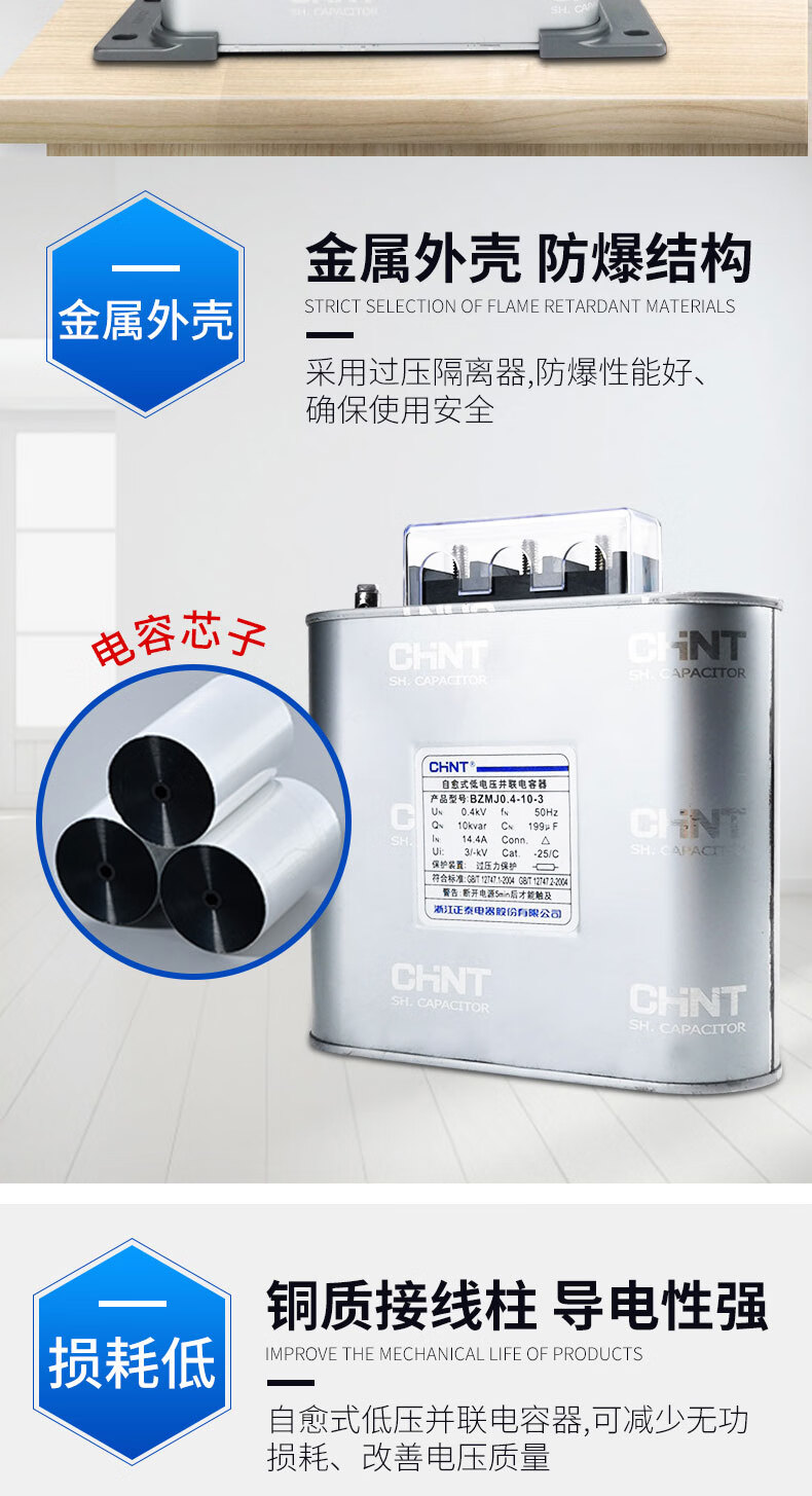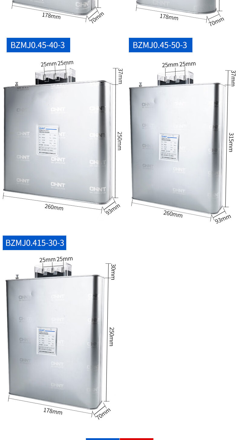 Chint Capacitor BZMJ0.45 0.4 self-healing low-voltage parallel power capacitor 450vBSMJ15 20 30 BZMJ0.45-3-3