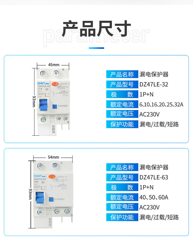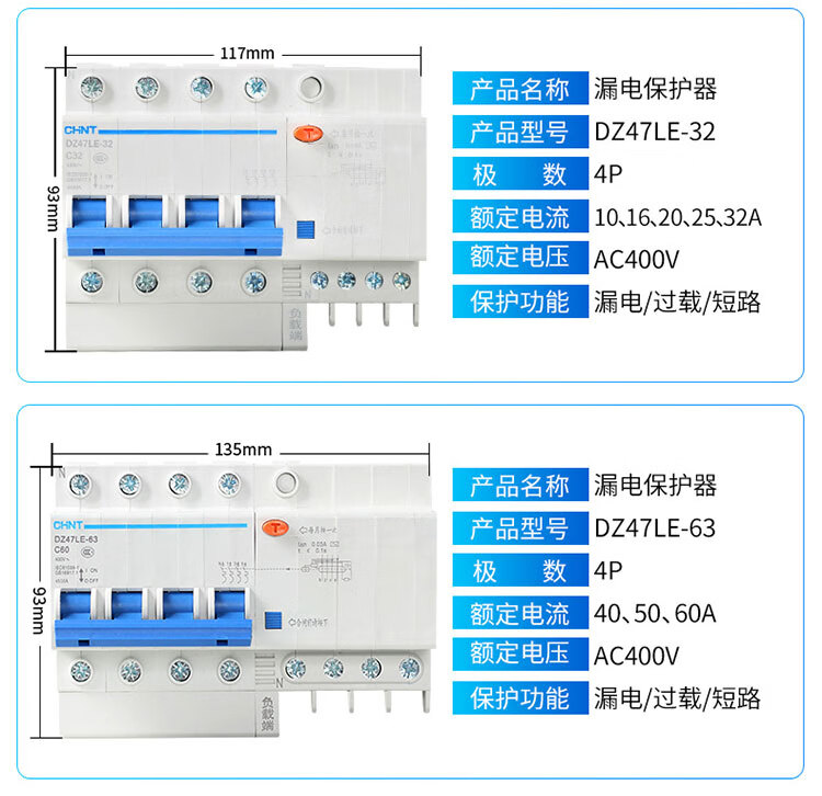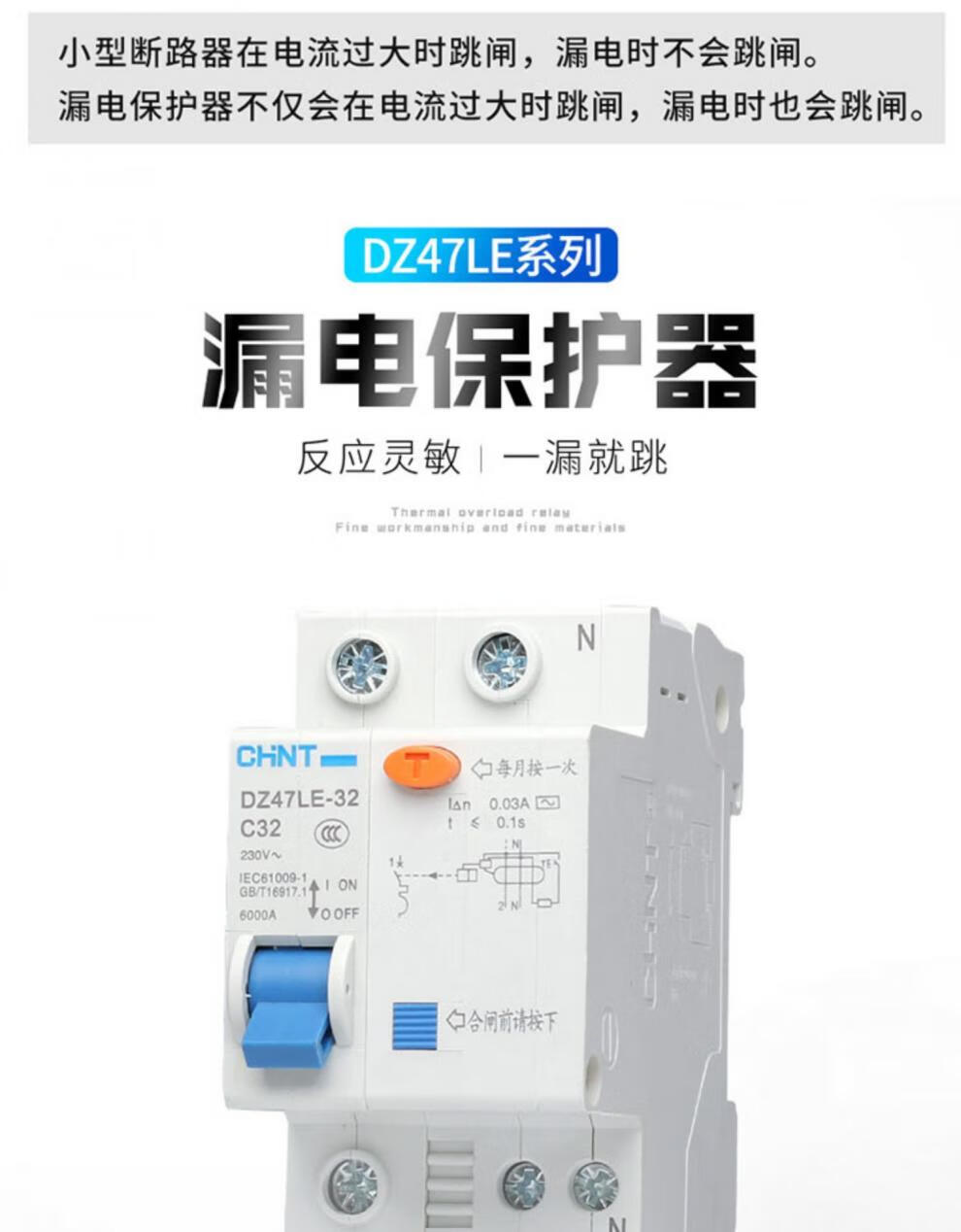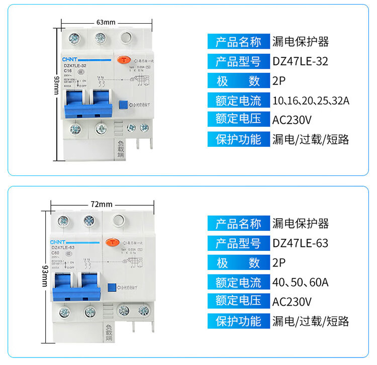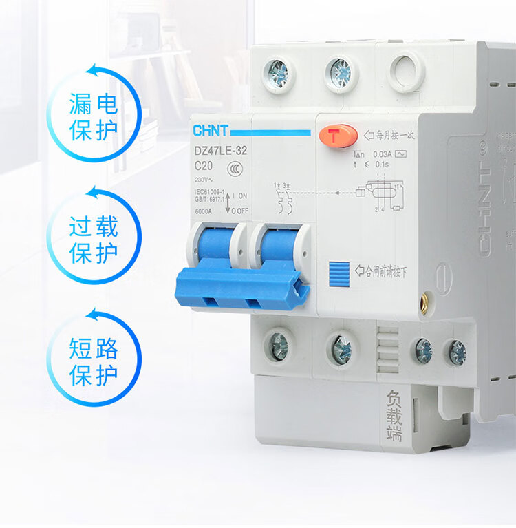 Chint DZ47LE-63/32 air switch 2P household 63A circuit breaker 20A leakage protector three-phase 380v 20A 1P+N