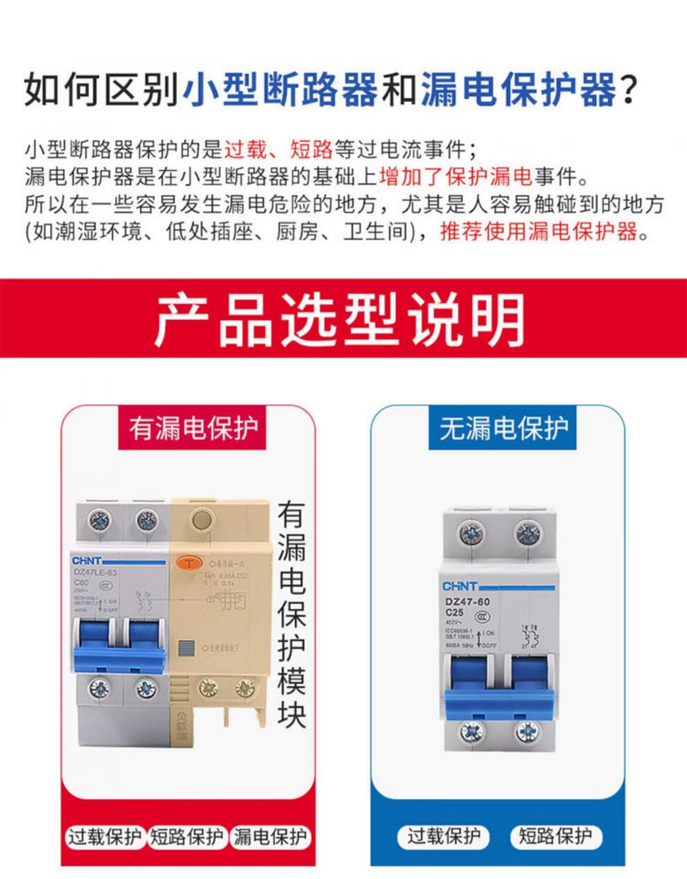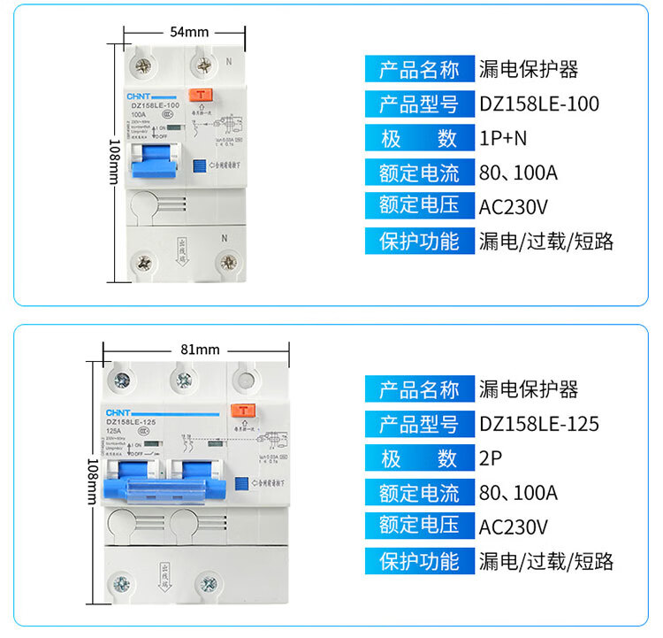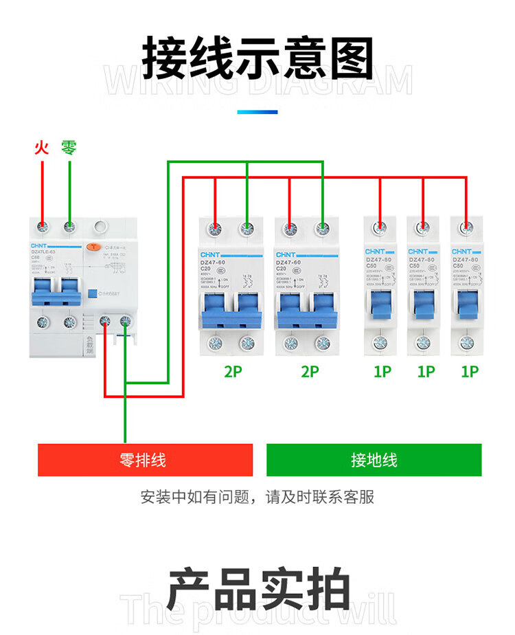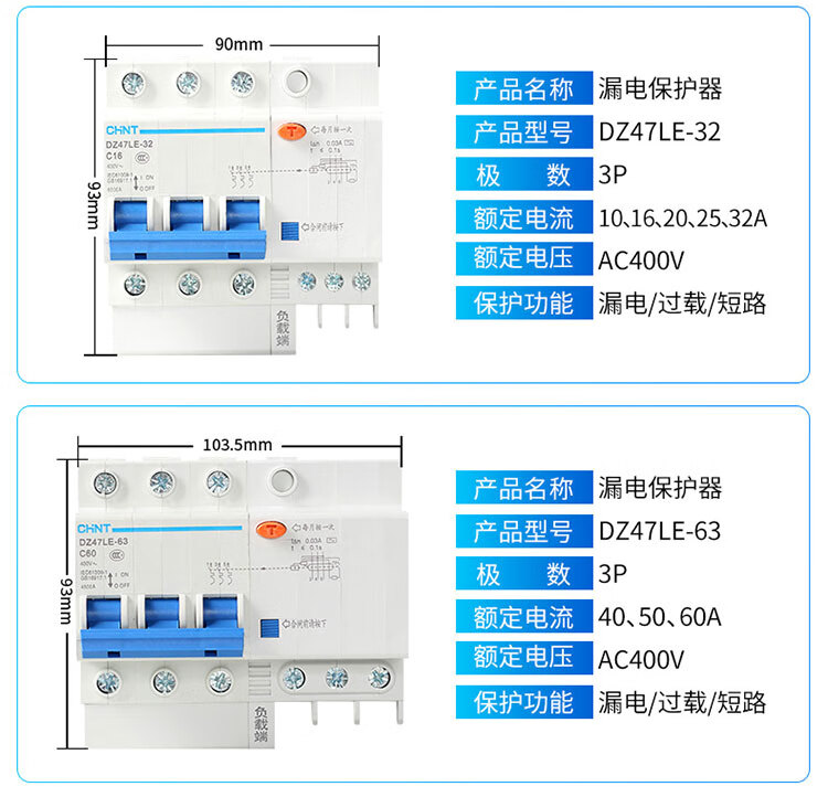 Chint DZ47LE-63/32 air switch 2P household 63A circuit breaker 20A leakage protector three-phase 380v 20A 1P+N
