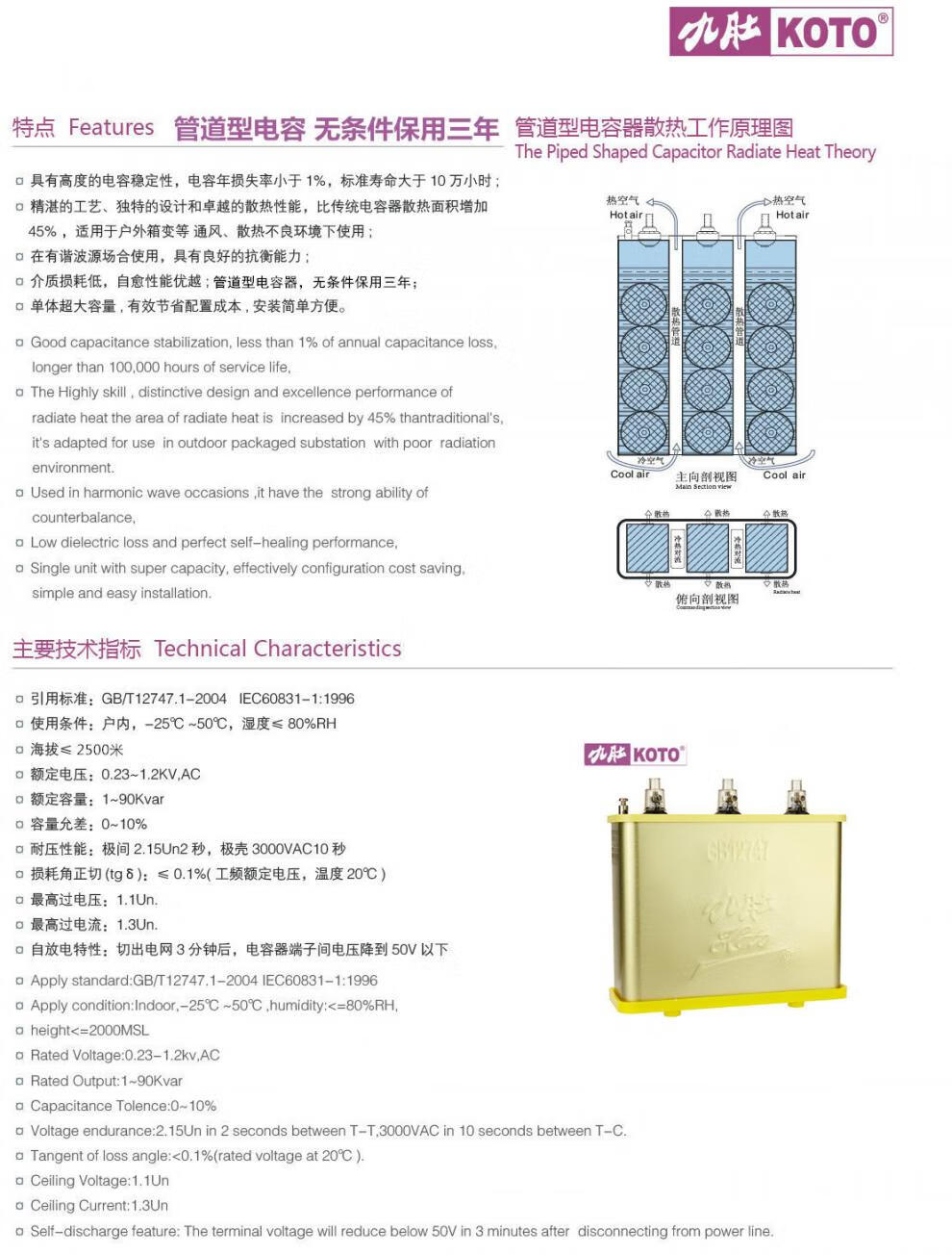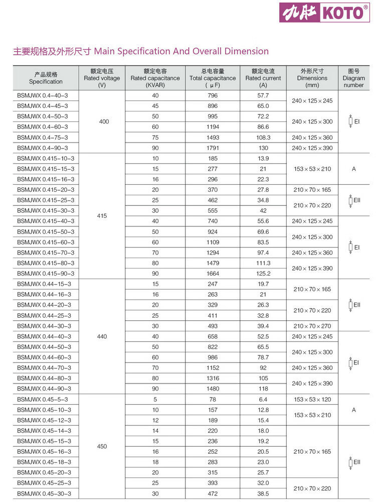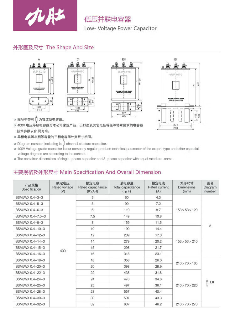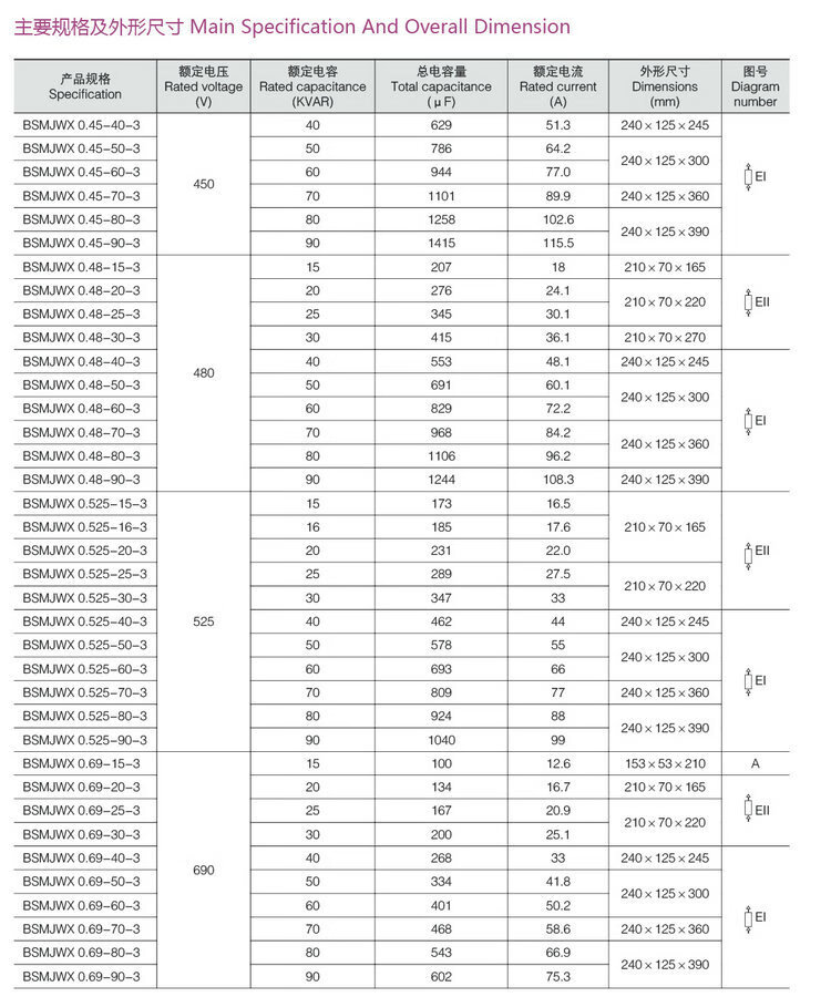 Wenzhou Weisikang Jiudu BSMJWX0.45-15/16/20/30-3 self-healing parallel power capacitor 0.45-60-3
