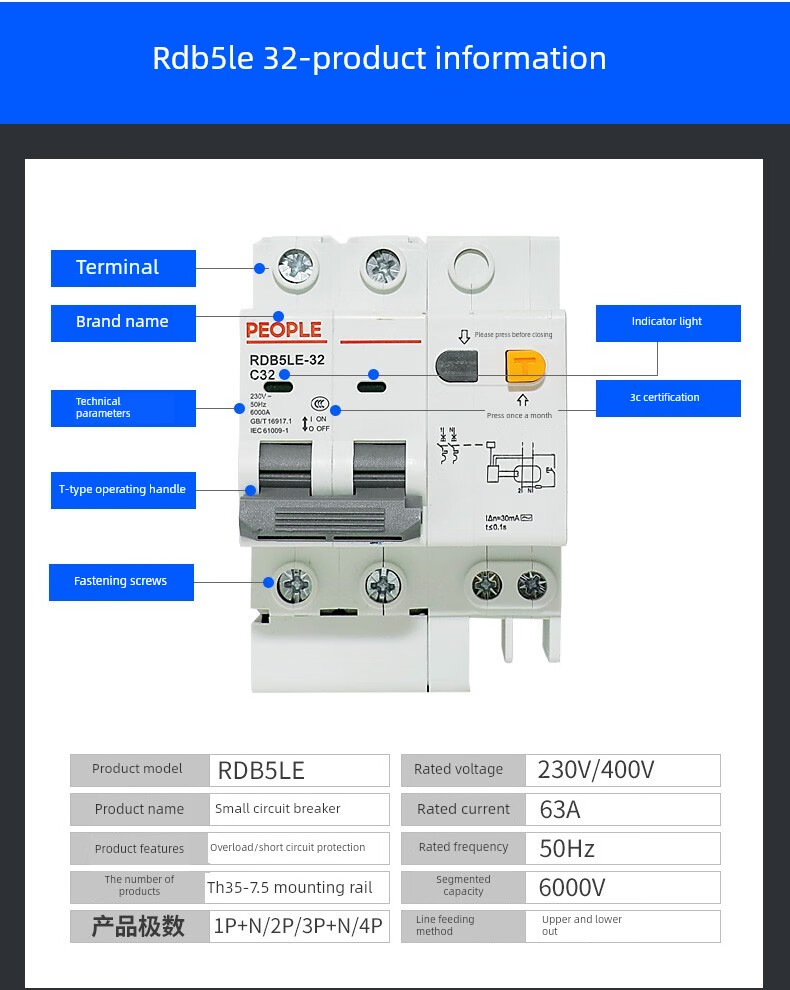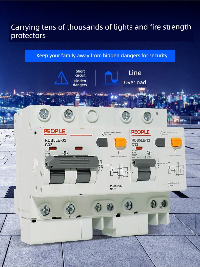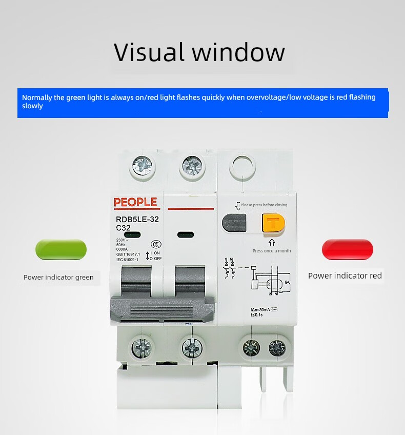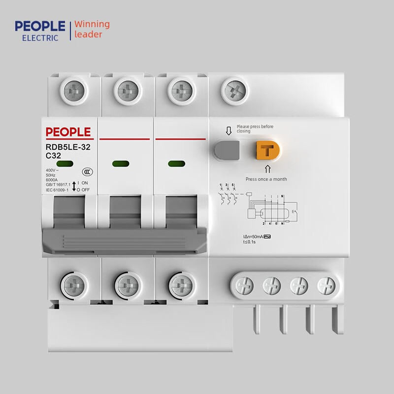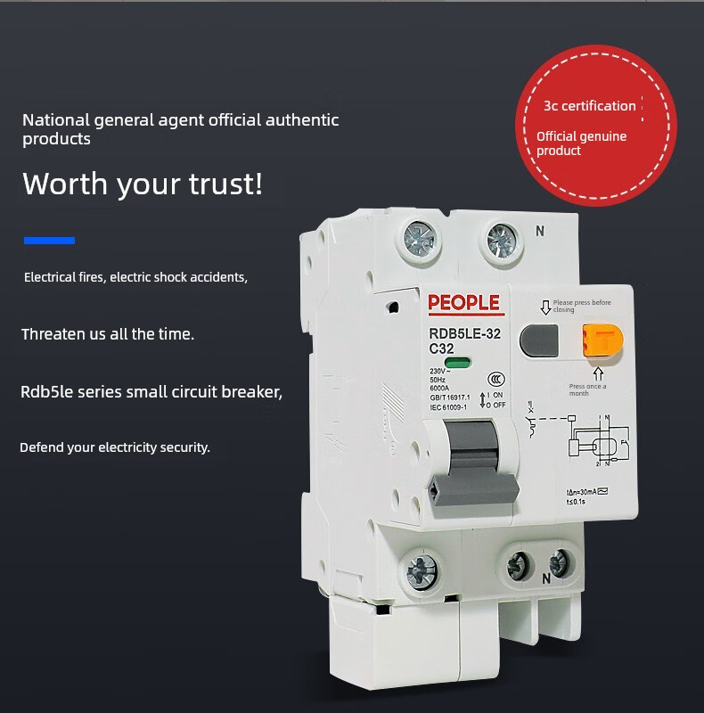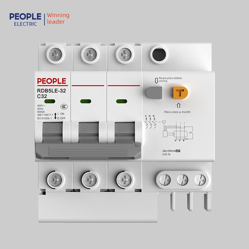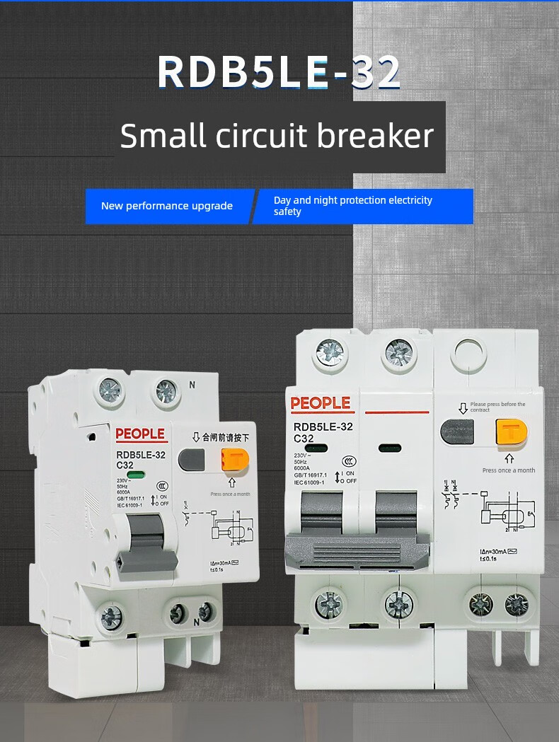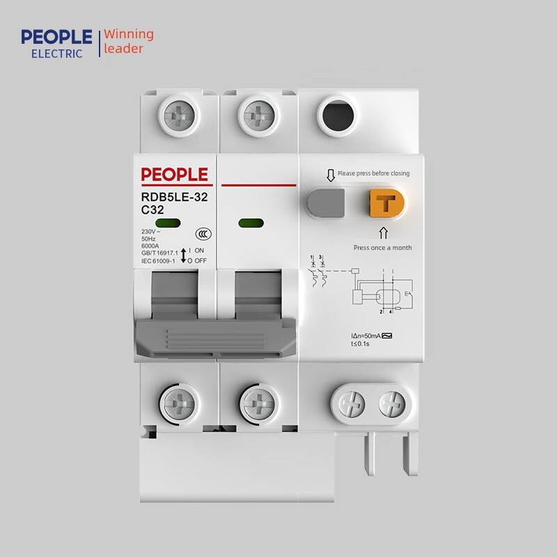 People's Electric Group Rdb5Le series small leakage circuit breaker 10-63A household leakage protection air switch 16A 1P+N