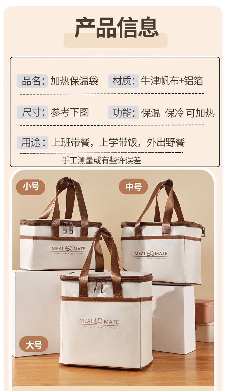 Jiaojing rechargeable heating insulated box usb plug-in constant temperature bag rechargeable heated lunch bag heated insulated bag for work constant temperature rechargeable soup can small size upgraded material snowflake aluminum film