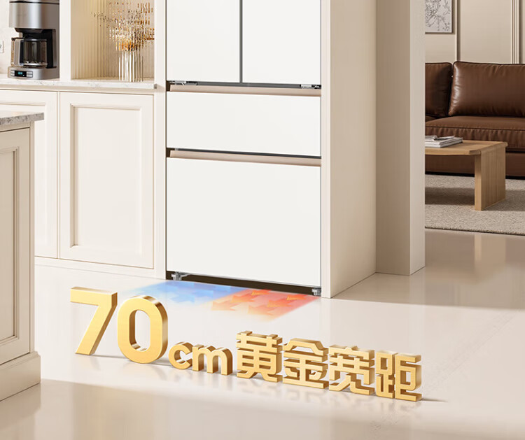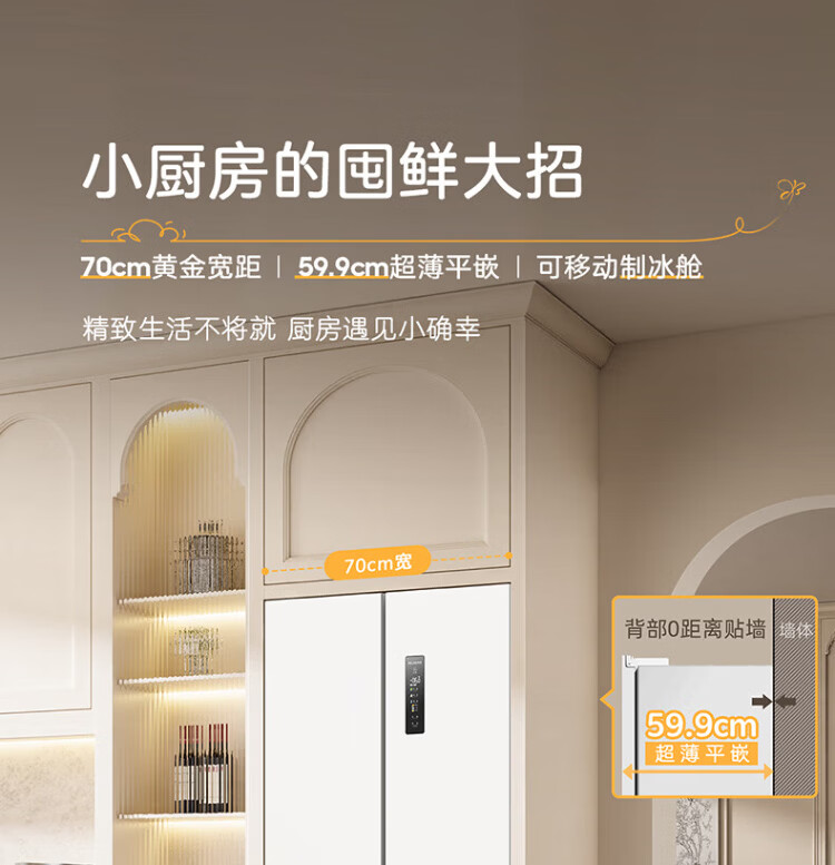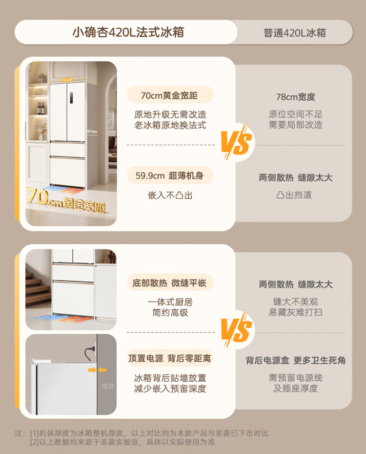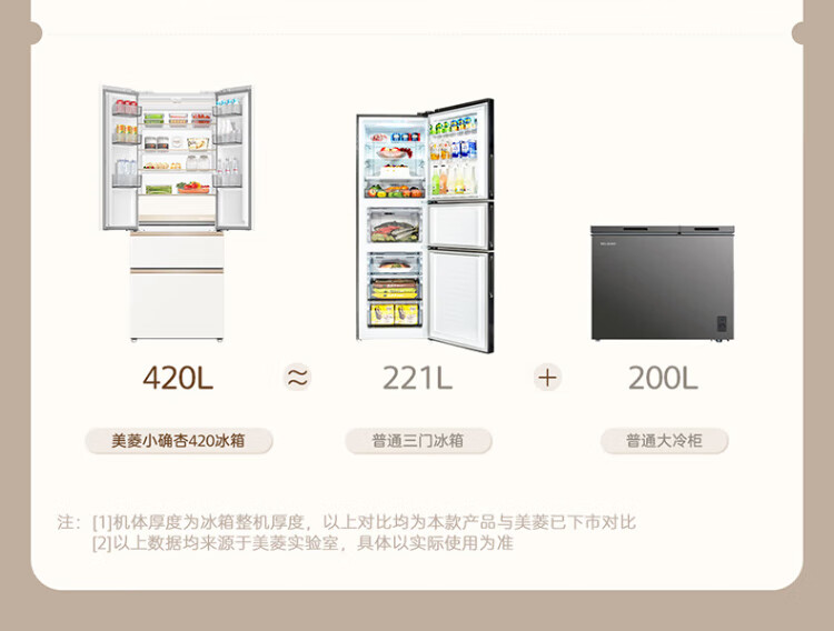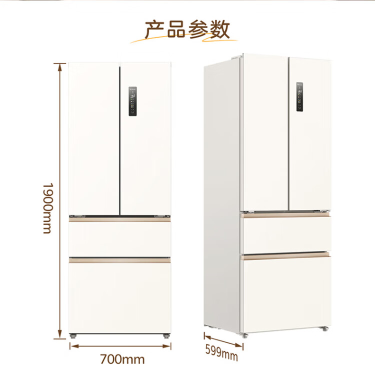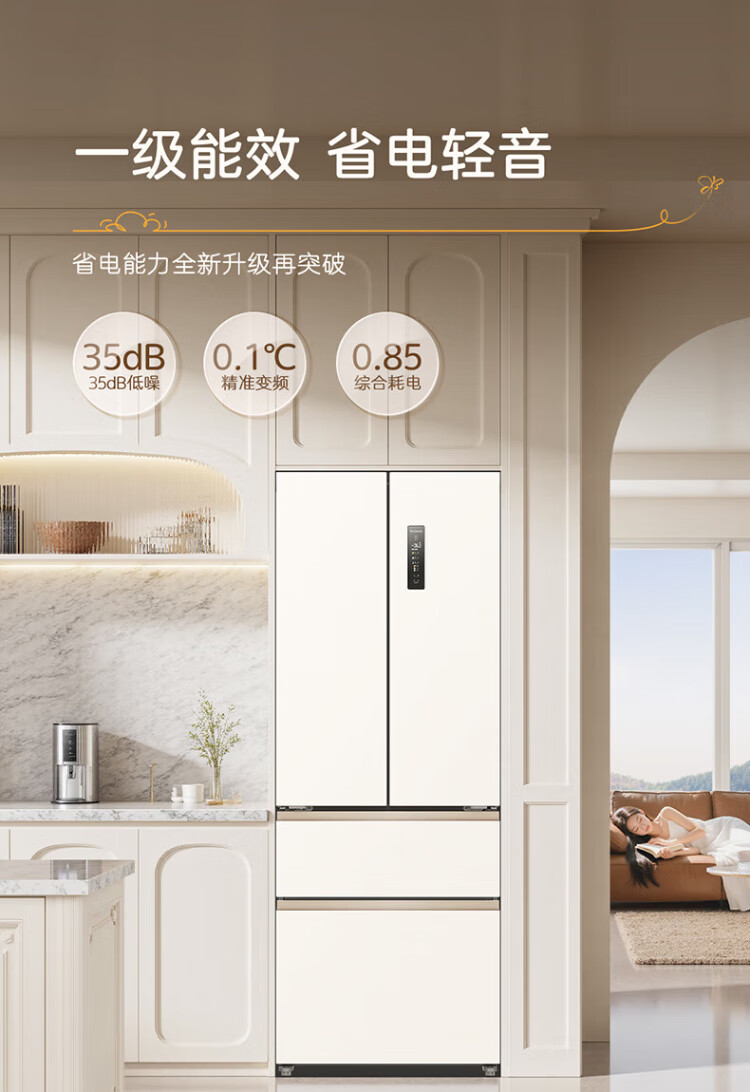 MeiLing small apricot 420 liter French four-door multi-door 70CM wide-spaced household ultra-thin zero-embedded first-class air-cooled frost-free large-capacity subsidy refrigerator BCD-420WFP9CZX