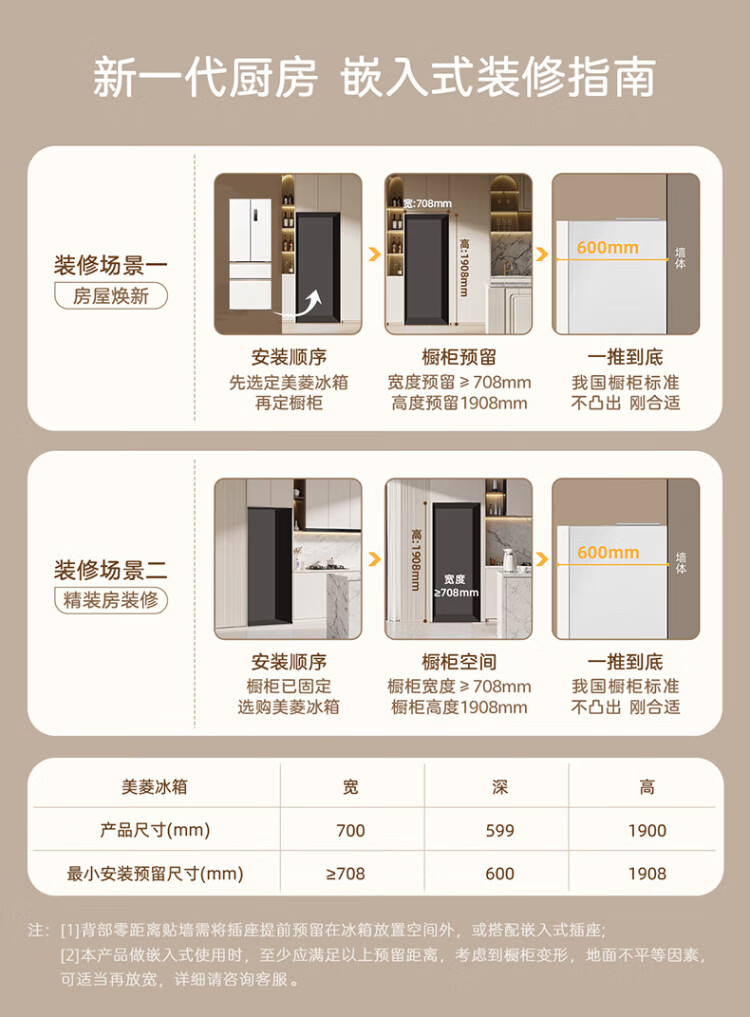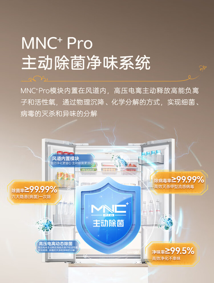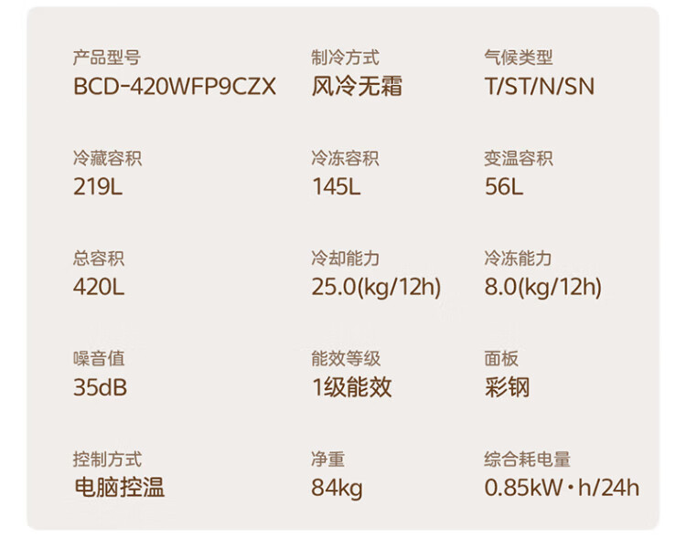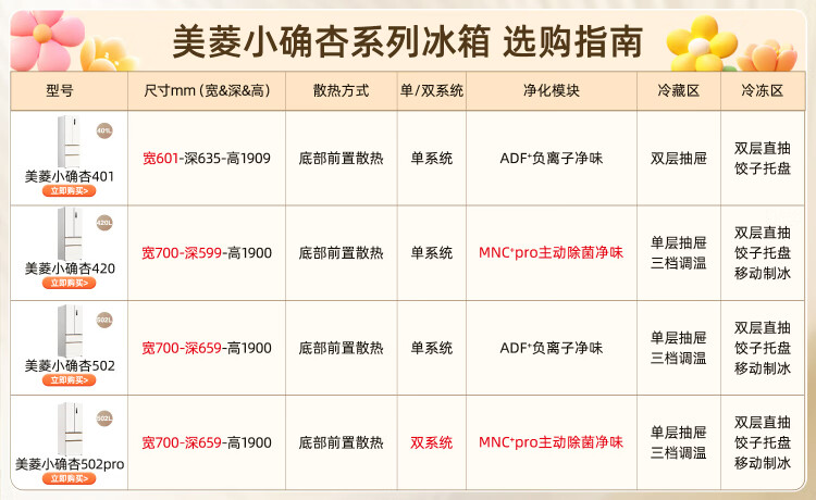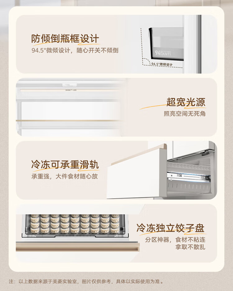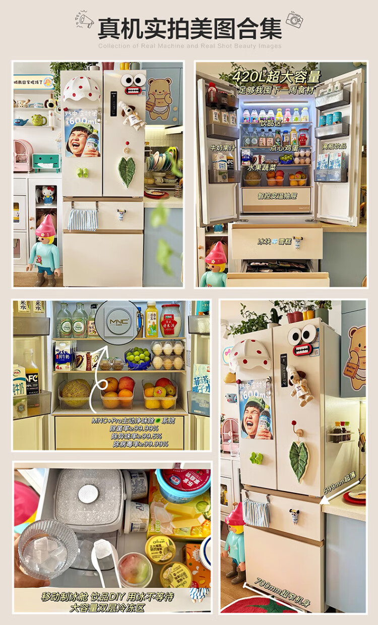 MeiLing small apricot 420 liter French four-door multi-door 70CM wide-spaced household ultra-thin zero-embedded first-class air-cooled frost-free large-capacity subsidy refrigerator BCD-420WFP9CZX
