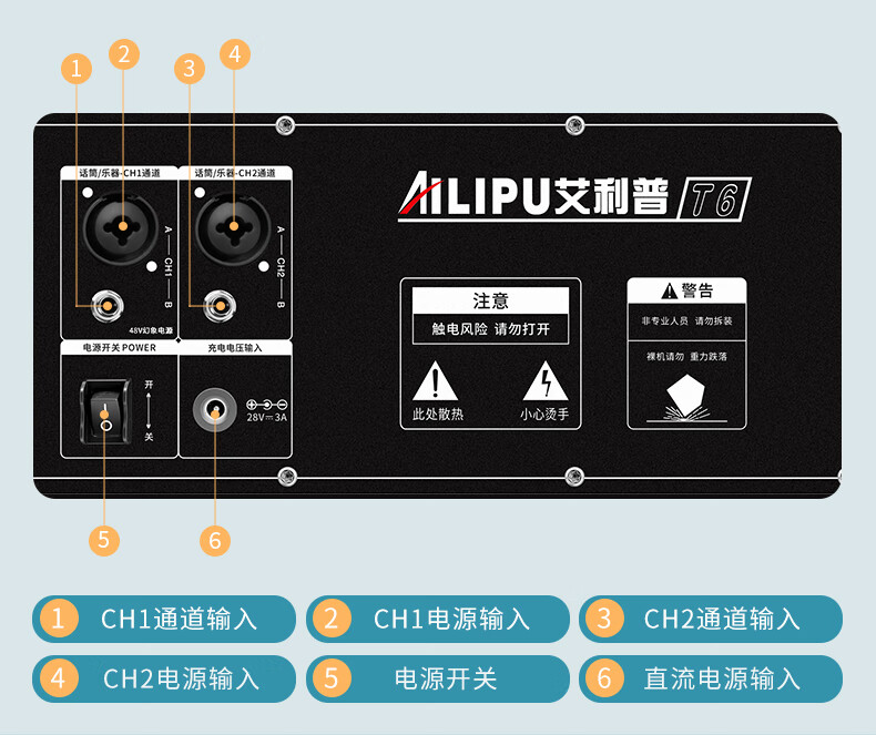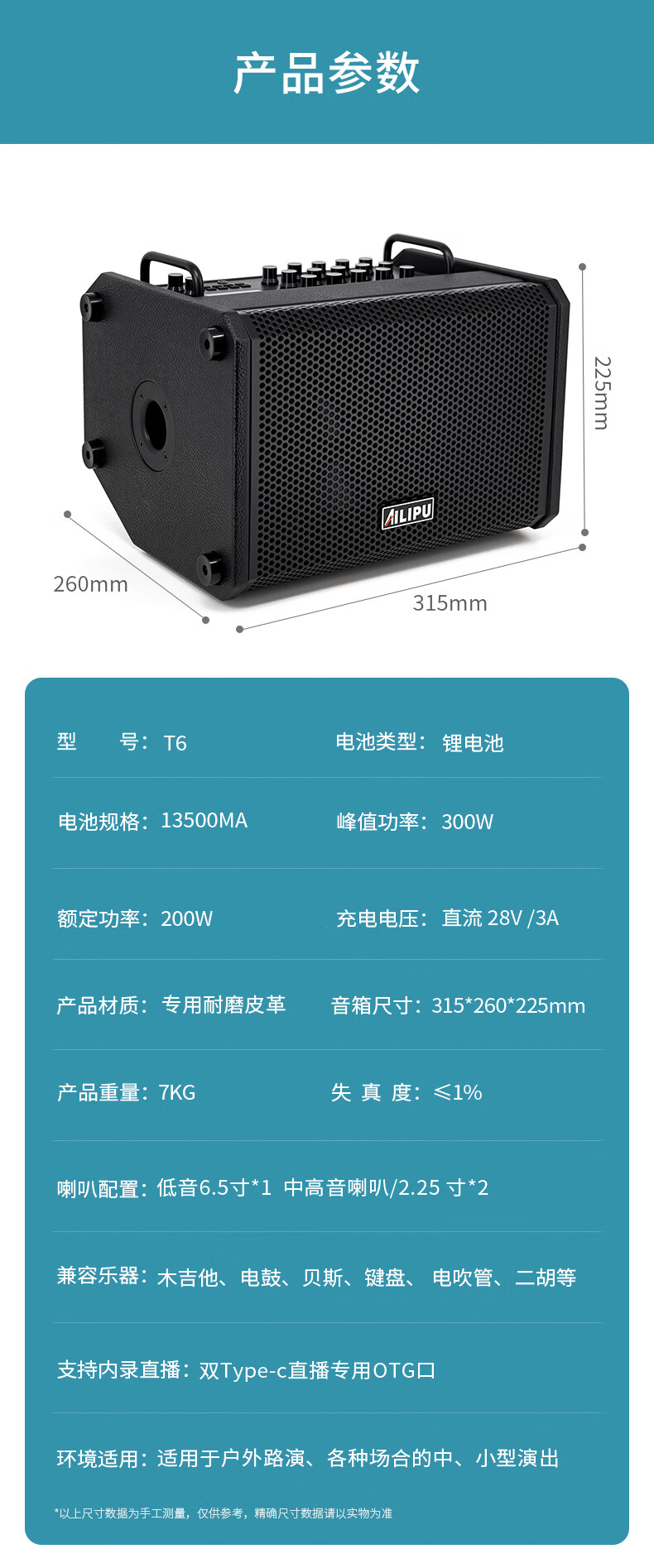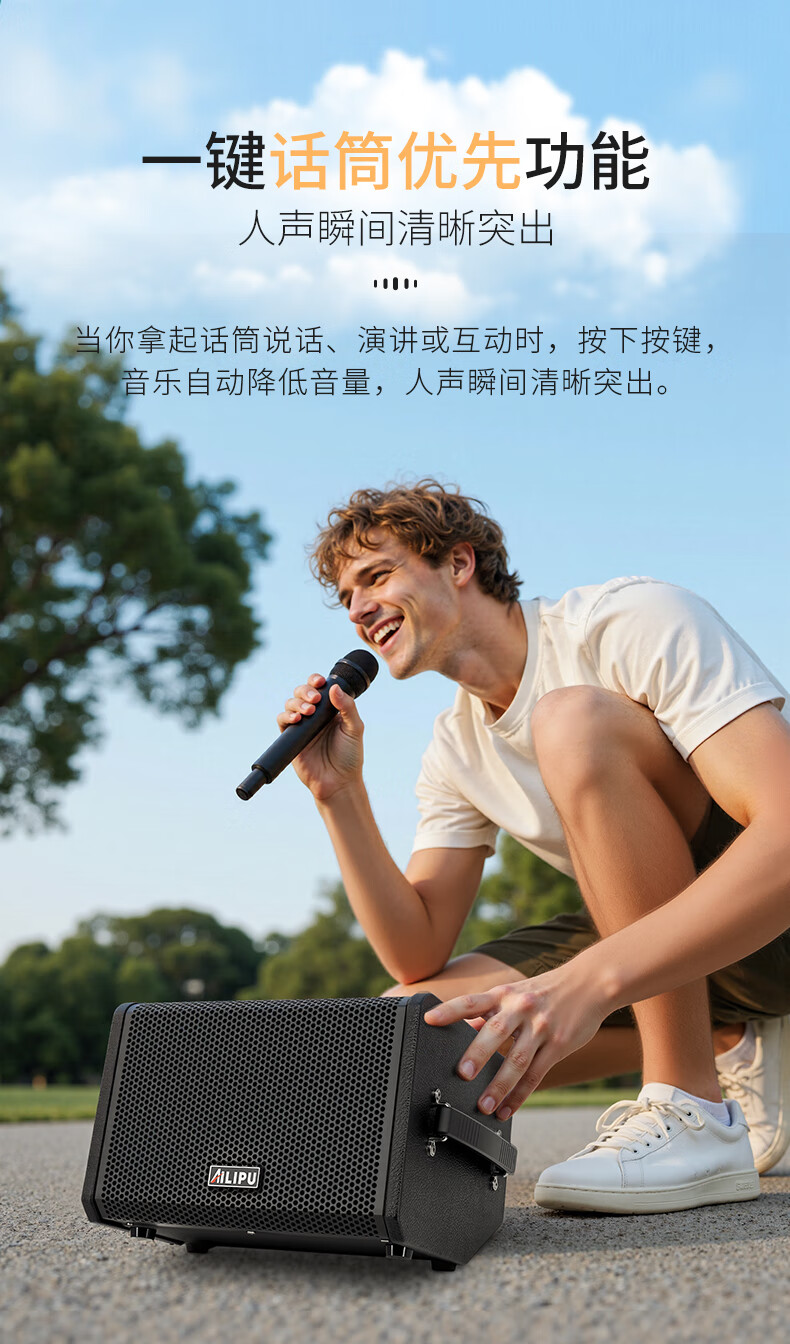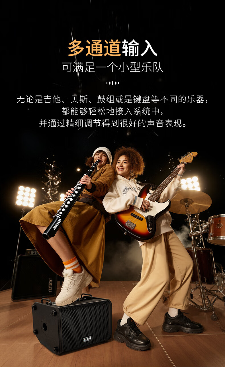 Ailip's new T6 audio instrument K song live broadcast internal recording electric blowpipe saxophone guitar playing and singing audio home outdoor portable high-power Bluetooth stage performance speaker official 2025 new T6 upgraded version dual wireless microphones