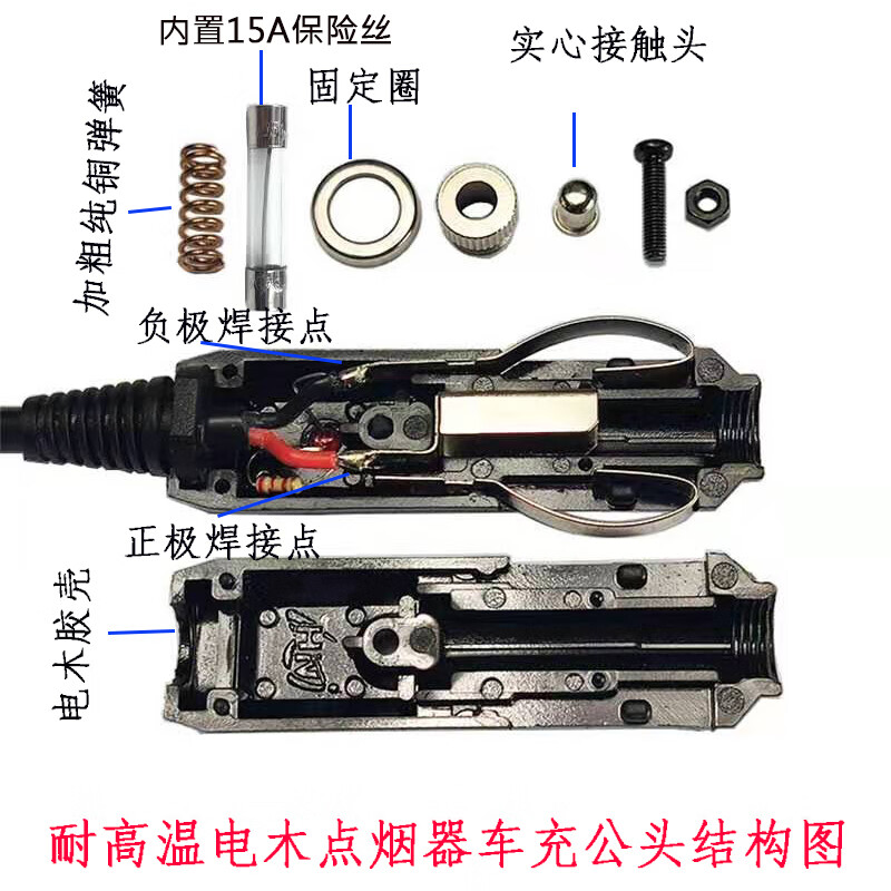 Star rudder high-power 1.5 square cigarette lighter bakelite car charger to GX-16 three 3-core aviation plug power cord 1.5 meters Bakelite car charger to aviation three-core plug cord 3m 1.5