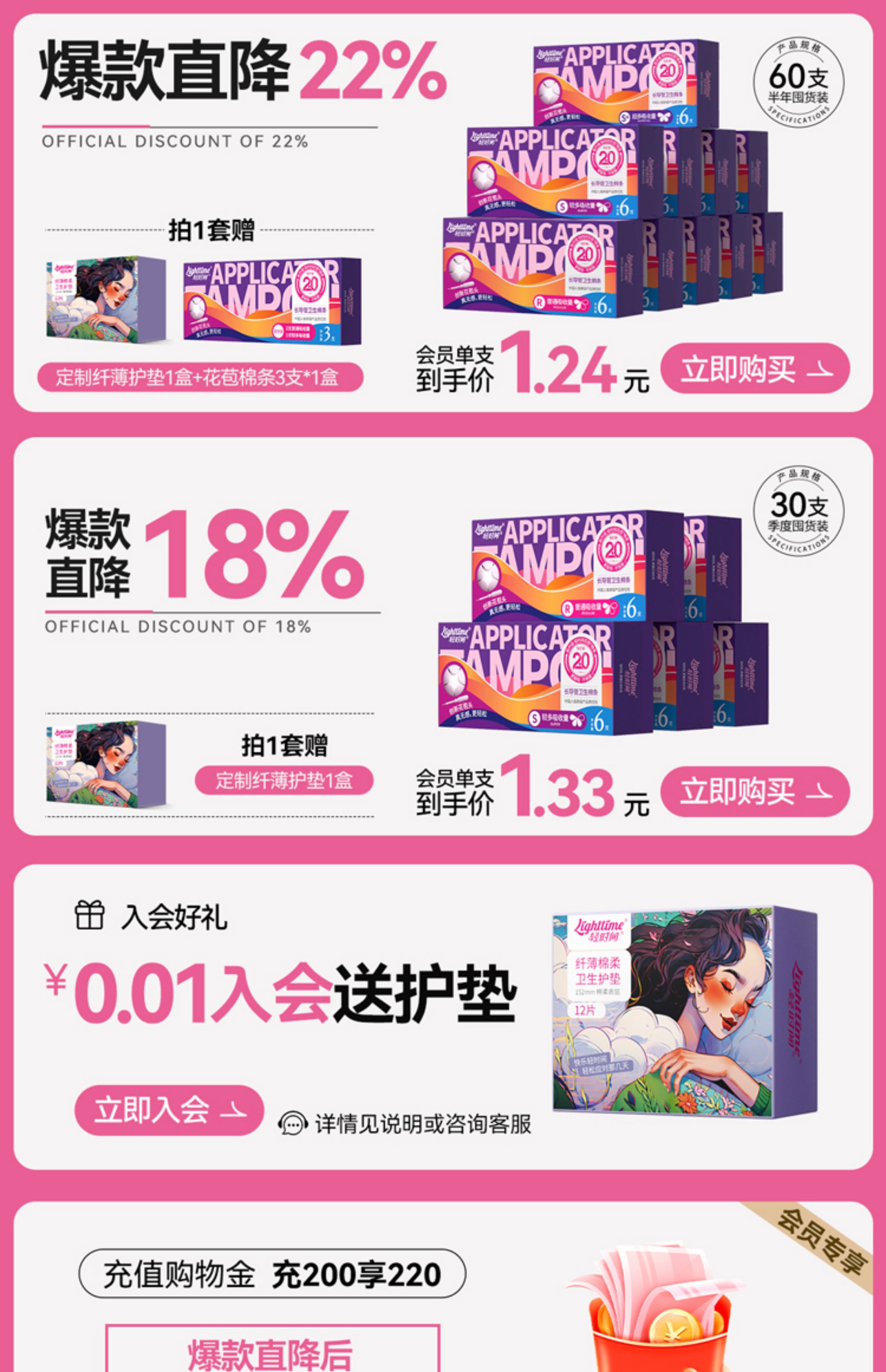 Light time tampons 60 pieces menstrual tampons tampons catheter type built-in aunt tampons swimming shop large flow 24 pieces + super large flow 36 pieces 60