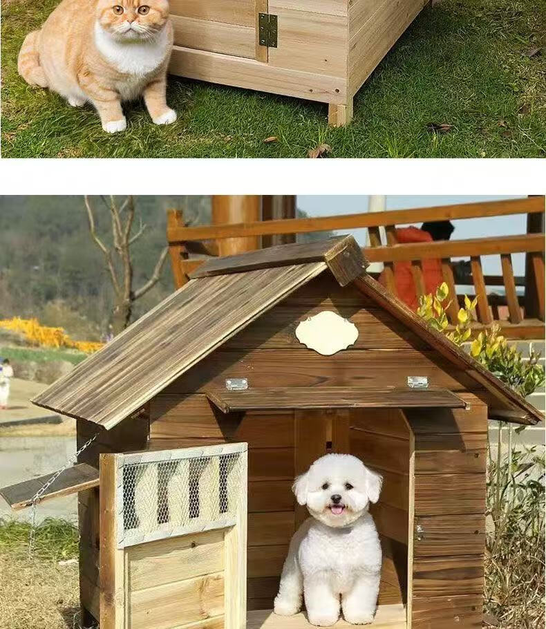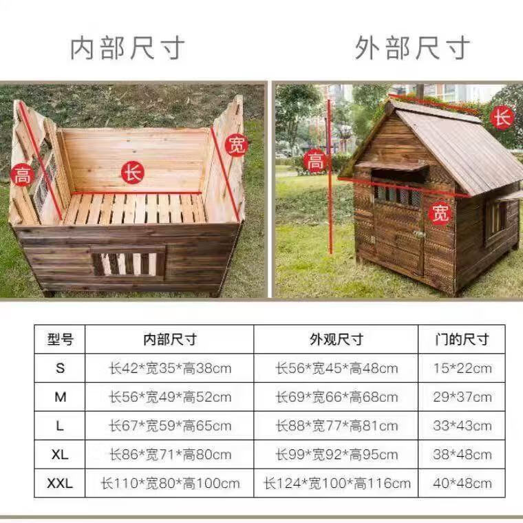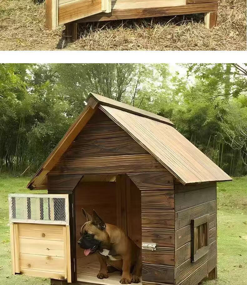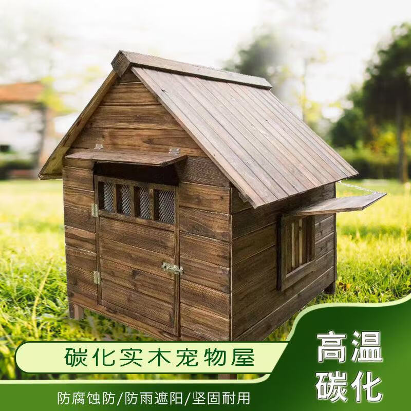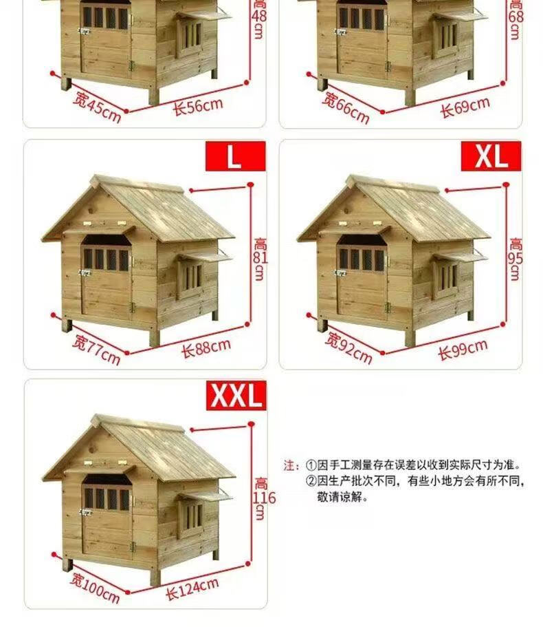 Craftsman head outdoor solid wood dog house indoor and outdoor rain-proof and sun-proof pet kennel for cats and dogs, pet supplies for all seasons, dog house without door, single window, free door sign + rain cover, L size medium-sized dog within 40 pounds, board thickness 1.3cm