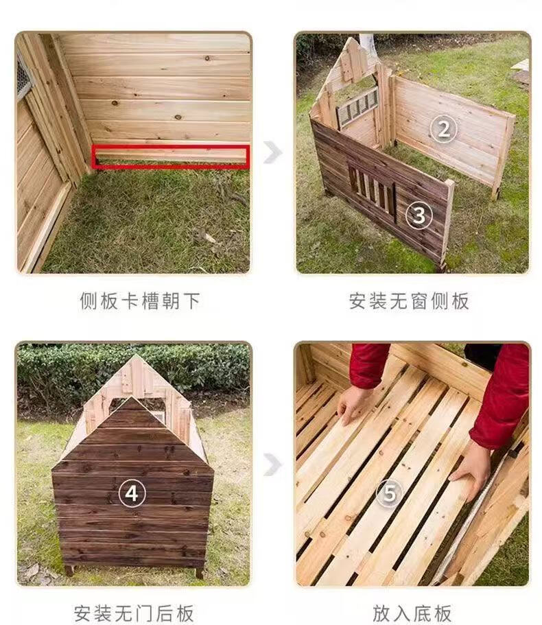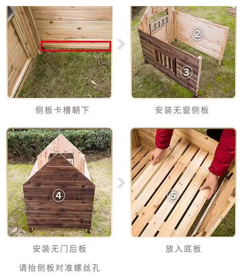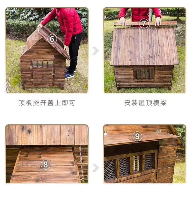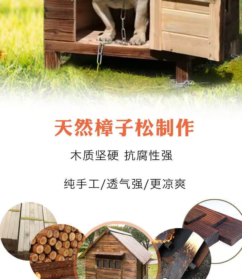 Craftsman head outdoor solid wood dog house indoor and outdoor rain-proof and sun-proof pet kennel for cats and dogs, pet supplies for all seasons, dog house without door, single window, free door sign + rain cover, L size medium-sized dog within 40 pounds, board thickness 1.3cm