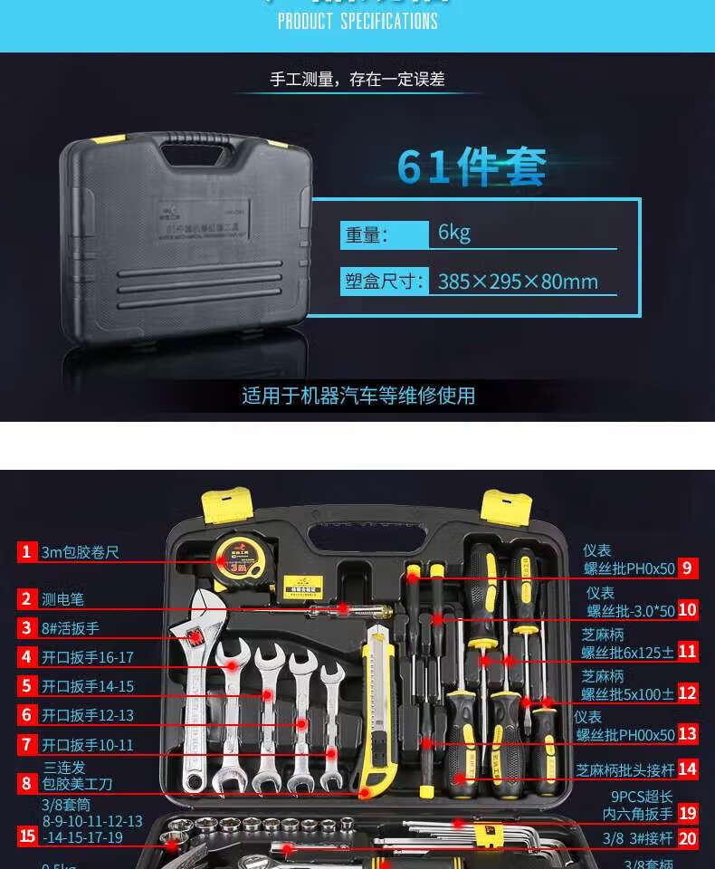 Household tool set wrench universal auto repair ratchet screwdriver set machine repair manual set 61 pieces 85 piece set machine repair glory set