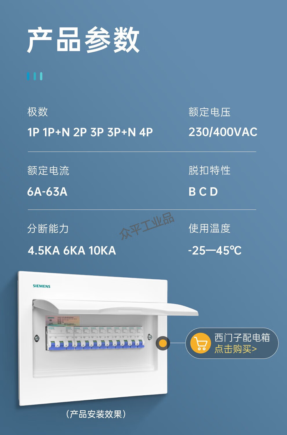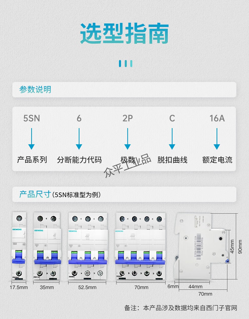 Siemens (SIEMENS) Siemens (SIEMENS) 5SN series miniature circuit breaker circuit breaker switch C type trip 2P 6A-63A 5SN6206-7CN 2P C6A 2P 6kA C