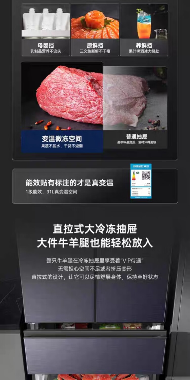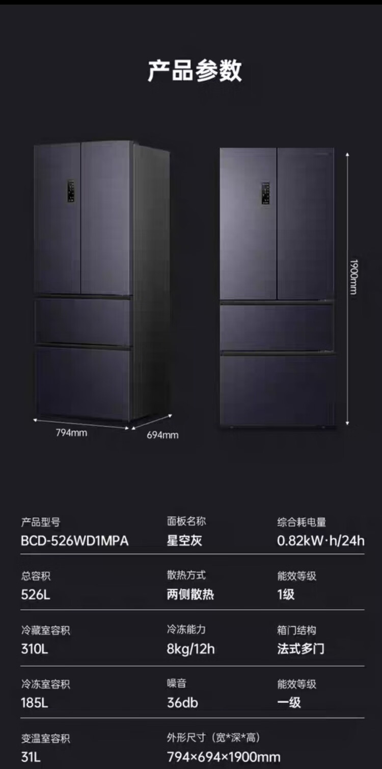 Rongsheng refrigerator BCD-526WD1MPA French independent dual system IDP active sterilization first level energy efficiency and energy saving