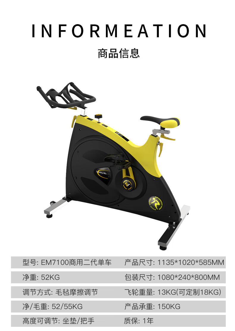 Commercial spinning bicycle, home fitness, silent indoor bicycle, exercise, magnetic control exercise bike, aerobic equipment, EM7100 luxury commercial bicycle