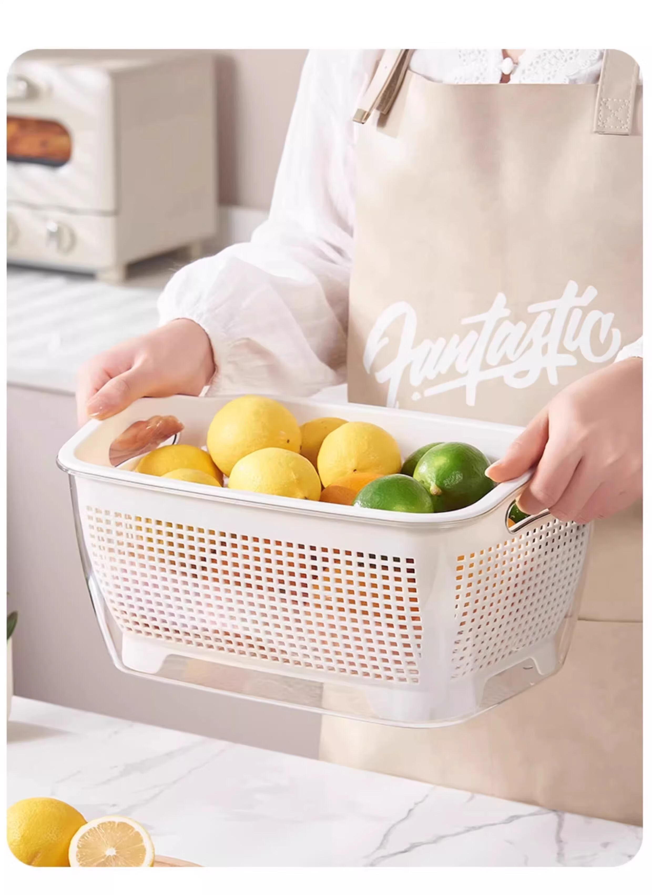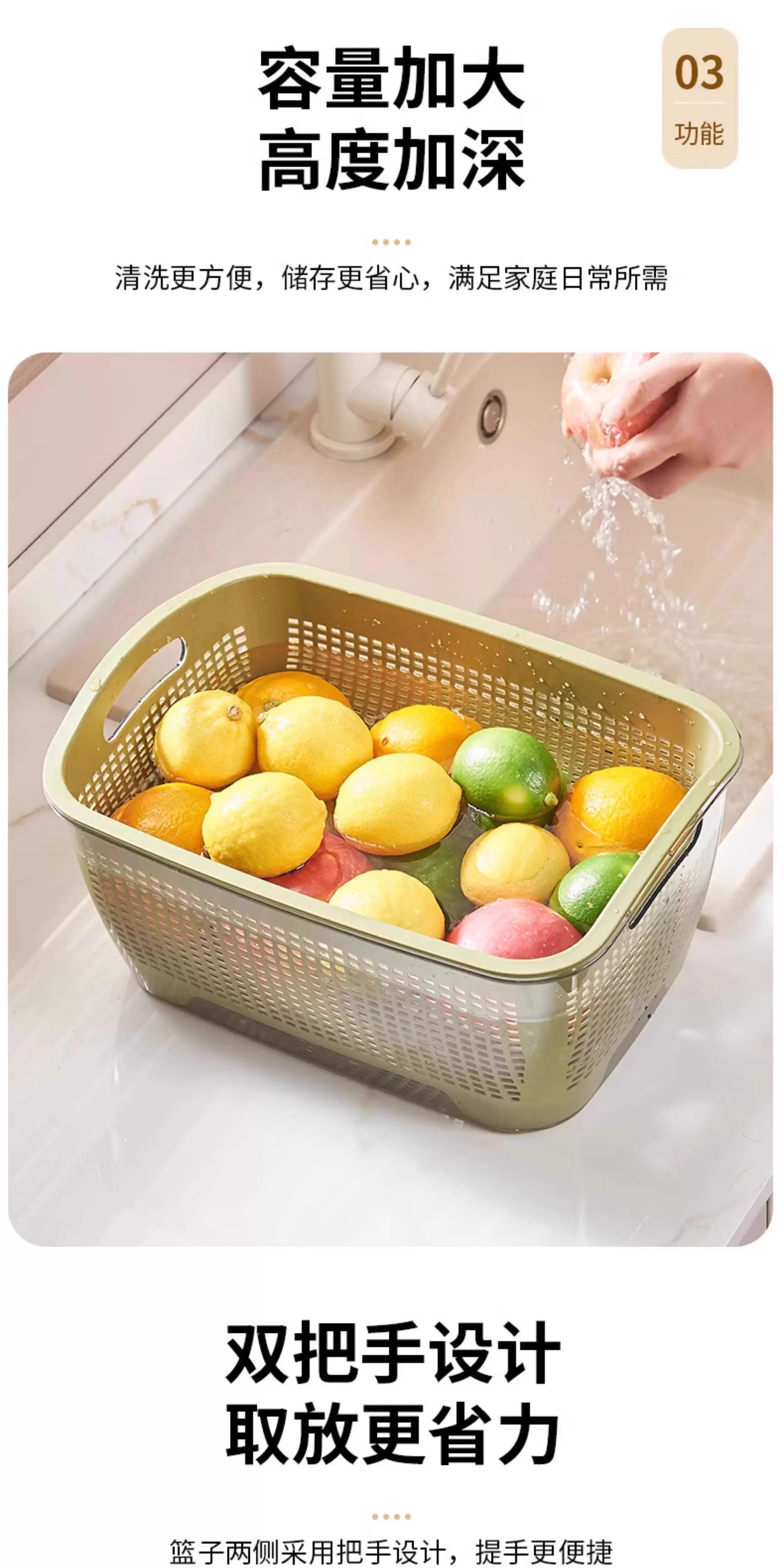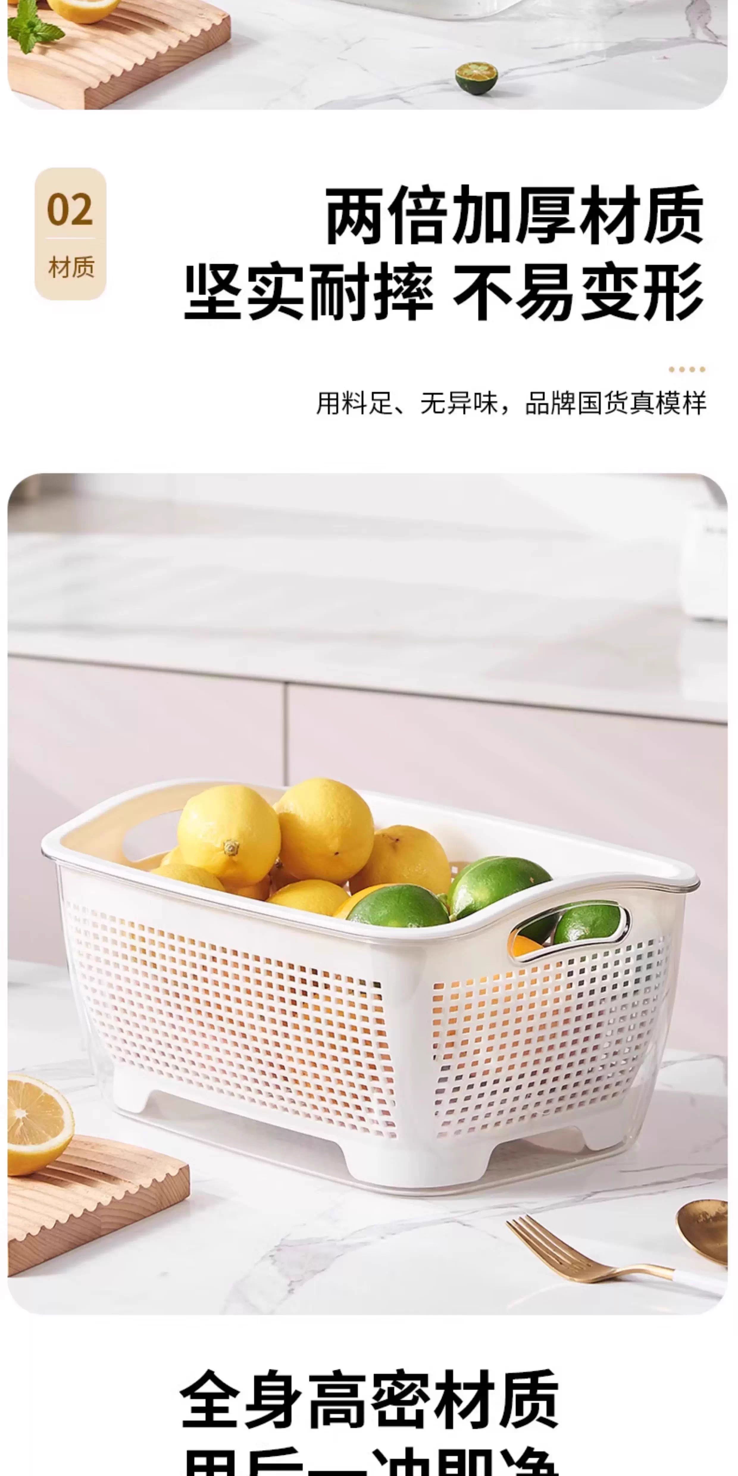 FVFH German household double-layer thickened kitchen drain basket sink living room fruit plate vegetable basket high-looking fruit basket rectangular large size Nordic white weight 730 grams