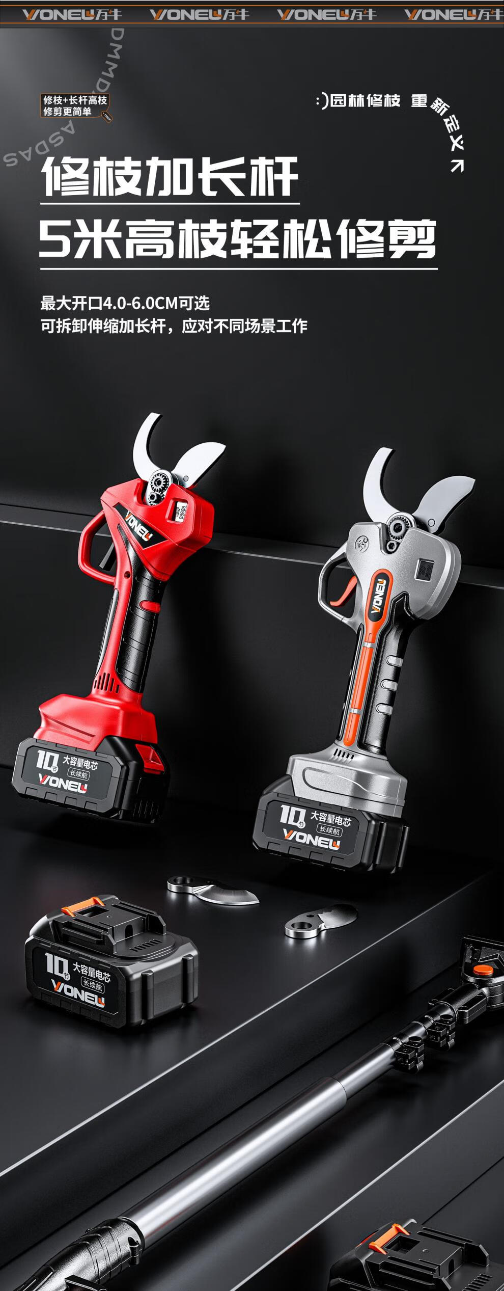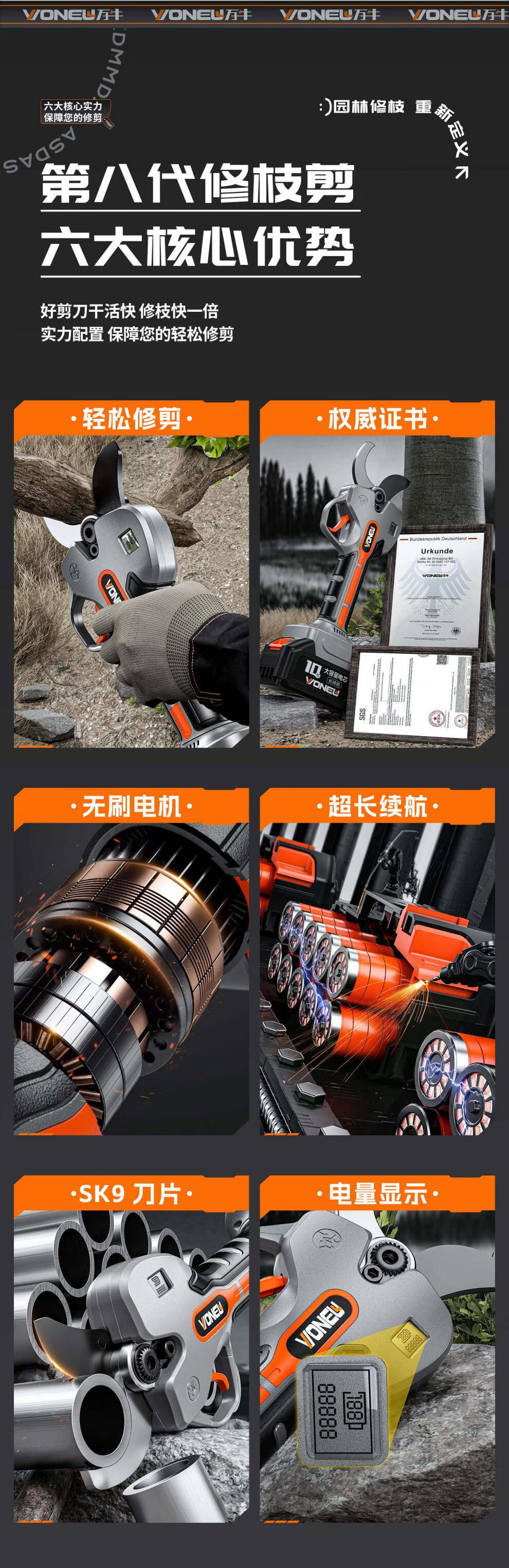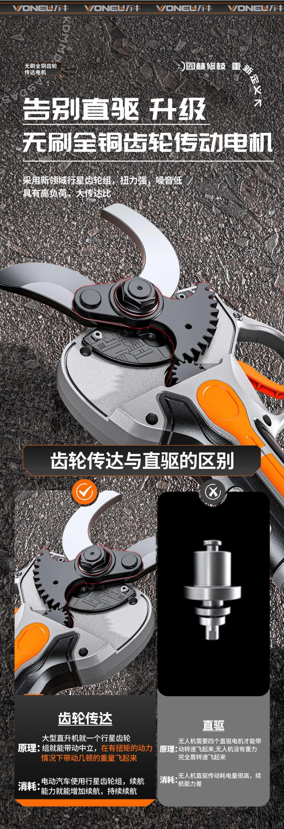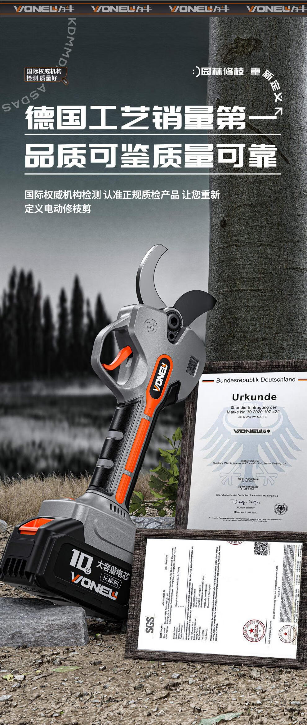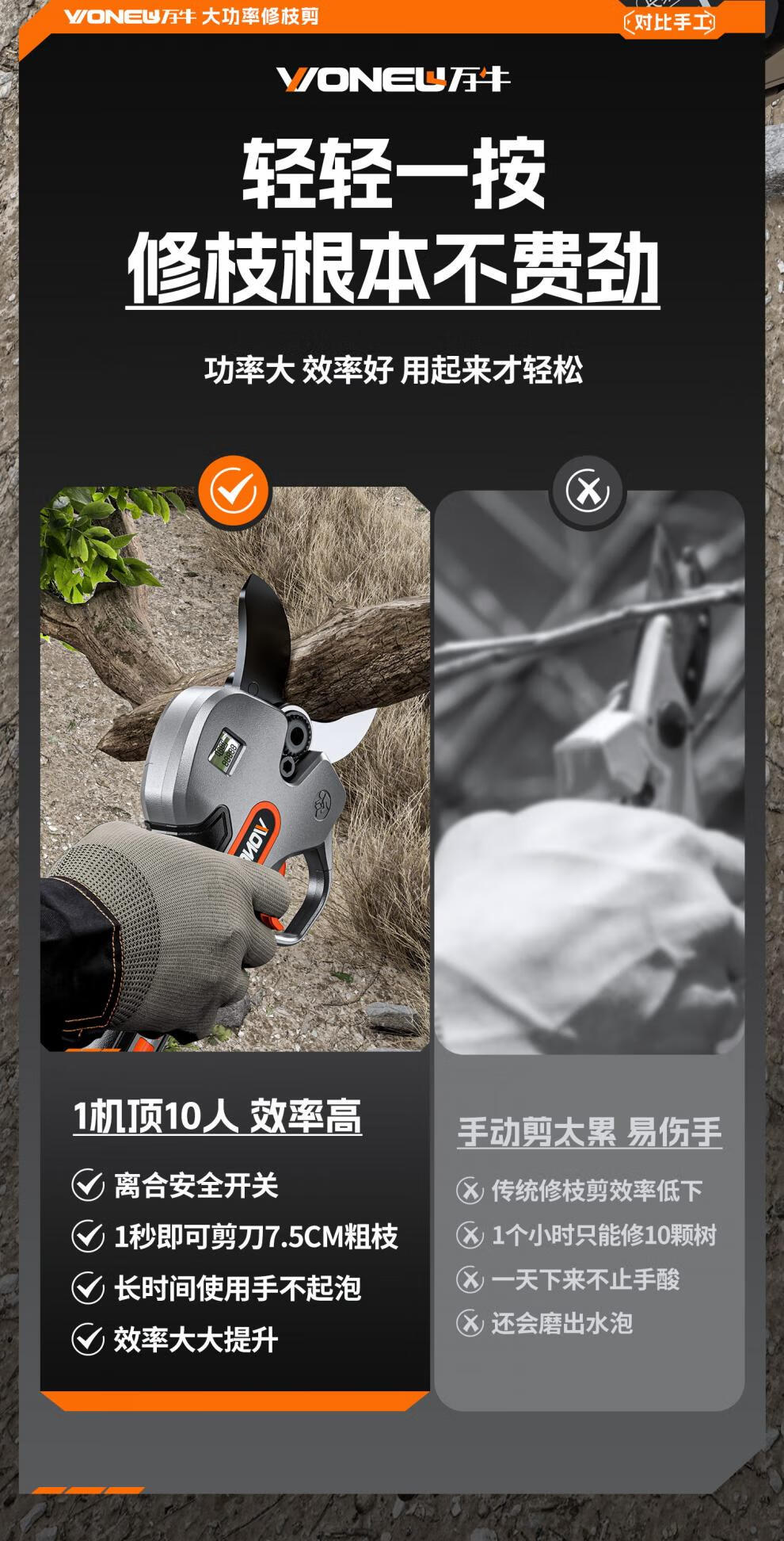 Wanniu electric pruning shears, hand-held pruning shears for fruit trees, special lithium-ion shears, rechargeable electric shears, scissors, pruning artifact, brushless 138 type, high-efficiency type, 10.0Ah, three-power