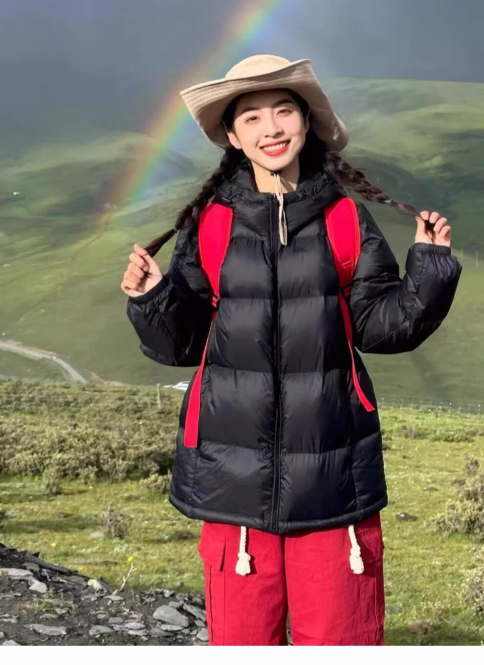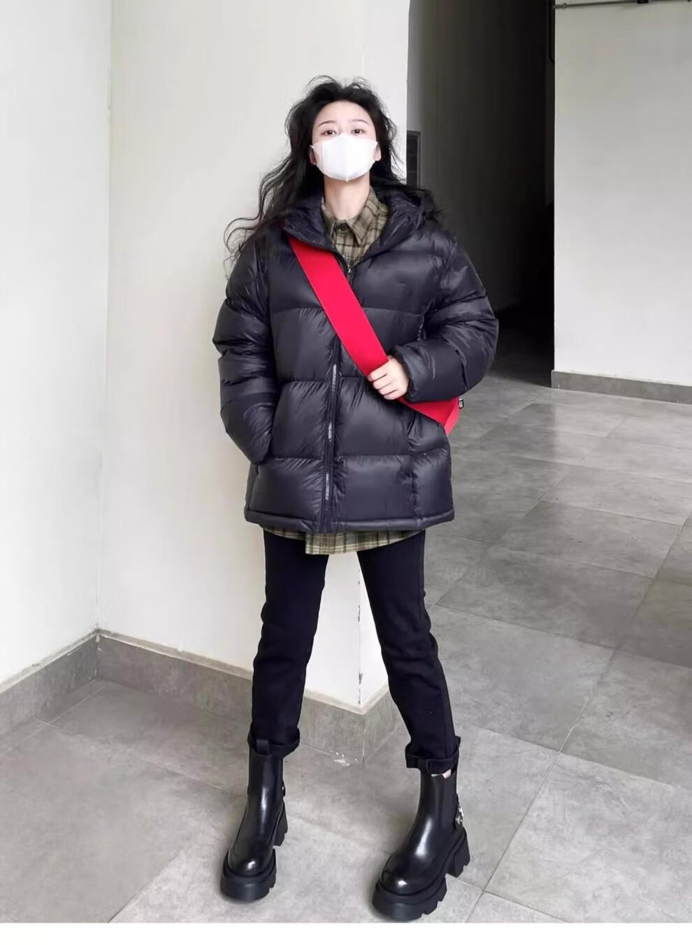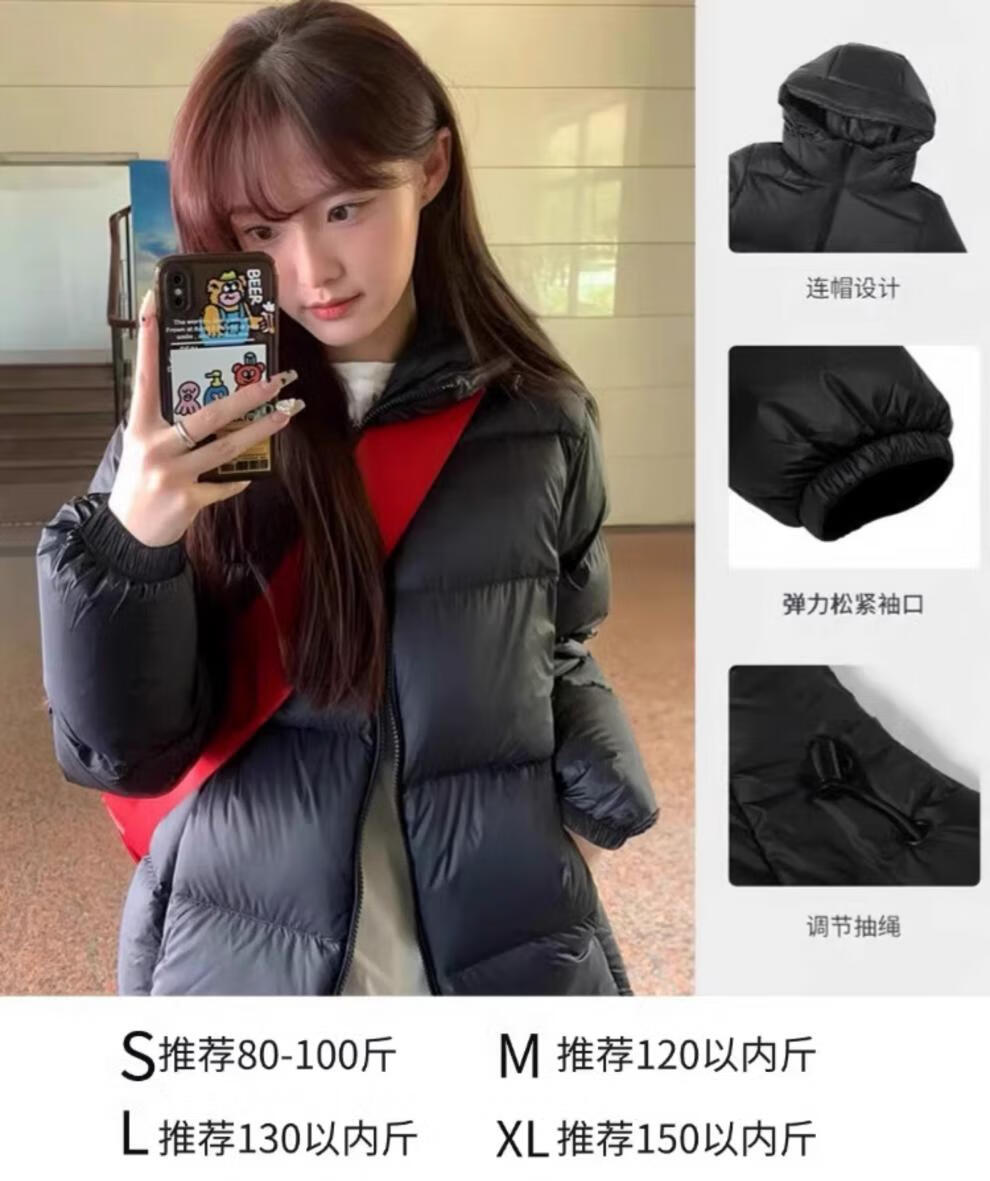 Snow Flying (SNOWFLYING) Black Down Jacket Short Women's 2025 Winter New Hooded White Duck Down Bread Jacket Warm Large Size Couple Jacket Black M Recommended 100-120 catties