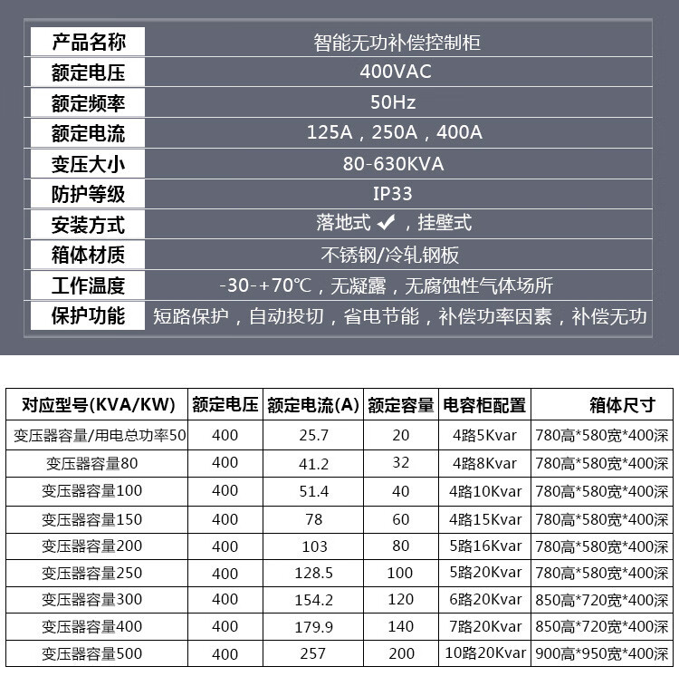 TBBW low voltage reactive power compensation device, local compensation, capacitor compensation cabinet, intelligent compensation cabinet 380V, transformer capacity 100KVA