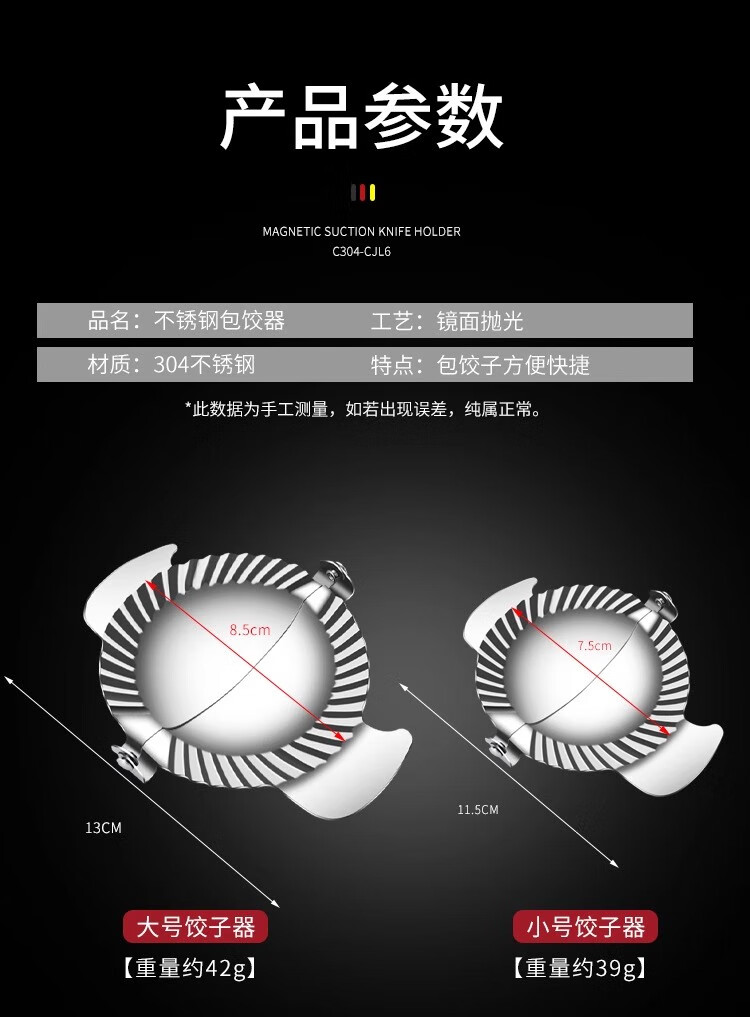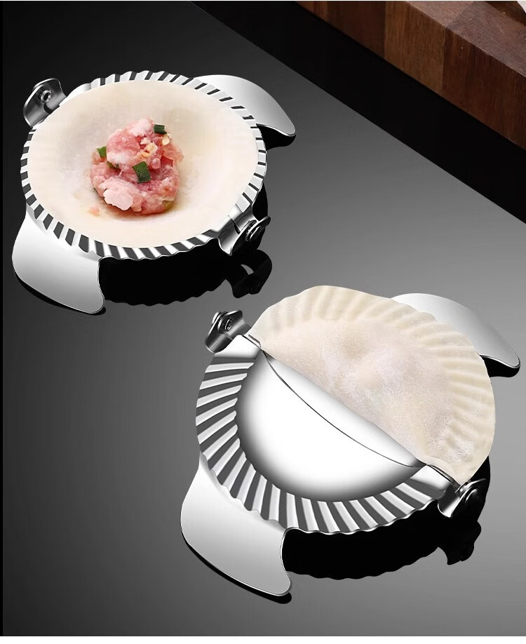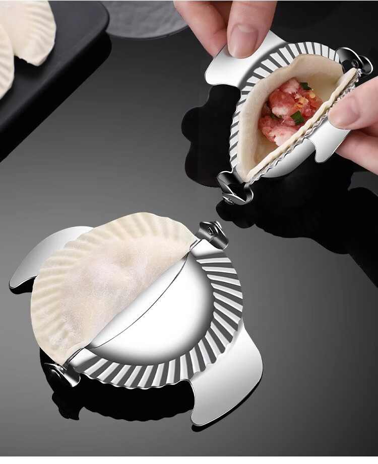 FVFH German dumpling making artifact new household 304 stainless steel dumpling mold special tool for lazy people to make dumplings Large dumpling maker + filling spoon (304 stainless steel / tight edge without leaking filling)
