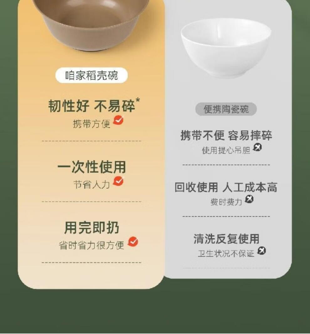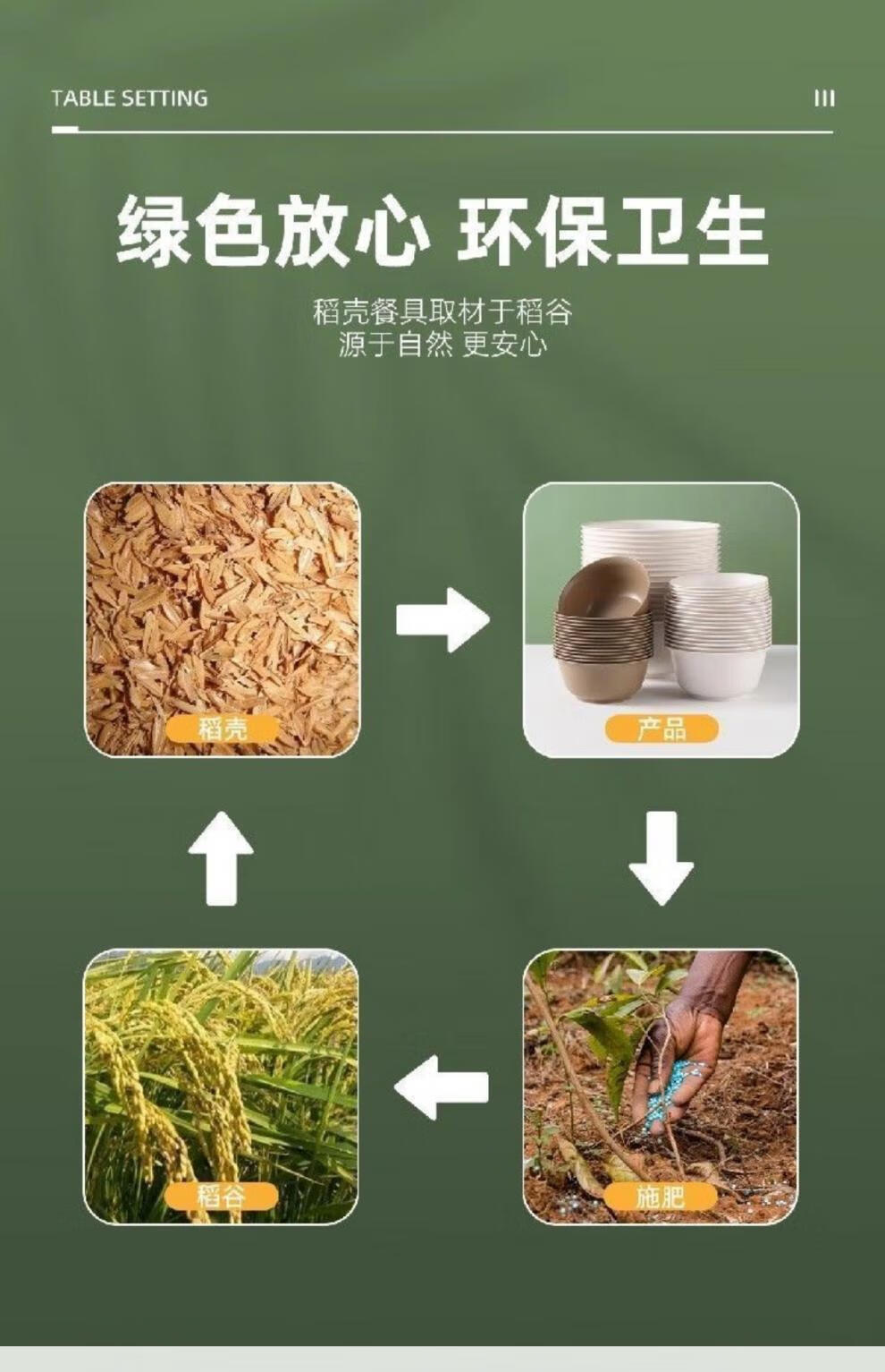 Xuanshi rice husk tableware disposable bowls and chopsticks food grade household rice bowls thickened high temperature resistant dinner plate set outdoor 20 pieces available hot sale