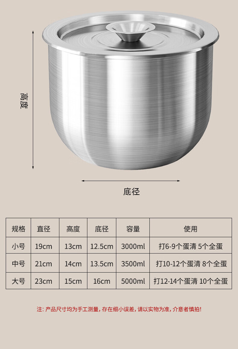 SMVP egg beater special deepening full set of stainless steel milk cake basin tools baking bowl cream whipping 304 medium egg beater special basin-21CM