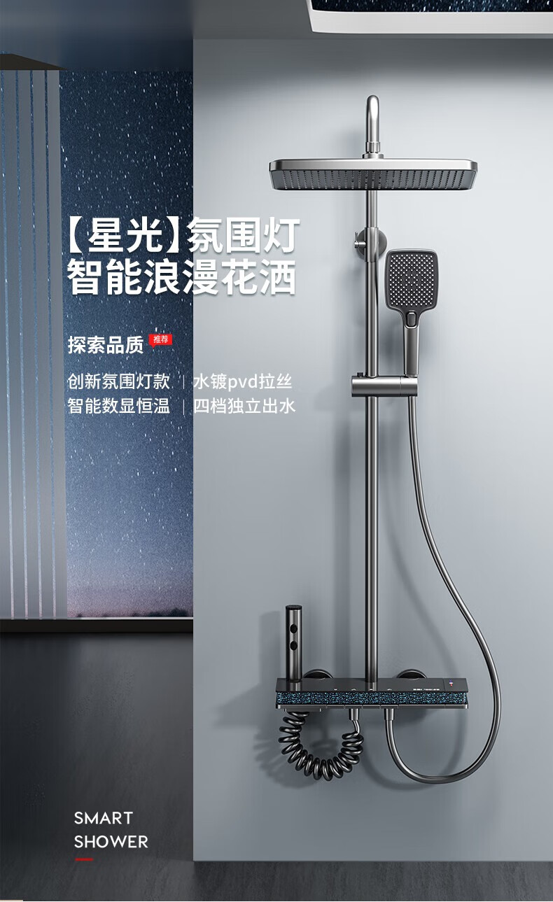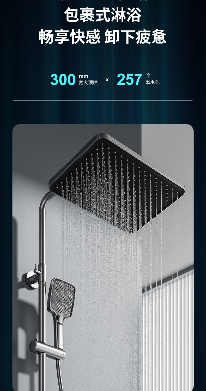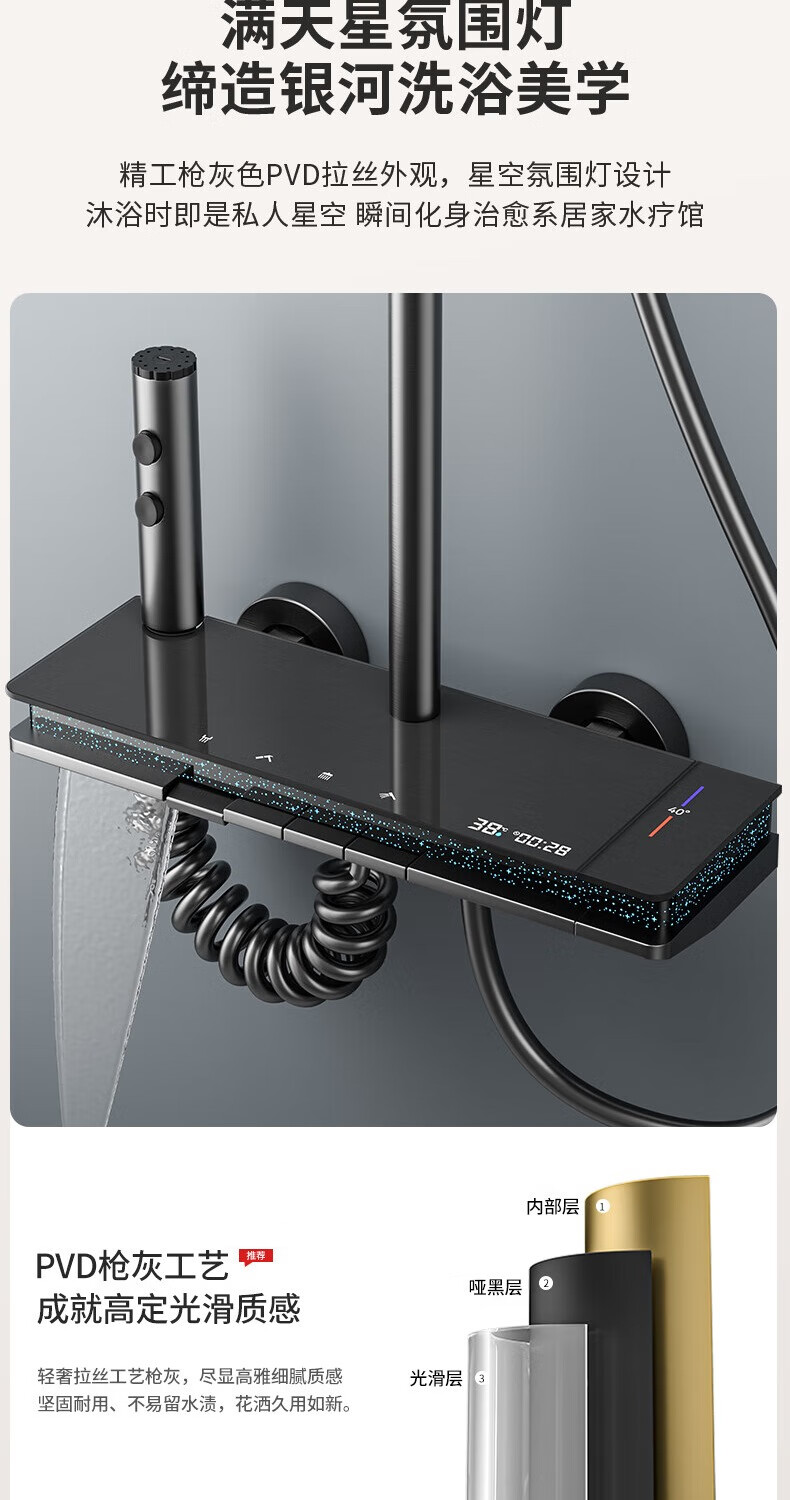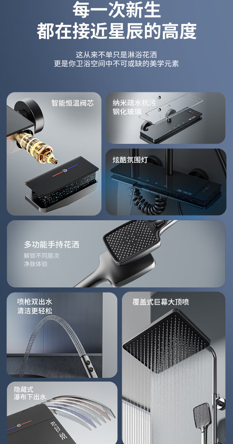 JOMOO shower head set all-copper supercharged smart constant temperature piano bathroom bathroom complete set of silicone nozzles water-coated gray-flagship large storage starry sky-constant temperature