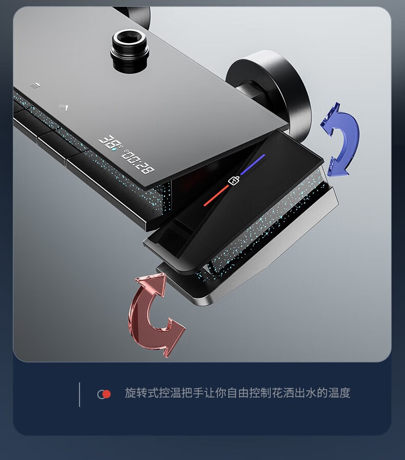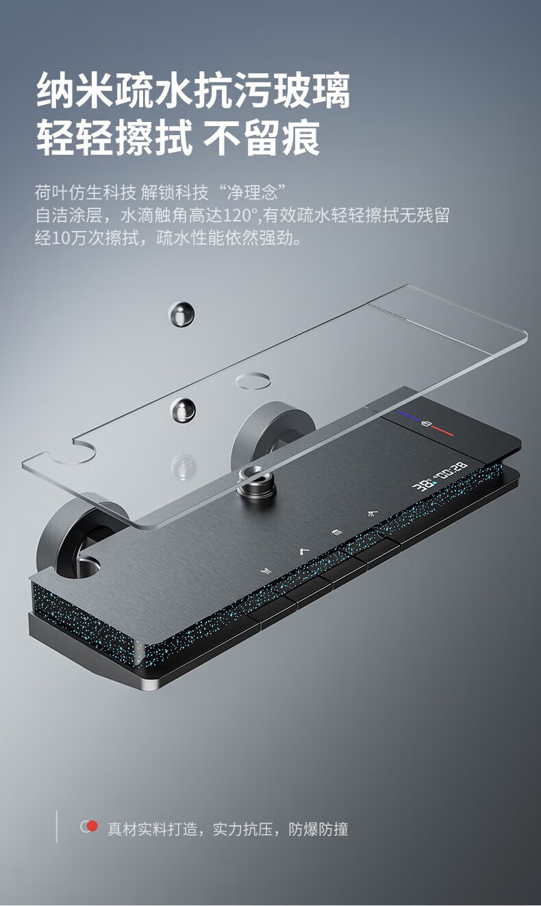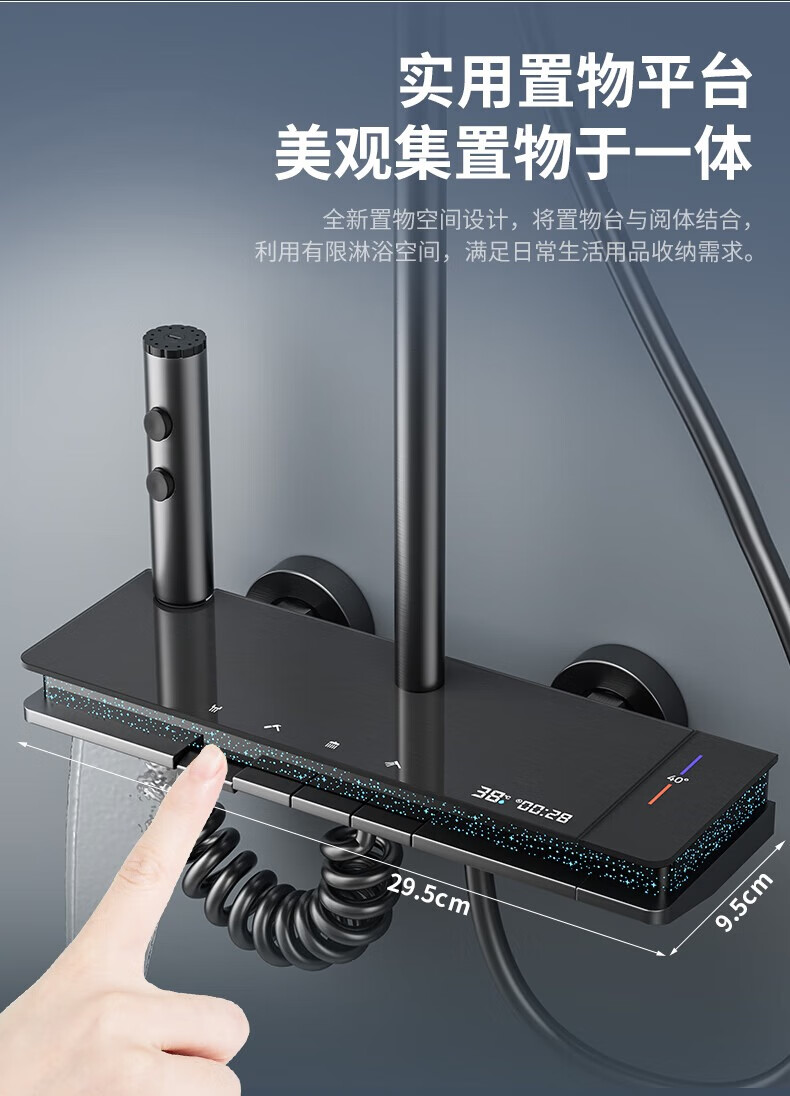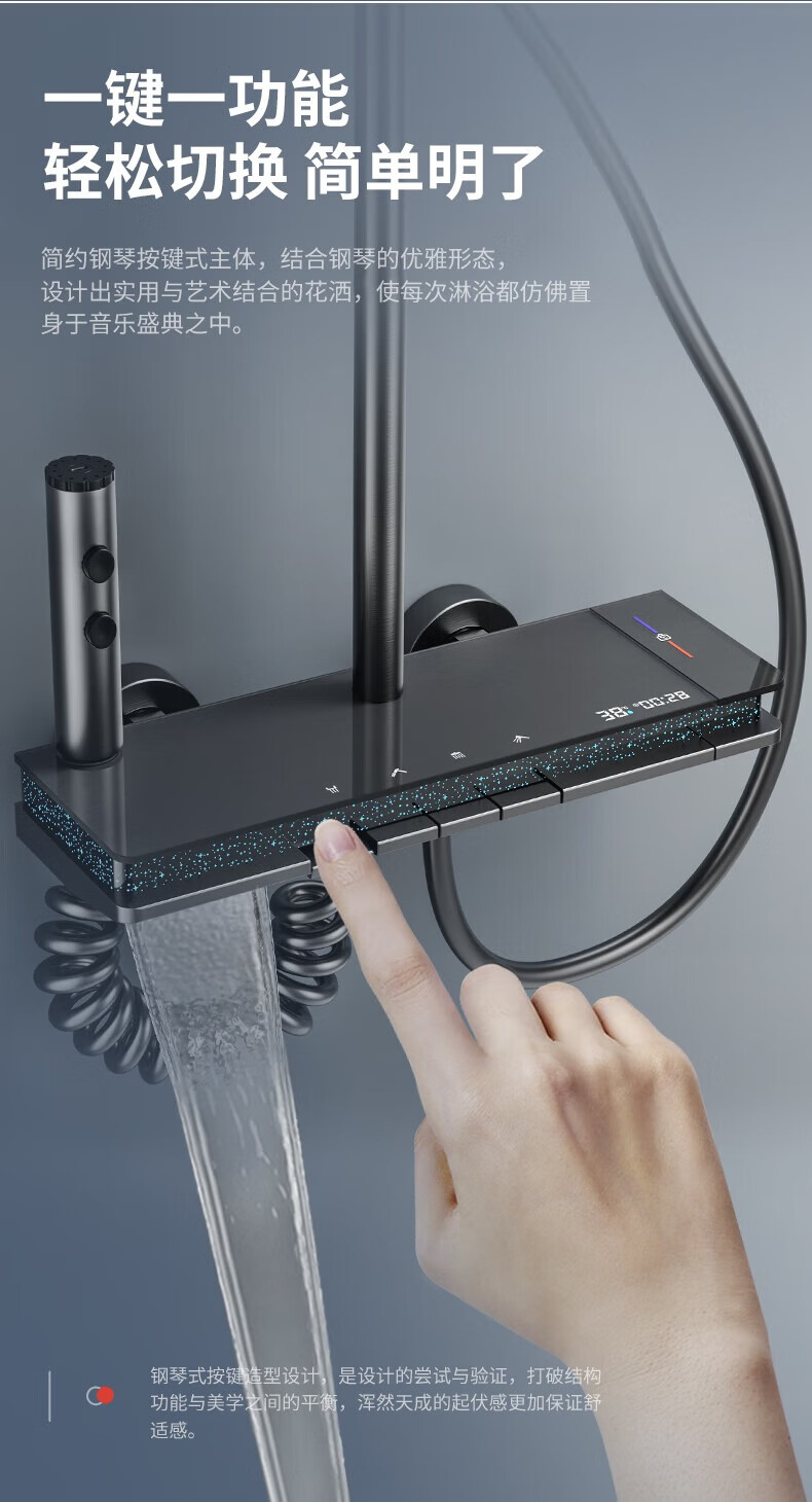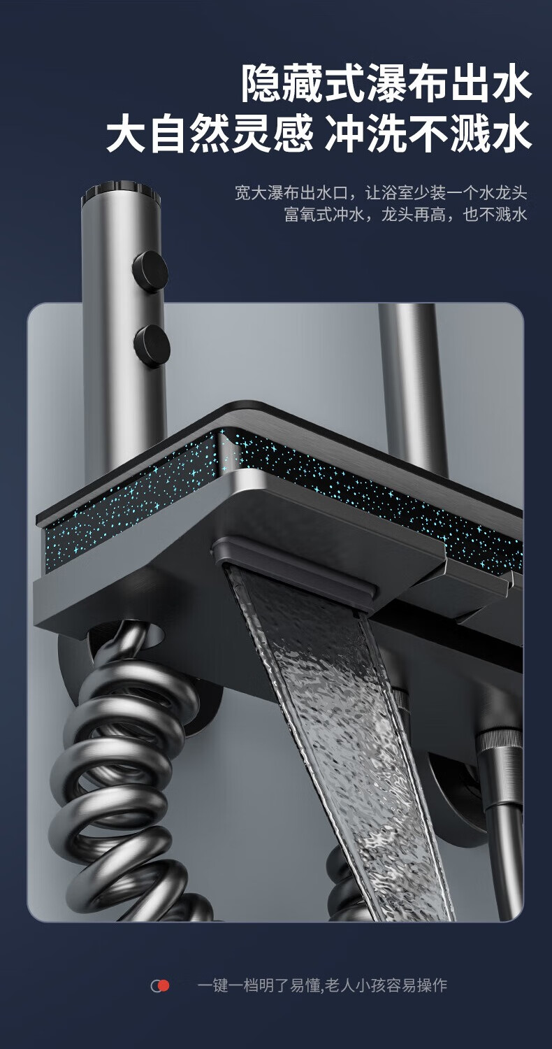 JOMOO shower head set all-copper supercharged smart constant temperature piano bathroom bathroom complete set of silicone nozzles water-coated gray-flagship large storage starry sky-constant temperature