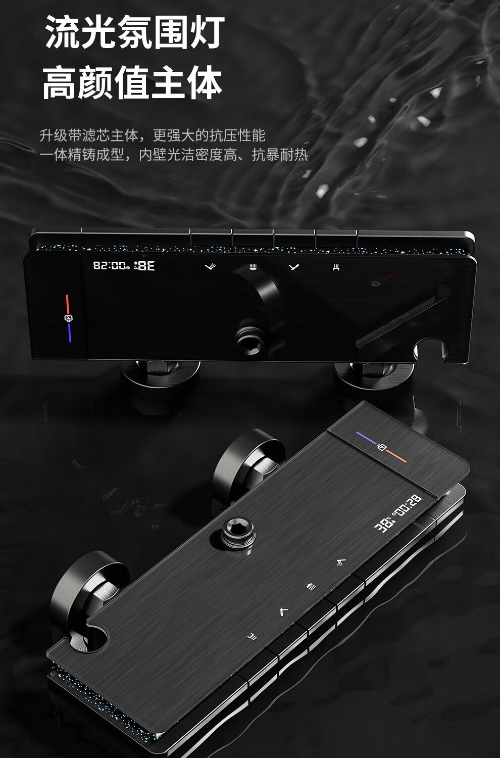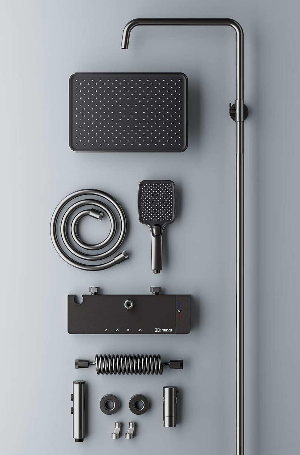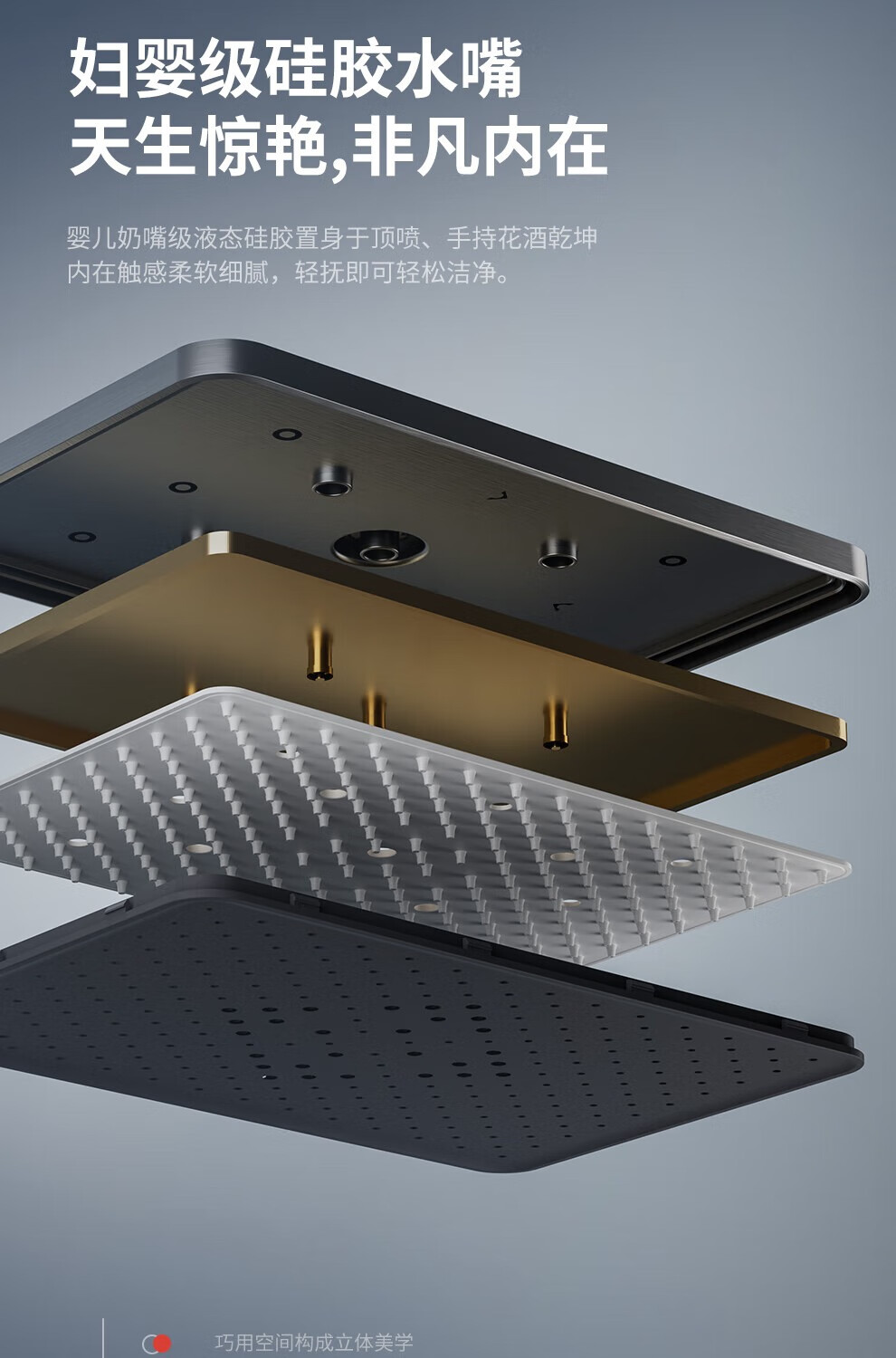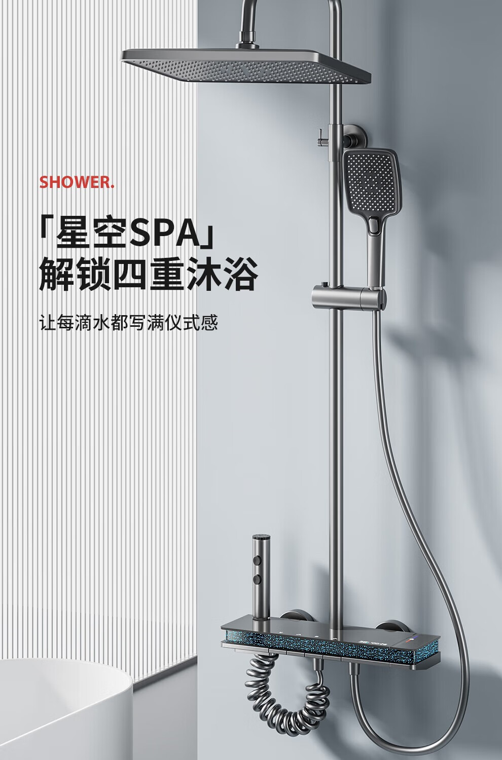 JOMOO shower head set all-copper supercharged smart constant temperature piano bathroom bathroom complete set of silicone nozzles water-coated gray-flagship large storage starry sky-constant temperature