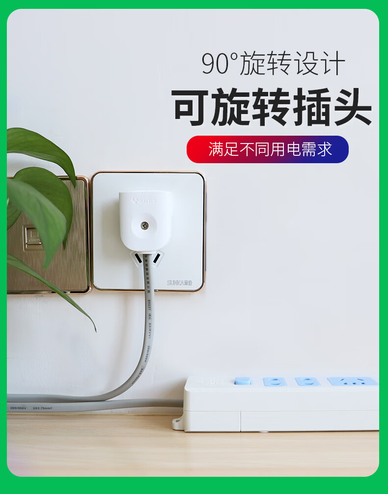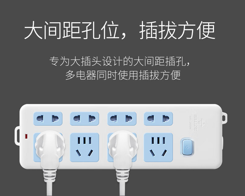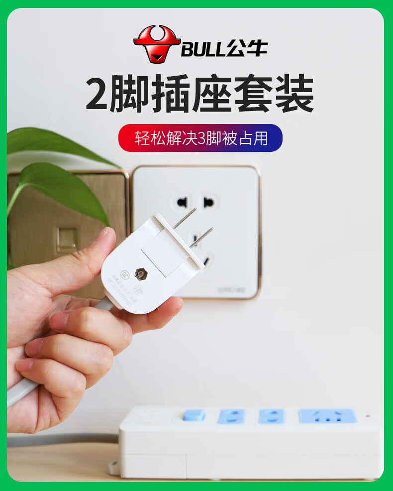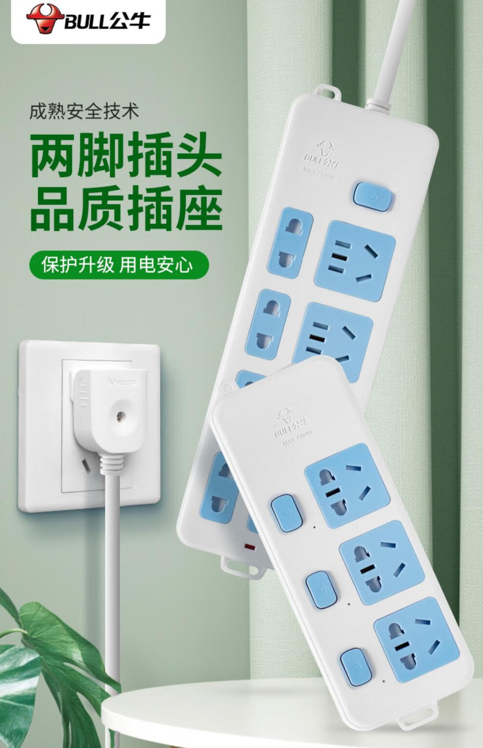 Bull socket two-term plug plug-in board two-hole to three-hole drag line board 2-pin plug-in row household plug-in board with line line length 0.1 meters 1 plug-no switch