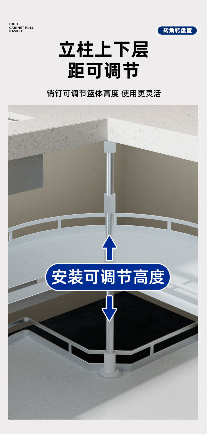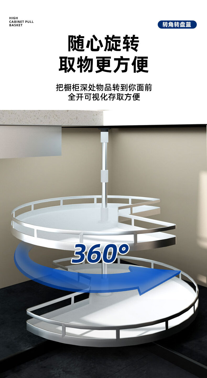 Jiang Zhiai cabinet pots and dishes turntable basket 270 degree kitchen monster corner pull basket double layer rotating seasoning storage rack gray with anti-slip mat 800 cabinet 270 turntable basket