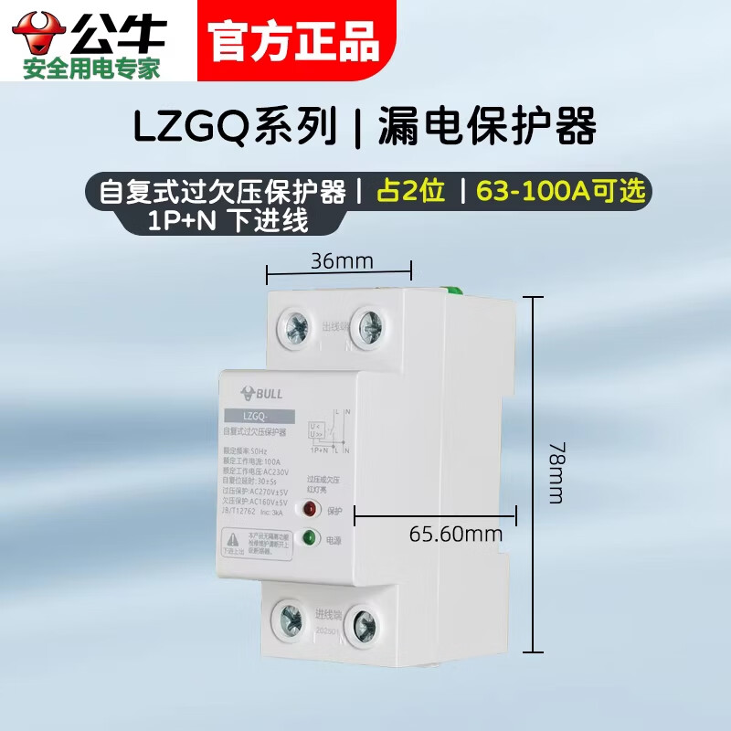 Bull self-resetting over and under voltage protector household 220V three-phase four-wire voltage switch with automatic reset function 3PN over and under voltage-100A