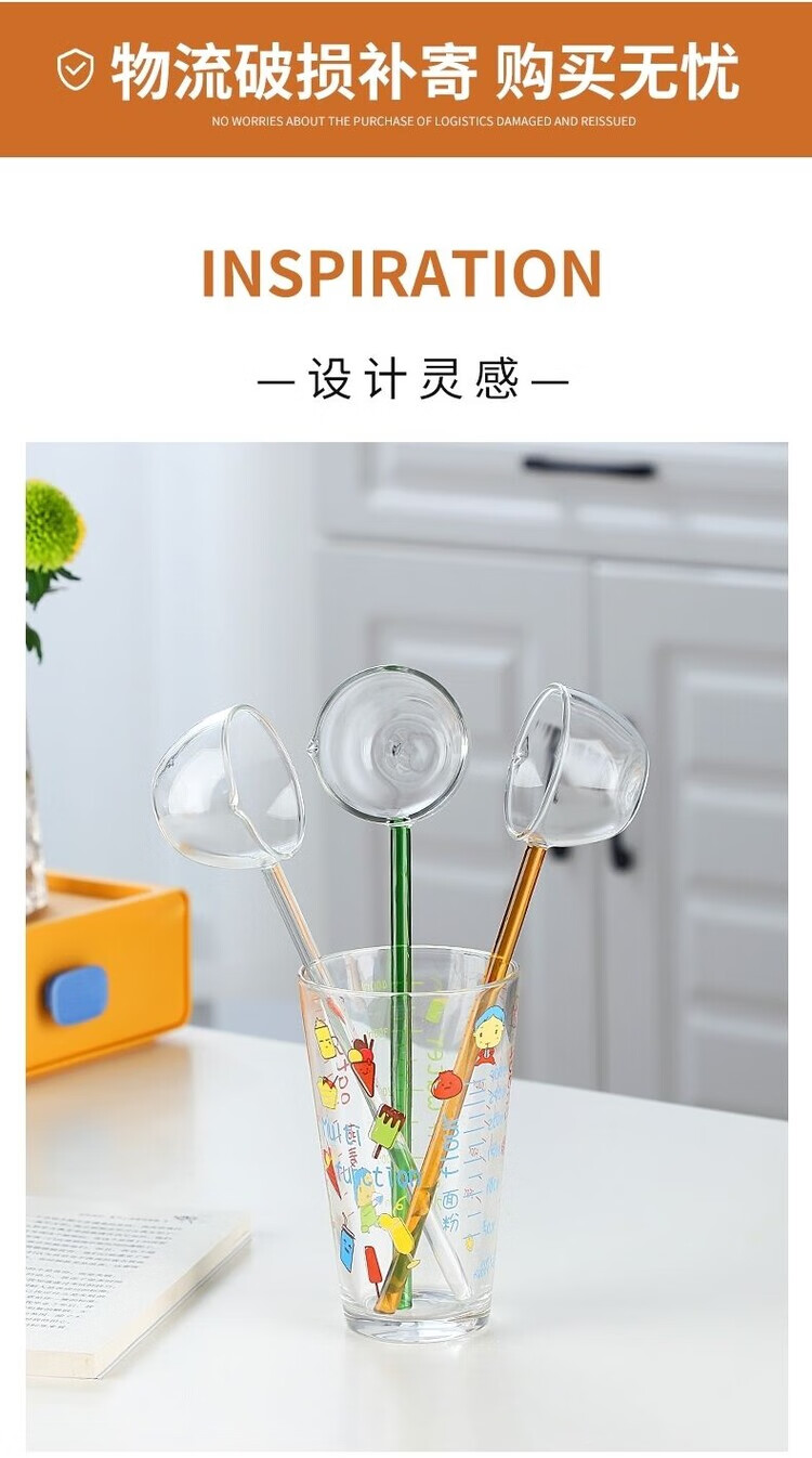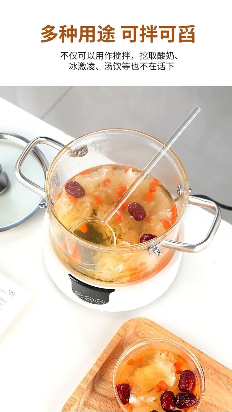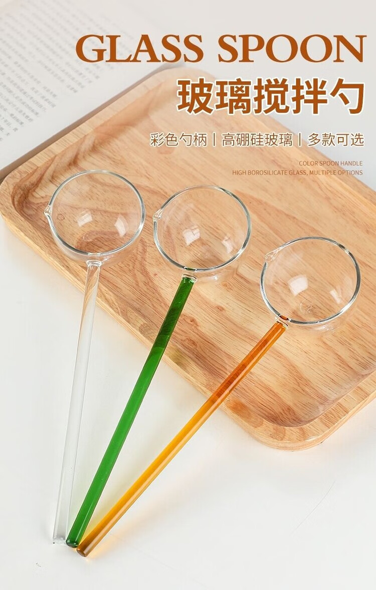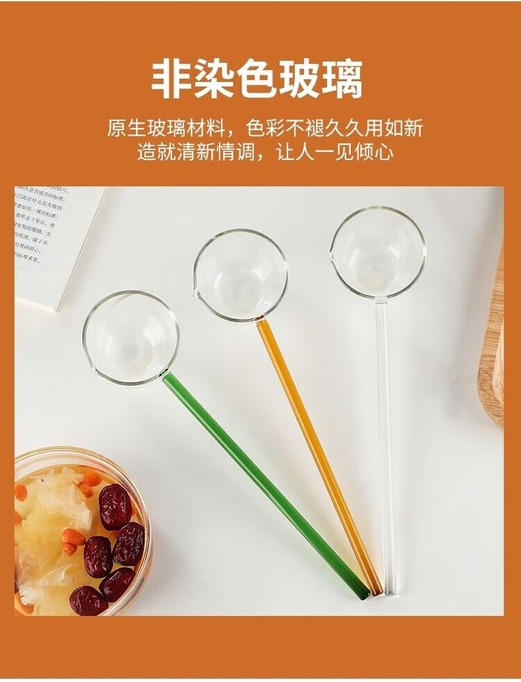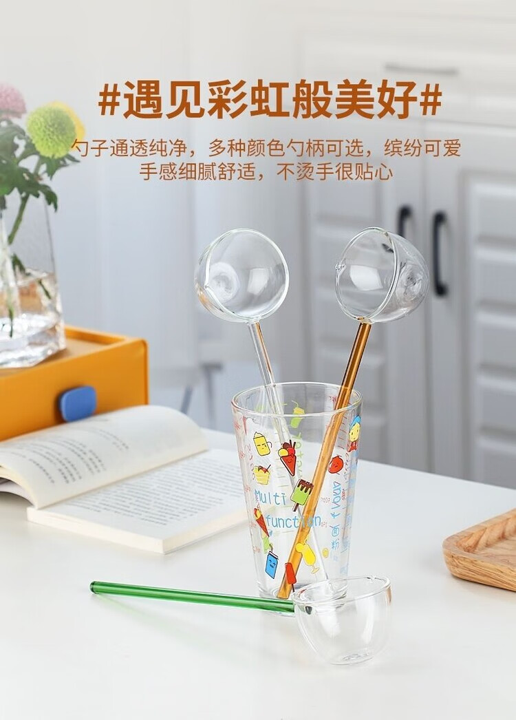 Ostar glass spoon long handle high temperature resistant Internet celebrity gourmet anchor seasoning spoon strange tea soup spoon high appearance ins white straight glass spoon 75ml 1