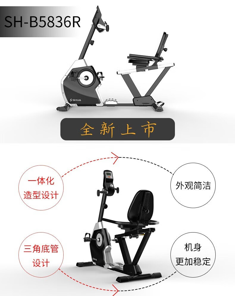 Shuhua (SHUA) home horizontal exercise bike silent luxury commercial sports fitness equipment gym SH-B9100R color screen version commercial horizontal exercise bike