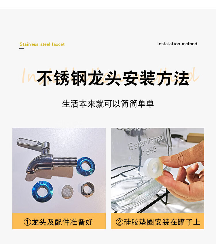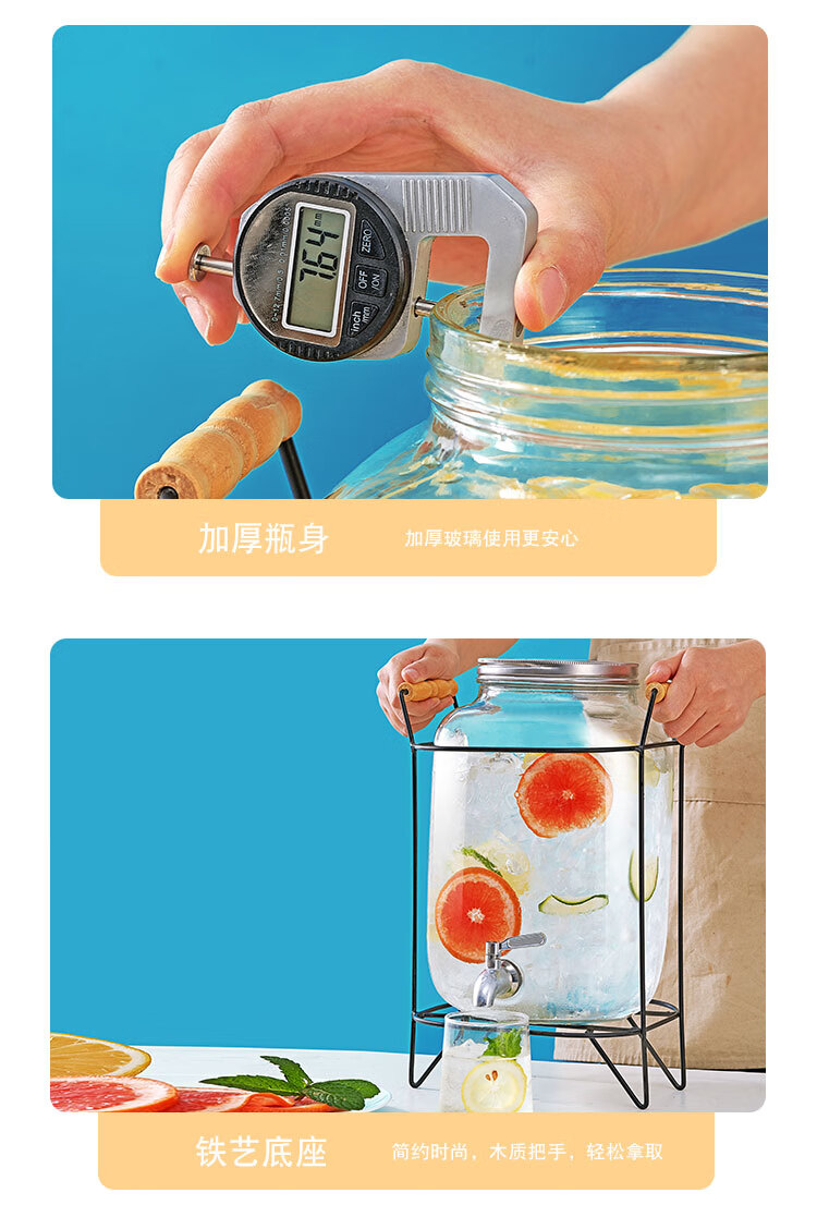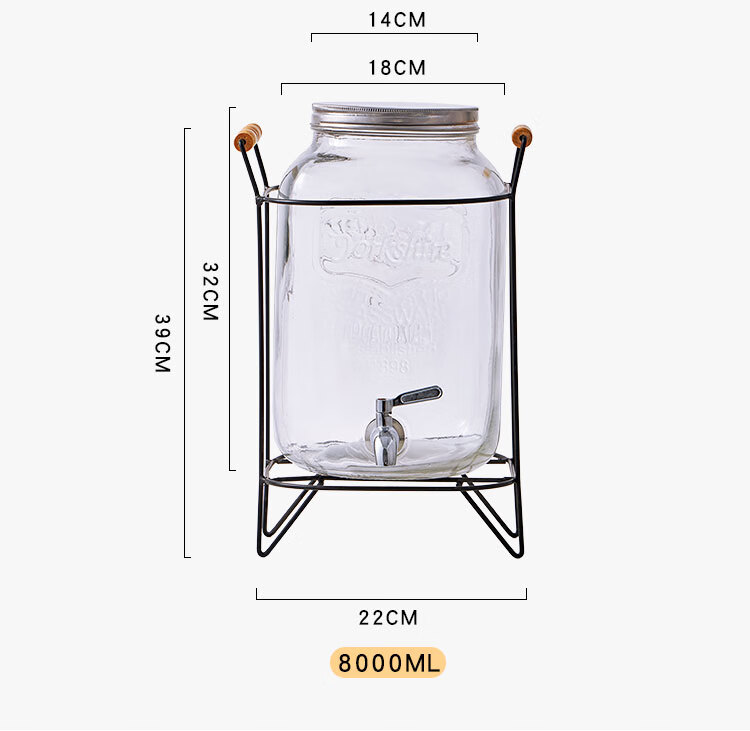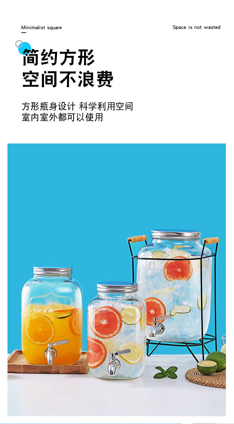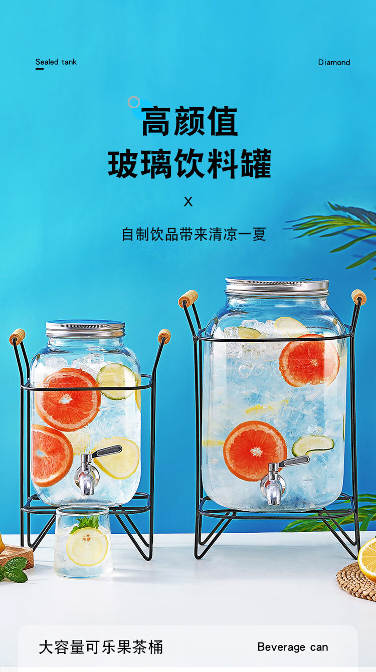 Internet celebrity Niubi barrel, Coke barrel, bar beer barrel, glass cold kettle, beverage barrel with faucet, homemade fruit tea barrel, 8 liters + stainless steel faucet + iron frame