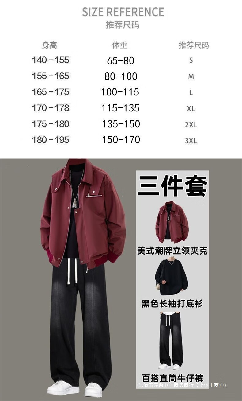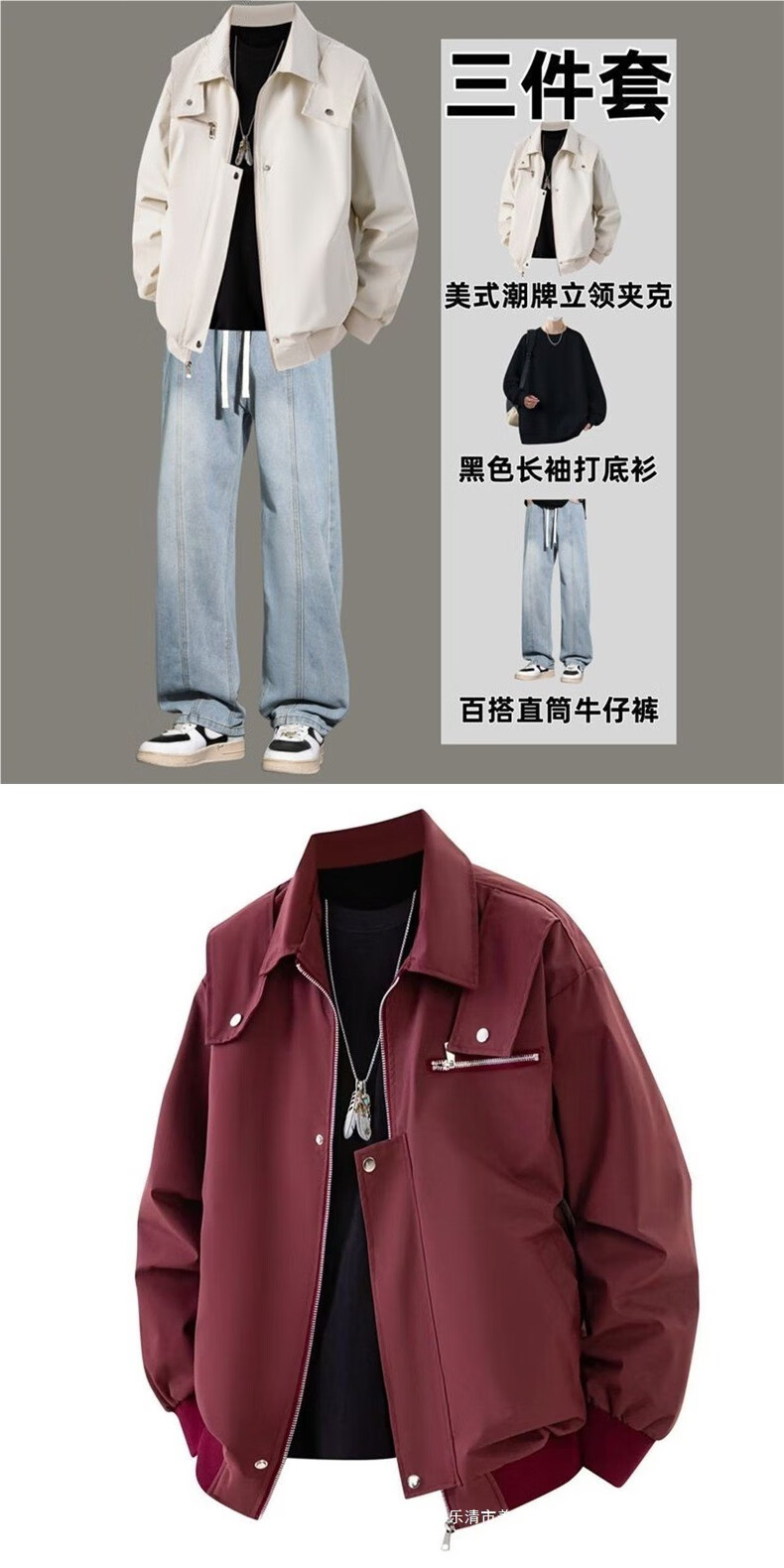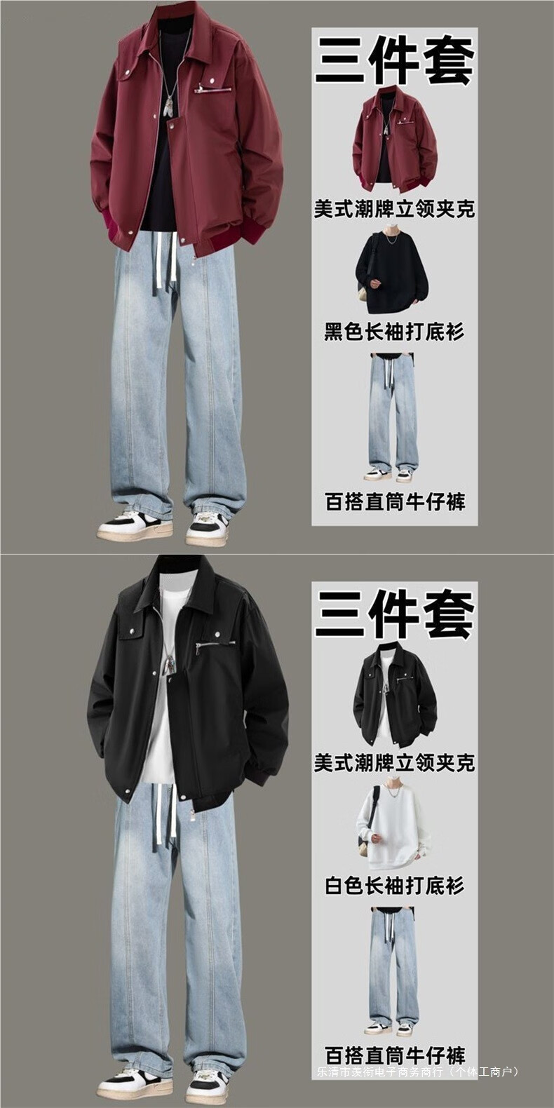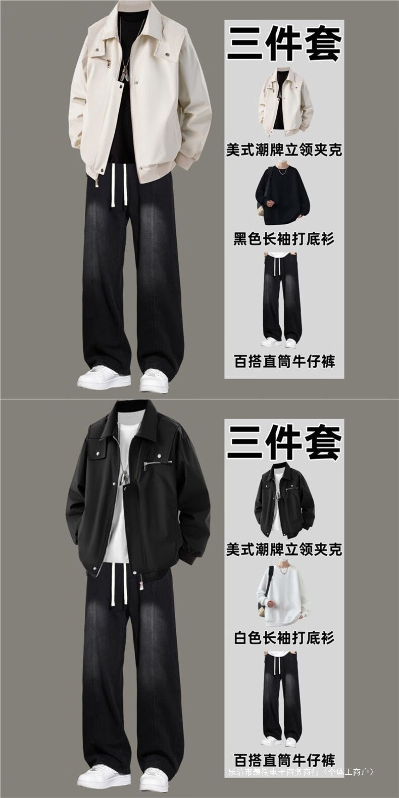 Xingsuyao (xingsuyao) American retro work jacket suit for men and teenagers complete set with jeans men's trendy three-piece cotton set H466 black + white long T + K21 jeans black XL recommended 115-135 pounds d