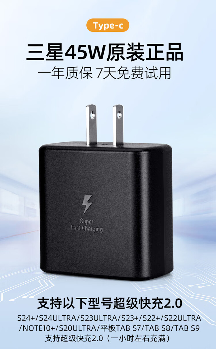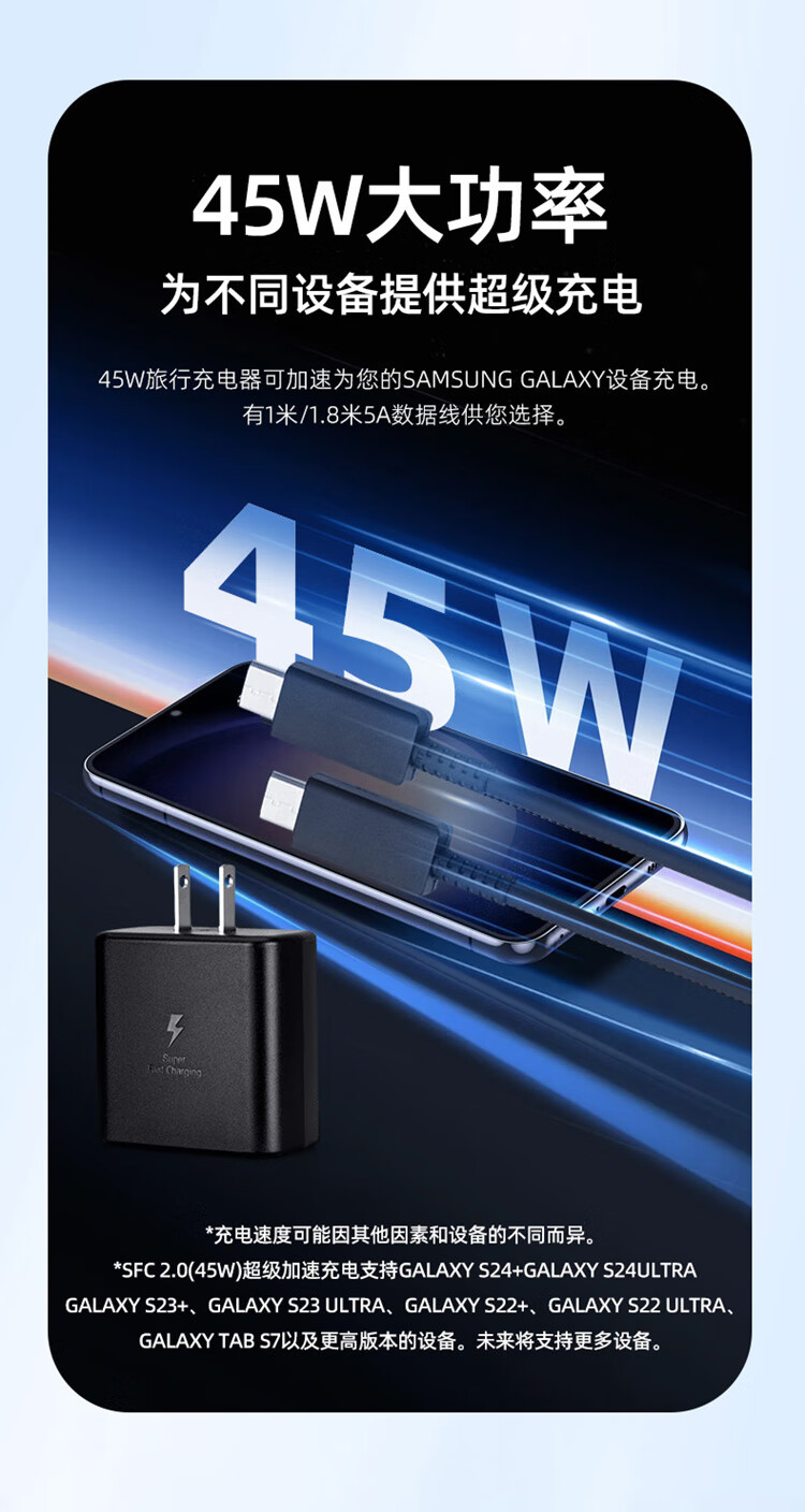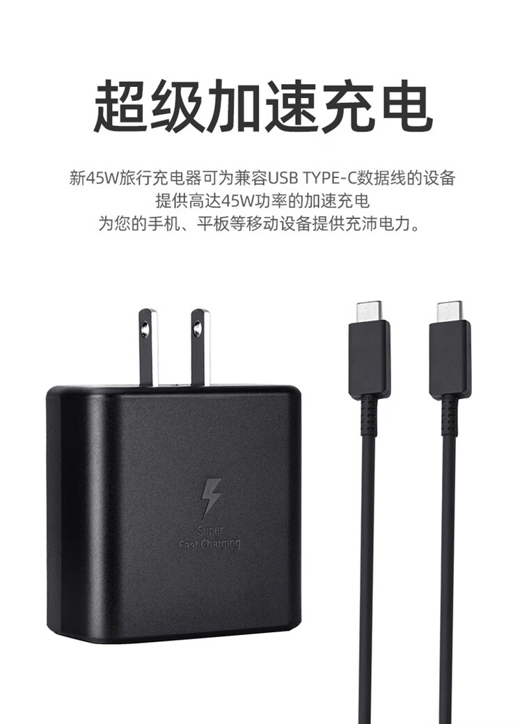 Samsung (SAMSUNG) 45W fast charging head s22+S24Ultra charger s20u direct charging s23u original tabs8/s9 tablet 5Atypec ultra-fast charging 2.0 45W fast charging head + 5A fast charging cable_line 1.8 meters (white)