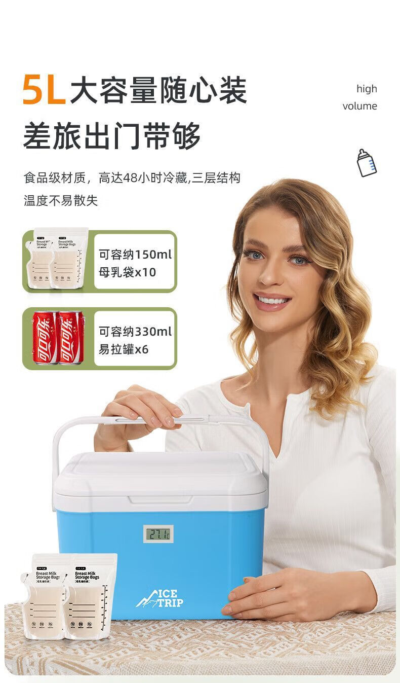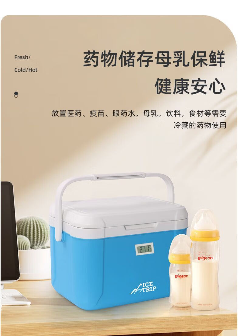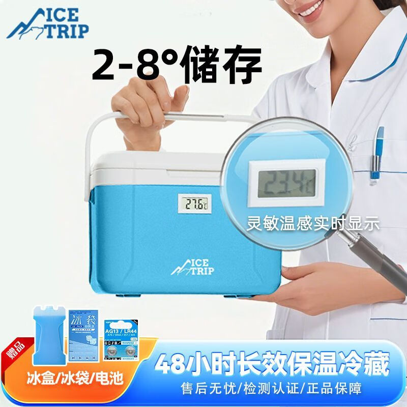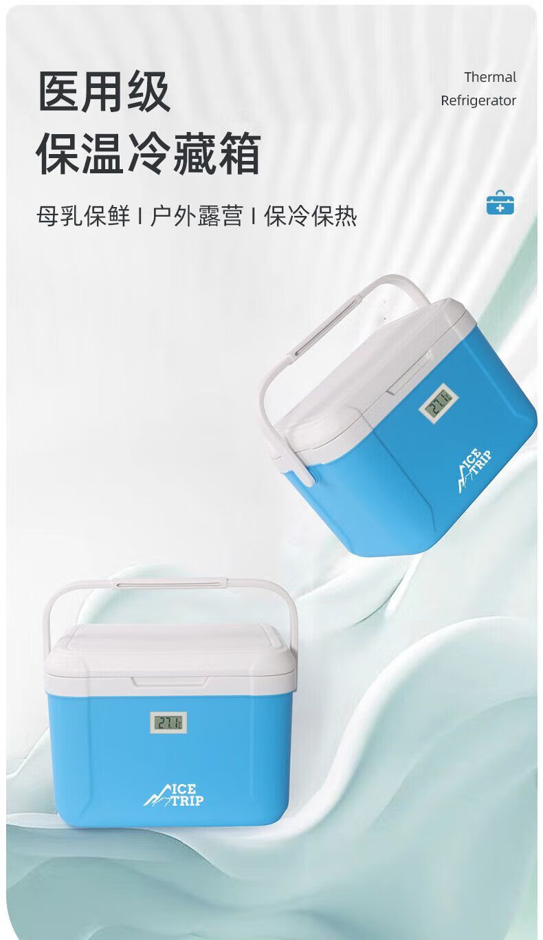 Medical insulated box refrigerator 2-8 milk storage small refrigerator breast milk car portable insulin medicine box 5.5L blue cold storage 48H with 6 ice packs safe storage of medicines breast milk food/no need to plug in