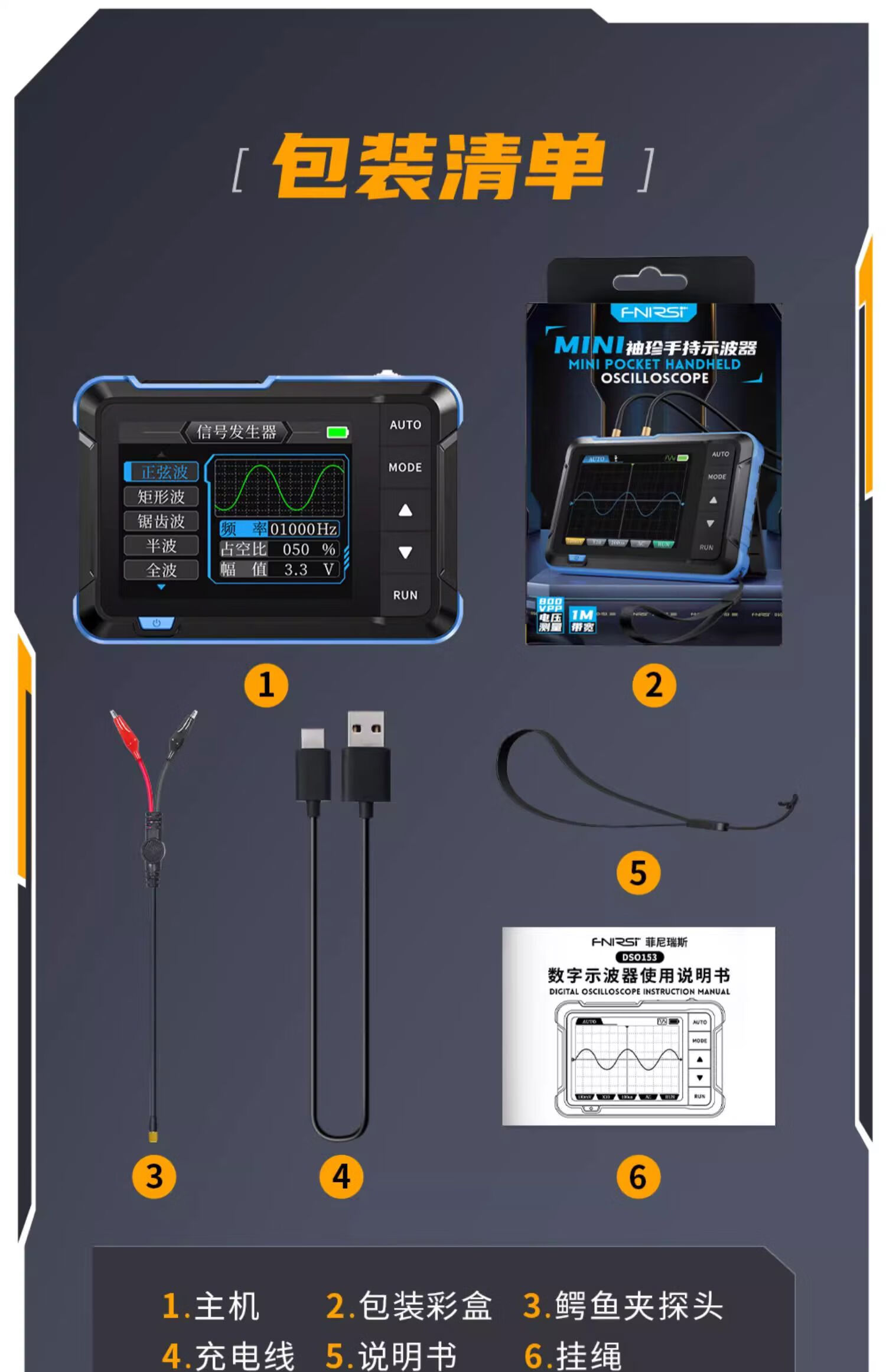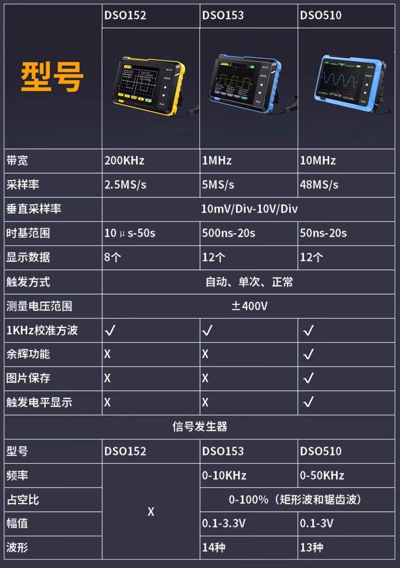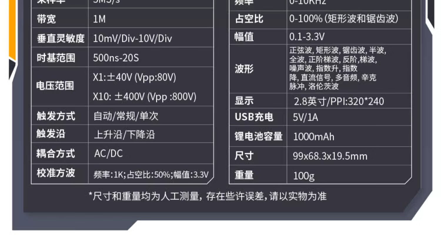 DSO510 handheld small digital oscilloscope, portable two-in-one multi-function mini signal generator 1M bandwidth DSO-510 comes with a free storage bag
