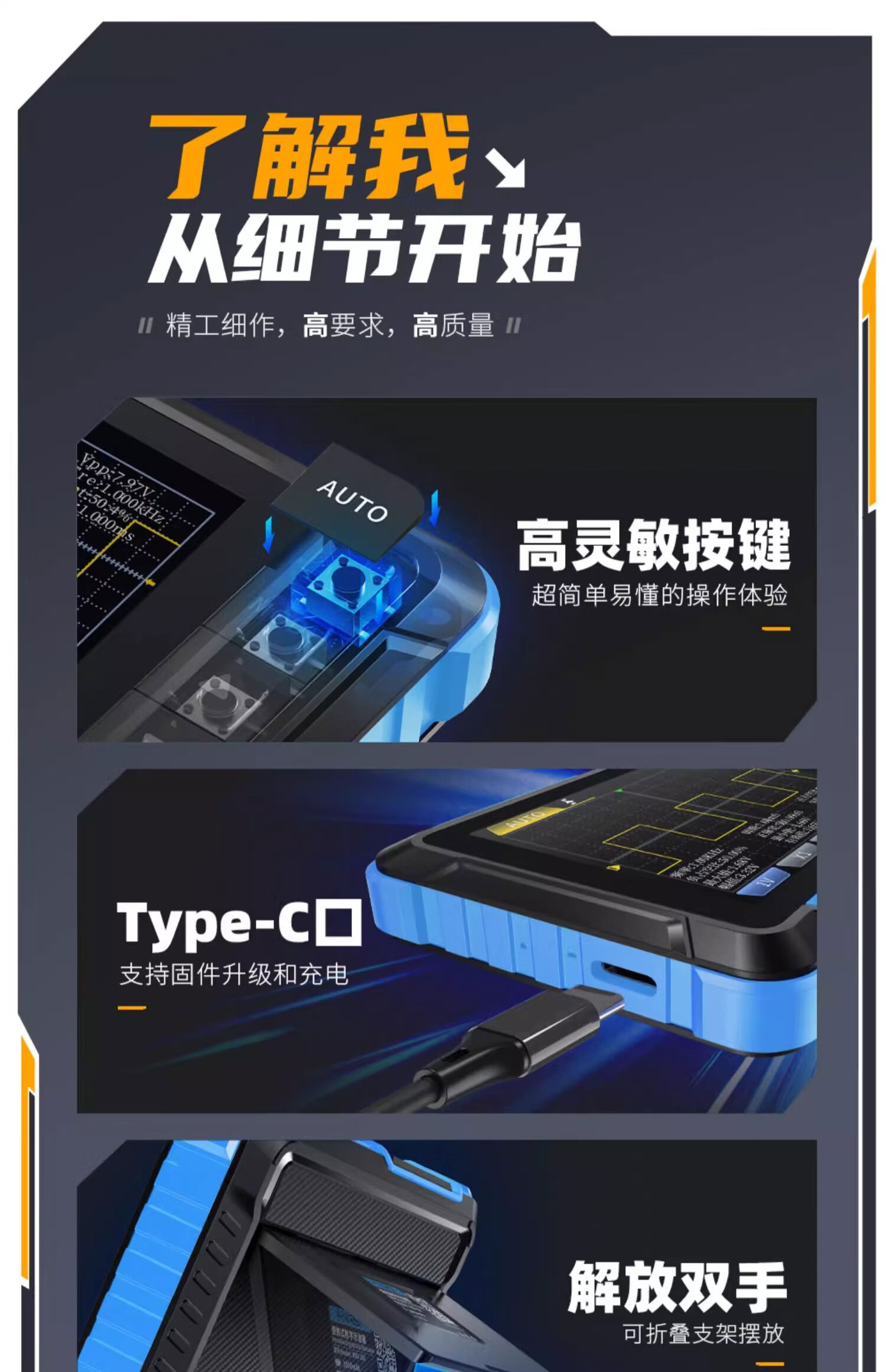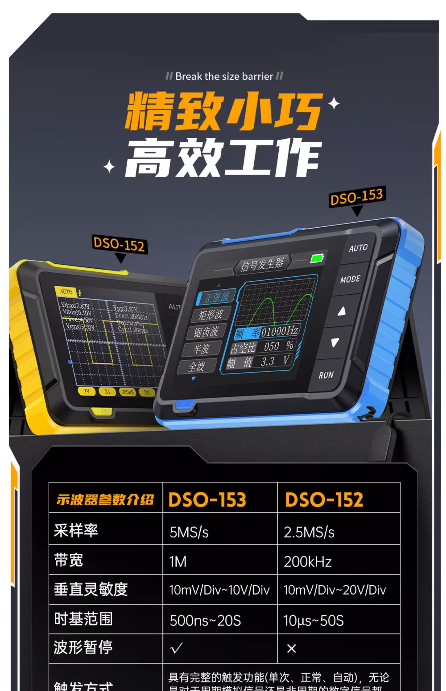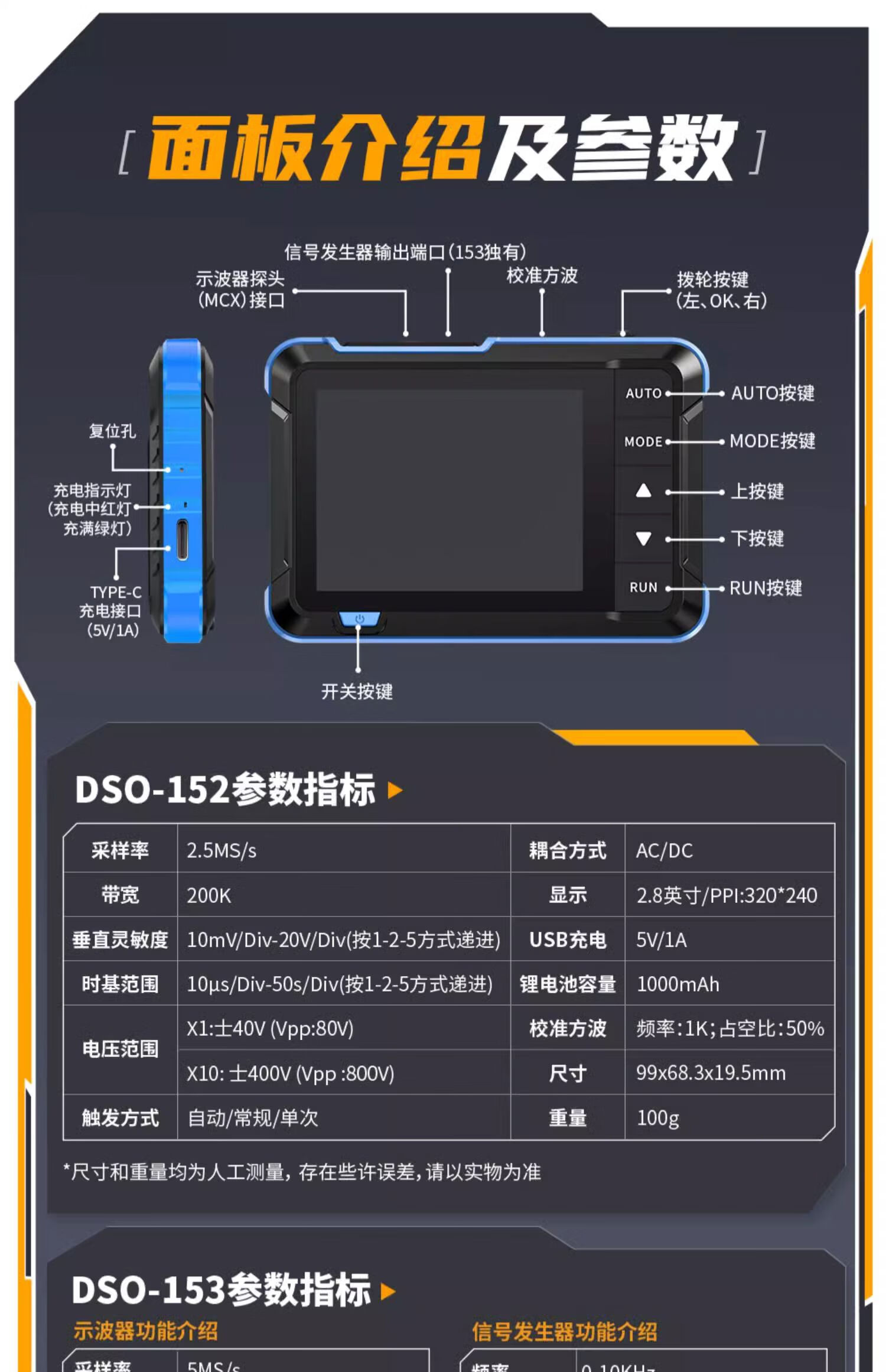 DSO510 handheld small digital oscilloscope, portable two-in-one multi-function mini signal generator 1M bandwidth DSO-510 comes with a free storage bag