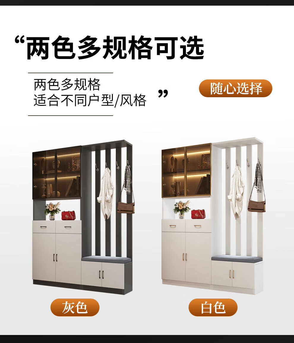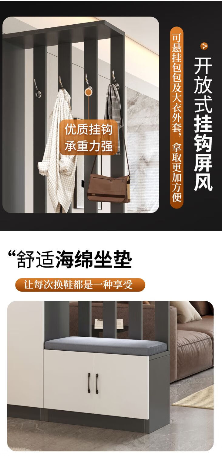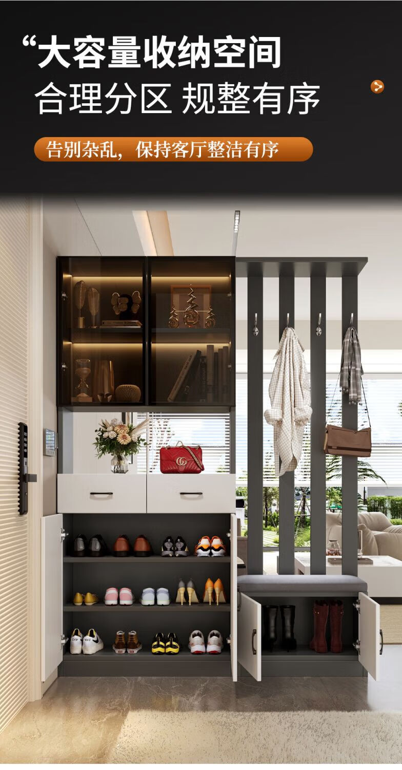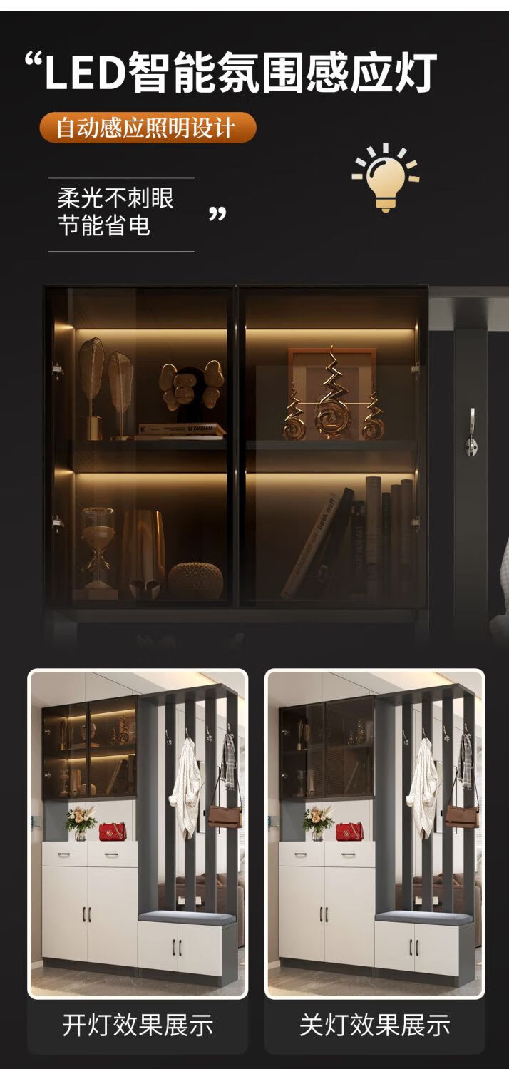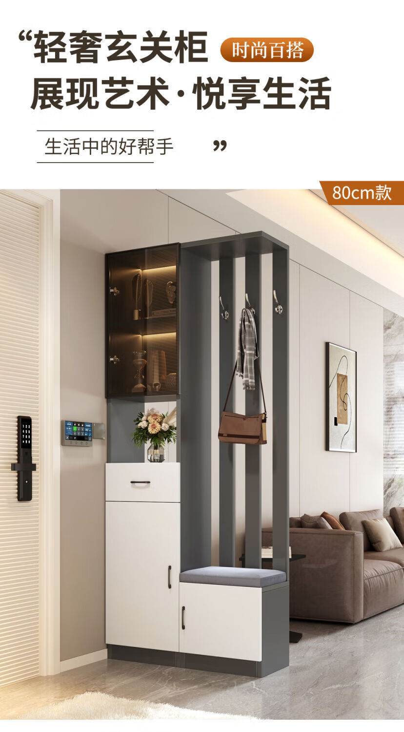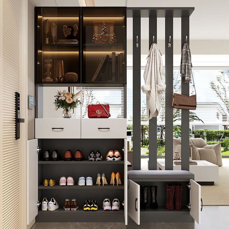 Ye Yu Qingshe solid wood entrance cabinet shoe cabinet integrated simple multi-functional living room entrance partition cabinet wine cabinet shoe stool storage cabinet goods upstairs solid wood board self-installation starry sky gray 80cm long left stool + smart sensor light