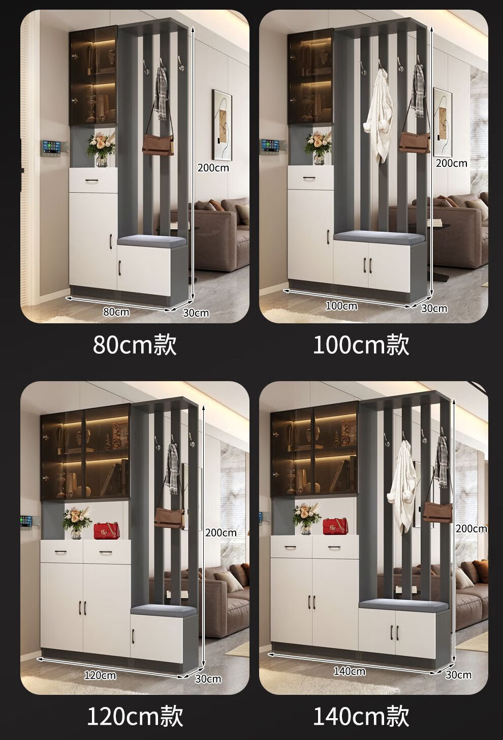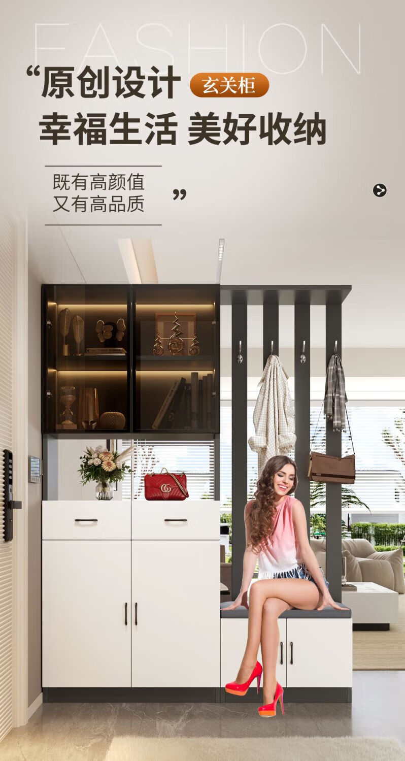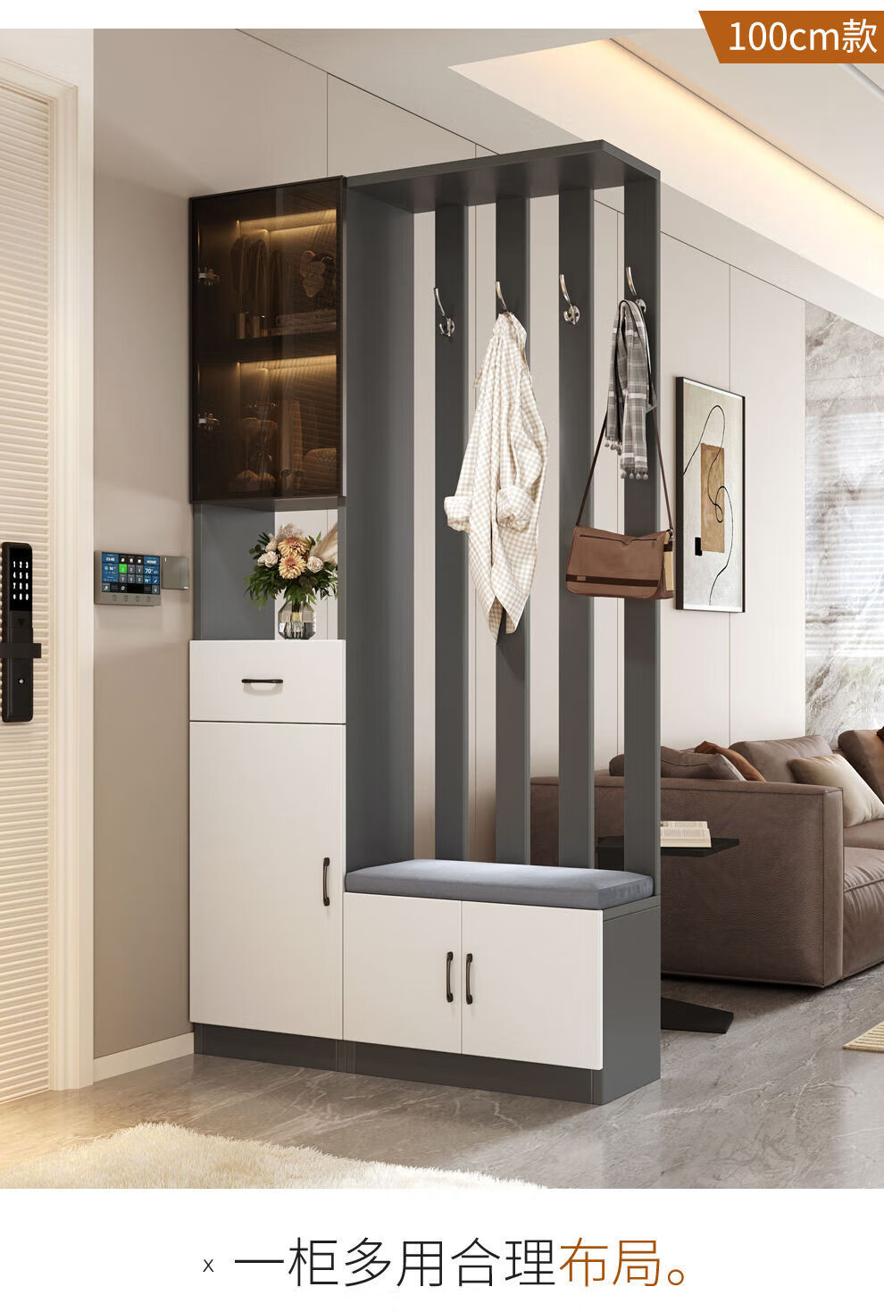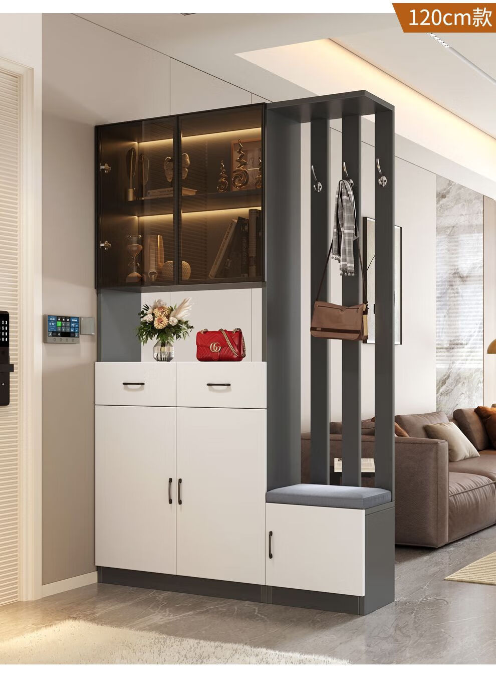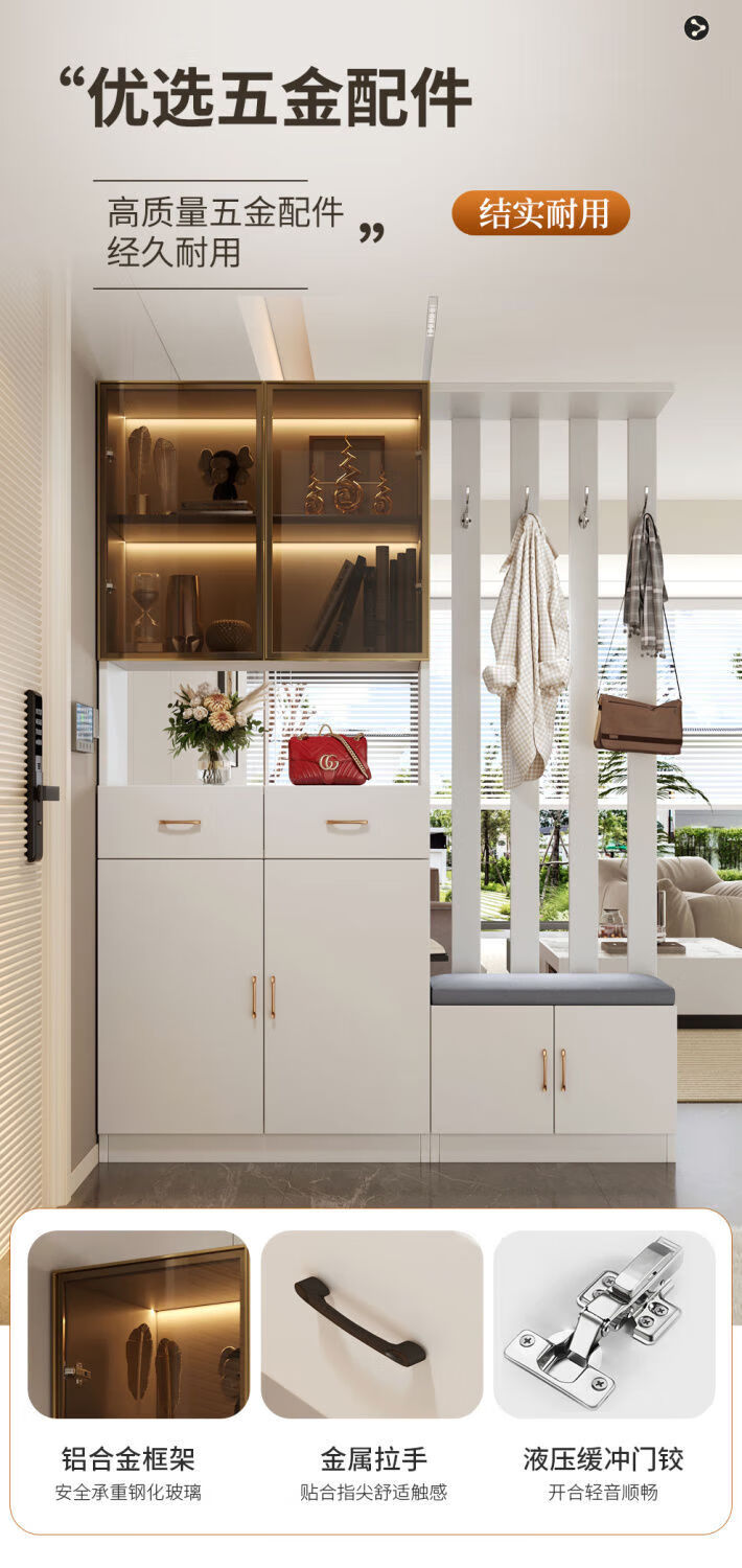 Ye Yu Qingshe solid wood entrance cabinet shoe cabinet integrated simple multi-functional living room entrance partition cabinet wine cabinet shoe stool storage cabinet goods upstairs solid wood board self-installation starry sky gray 80cm long left stool + smart sensor light