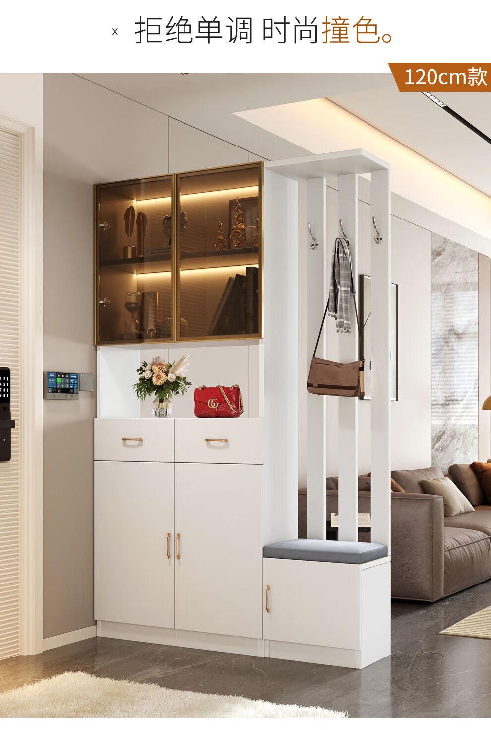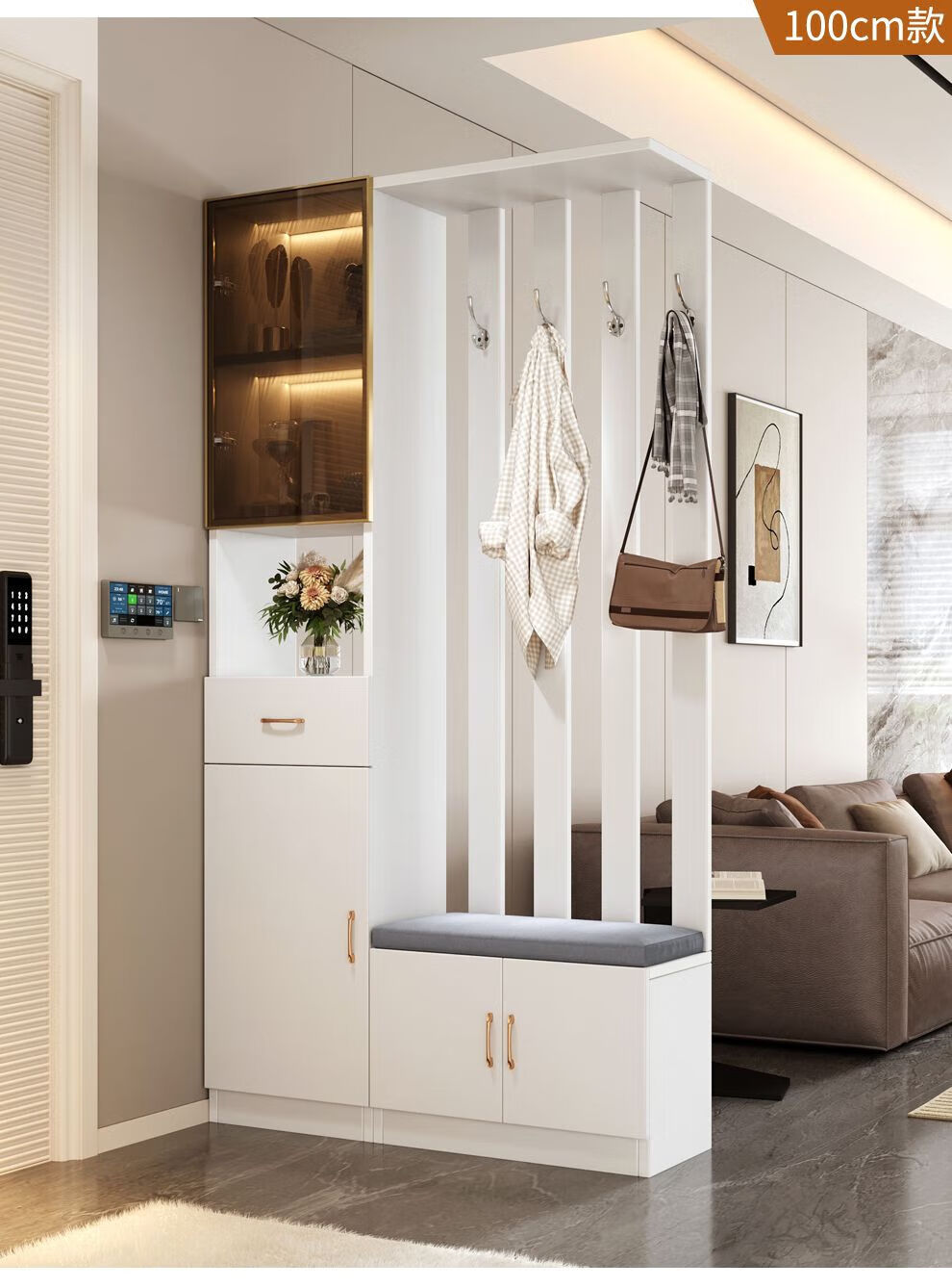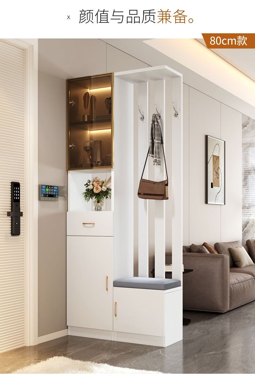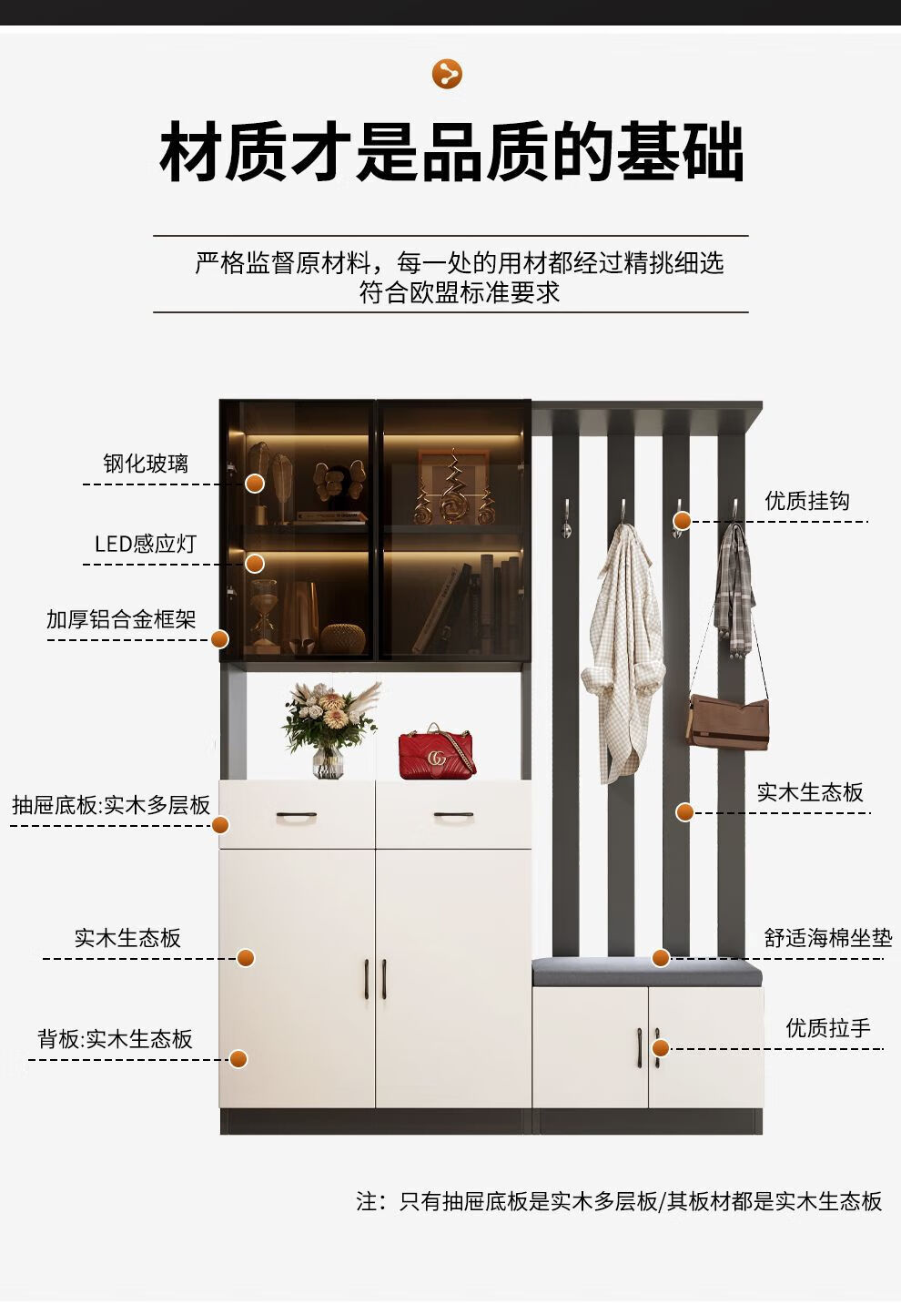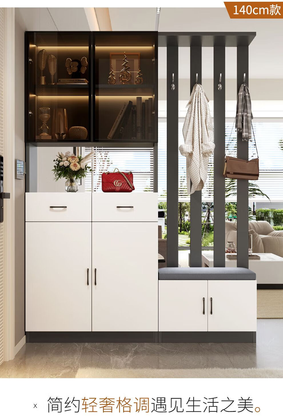 Ye Yu Qingshe solid wood entrance cabinet shoe cabinet integrated simple multi-functional living room entrance partition cabinet wine cabinet shoe stool storage cabinet goods upstairs solid wood board self-installation starry sky gray 80cm long left stool + smart sensor light