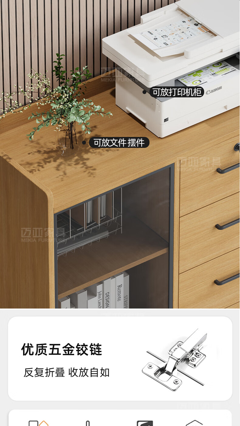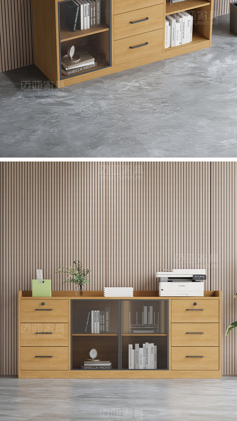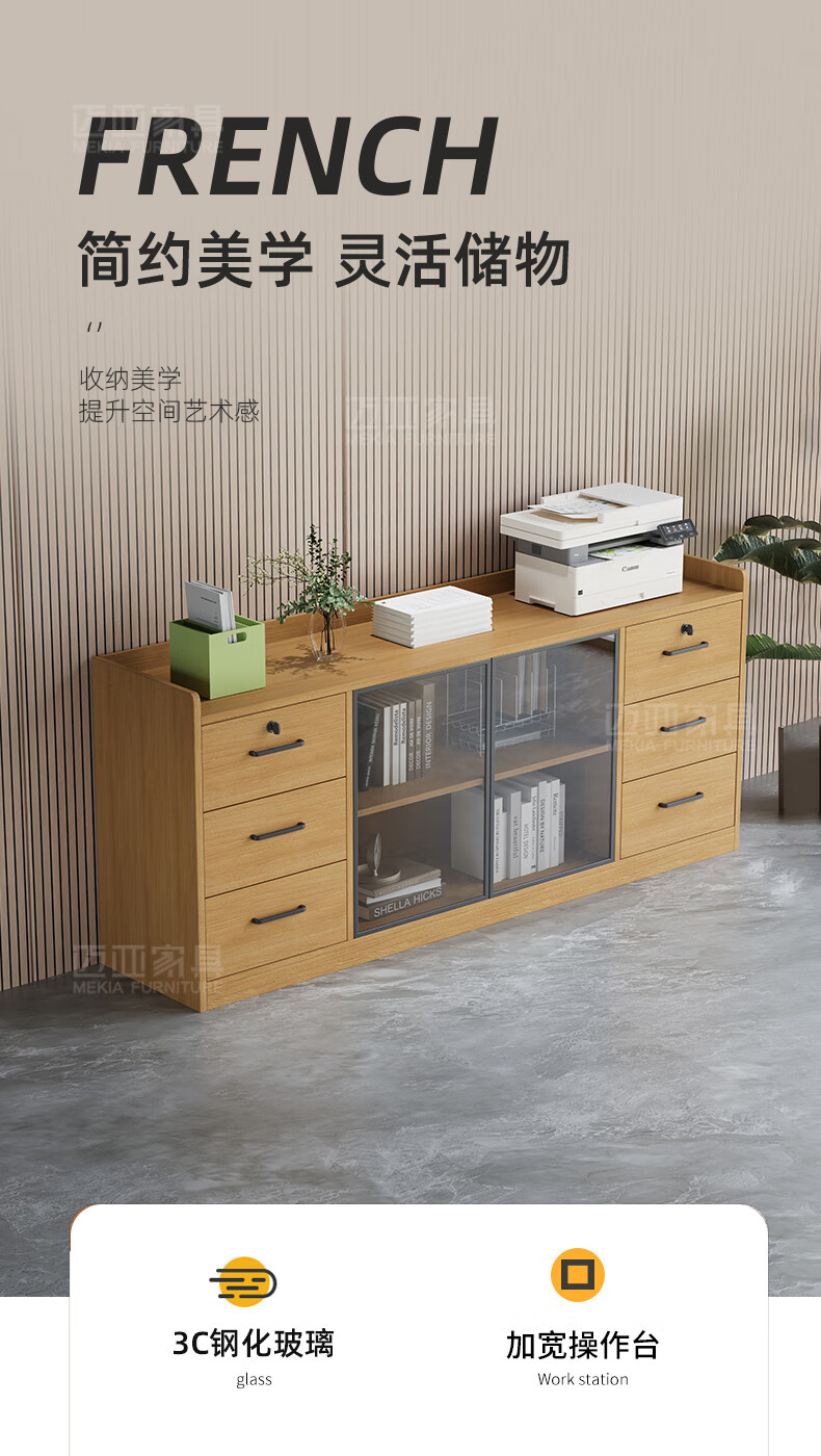 Maiya furniture printer cabinet tea cabinet low cabinet file cabinet office cabinet side cabinet side cabinet glass door mobile cabinet floor-standing package installation Kal wood 160*40*75cm double door glass-package installation