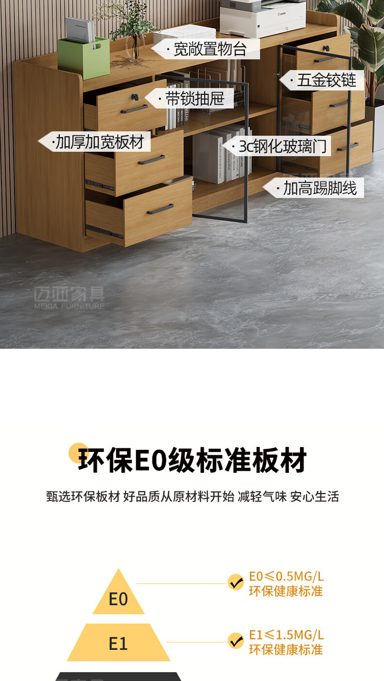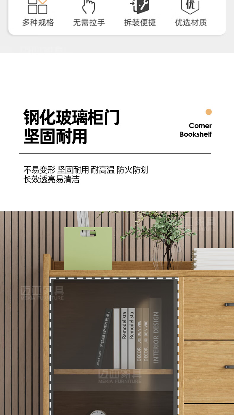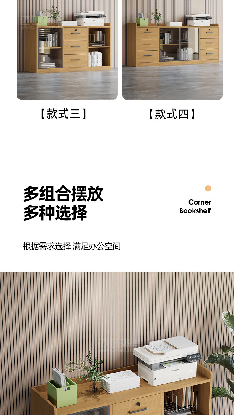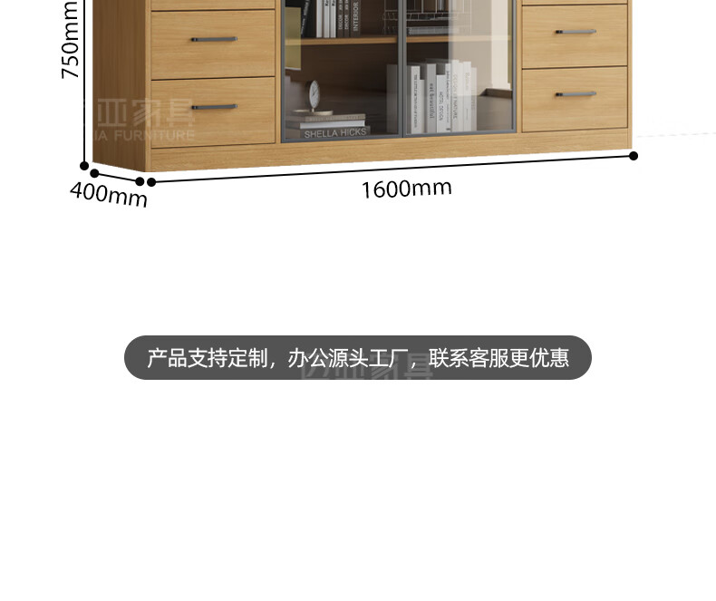 Maiya furniture printer cabinet tea cabinet low cabinet file cabinet office cabinet side cabinet side cabinet glass door mobile cabinet floor-standing package installation Kal wood 160*40*75cm double door glass-package installation