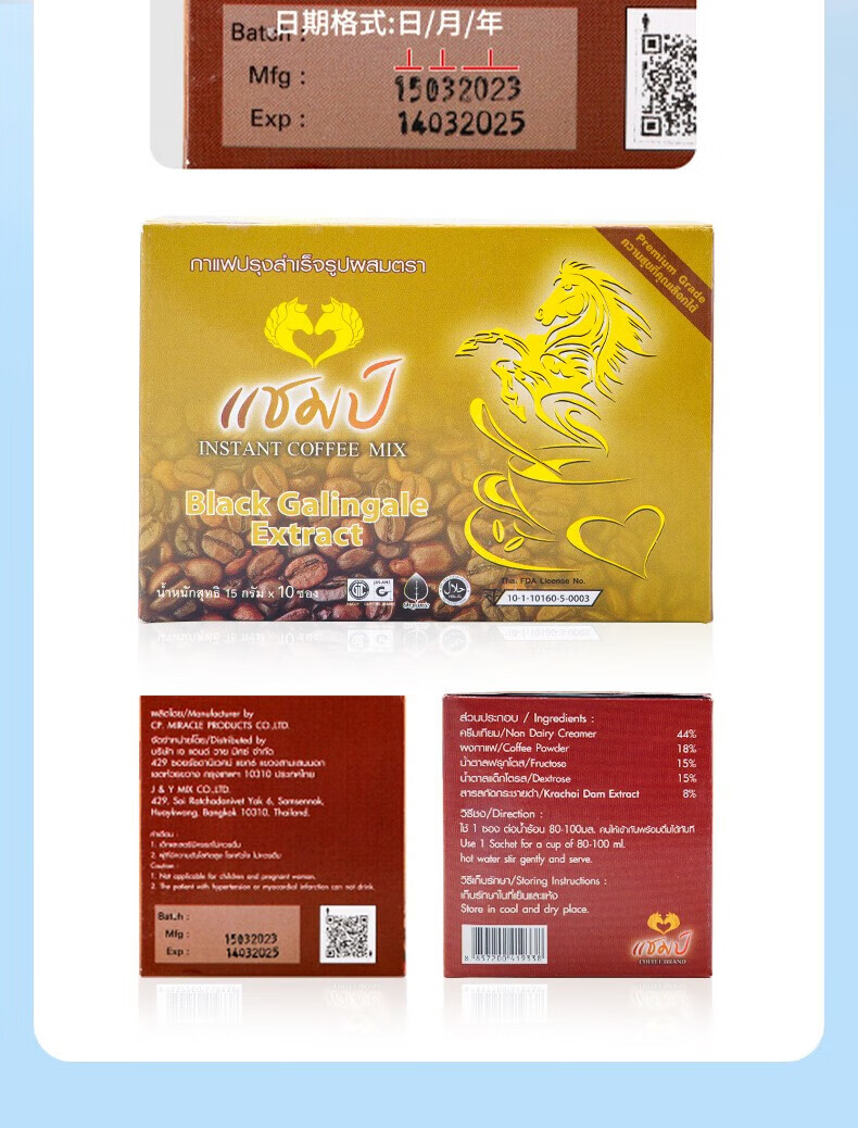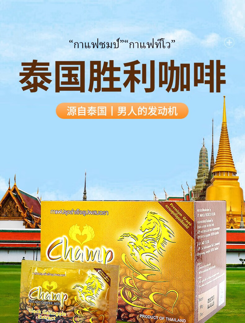 CHAMP Victory Thai Coffee Original Imported Men's Instant Maca Energy Boost 10 Bags in a Box