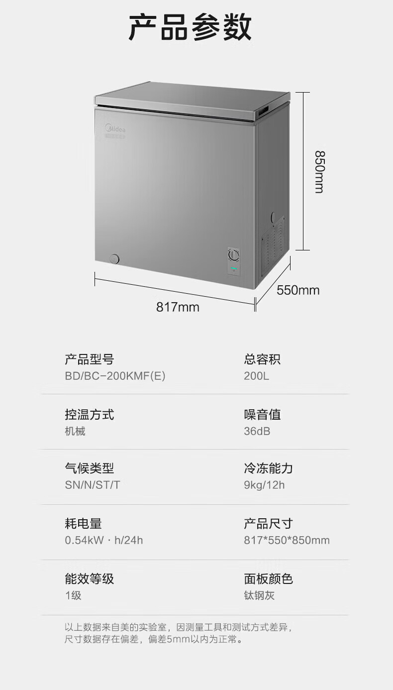 Midea small freezer household first-level energy efficiency 200 liters horizontal ultra-low temperature freezer -40 freezer commercial refrigeration-freezer conversion cabinet small stocking household refrigerator 145 liters/upgrade frost reduction and odor removal/-30 quick freezing/first-level energy efficiency