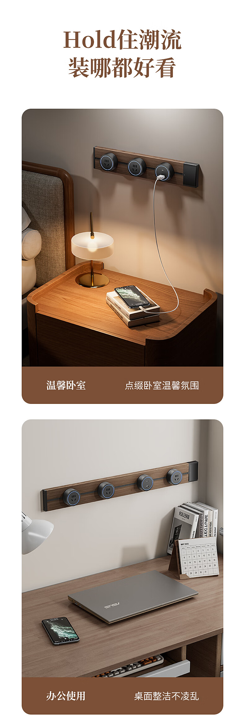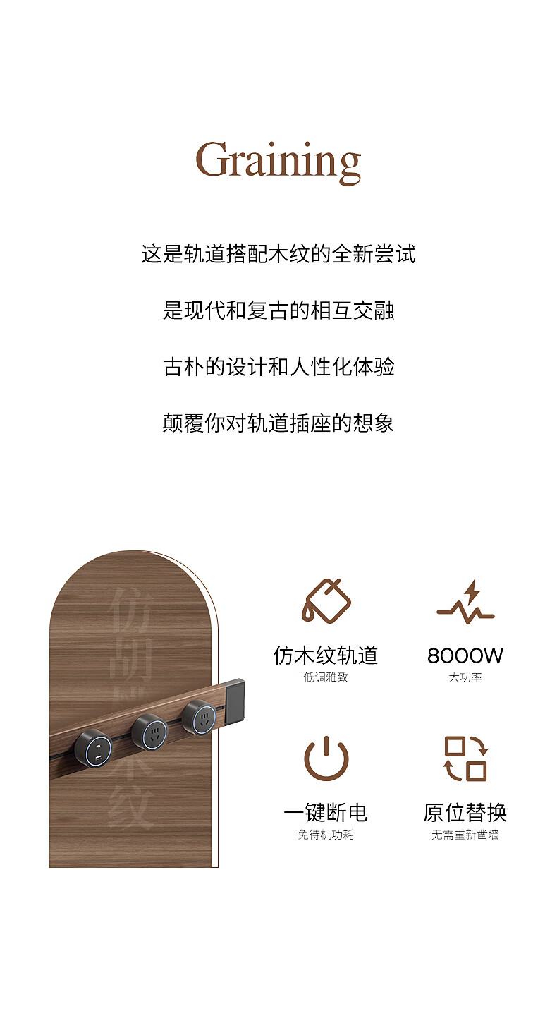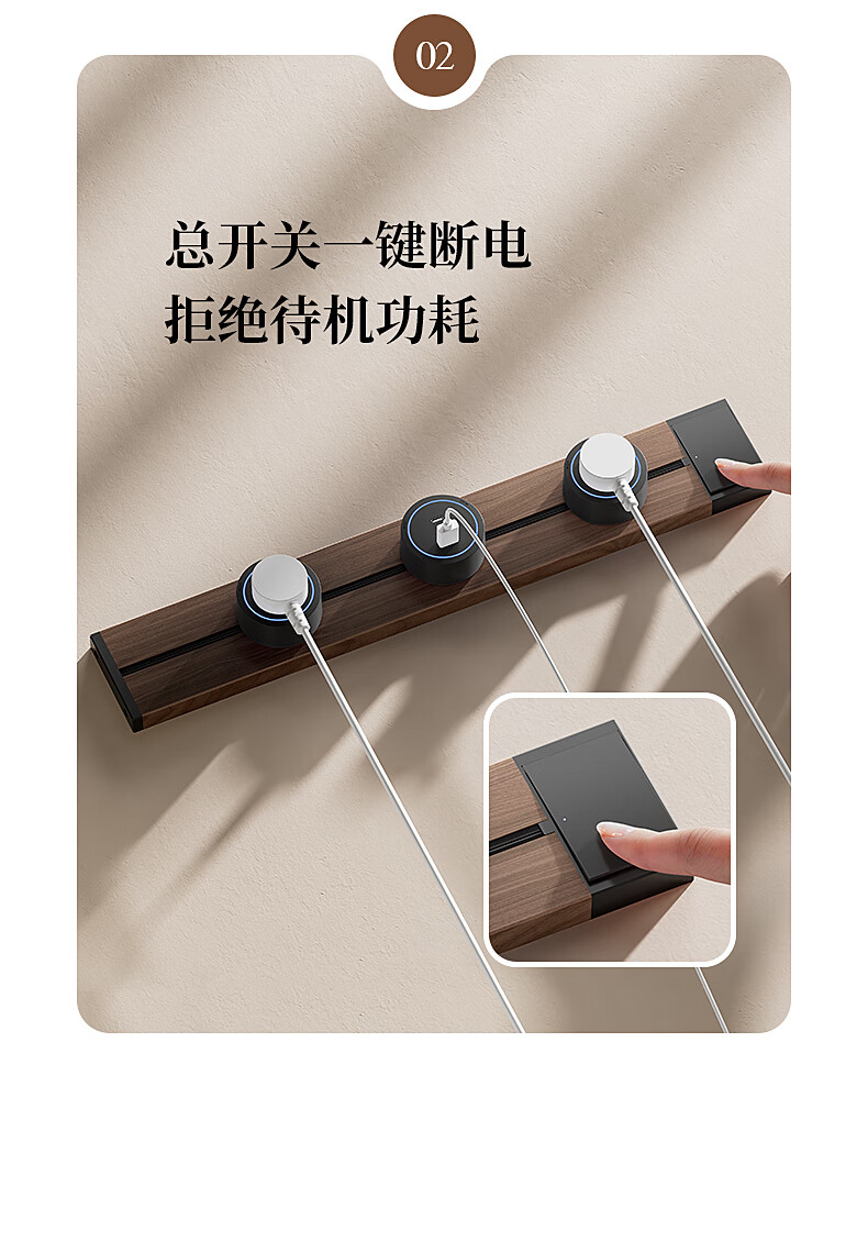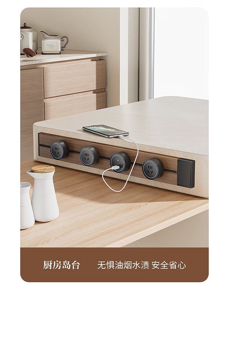 Electrician's movable track socket retro wood grain expansion strip kitchen sideboard expansion multi-hole plug strip with master control switch wood grain 30cm + 2 five holes with LED lights straight