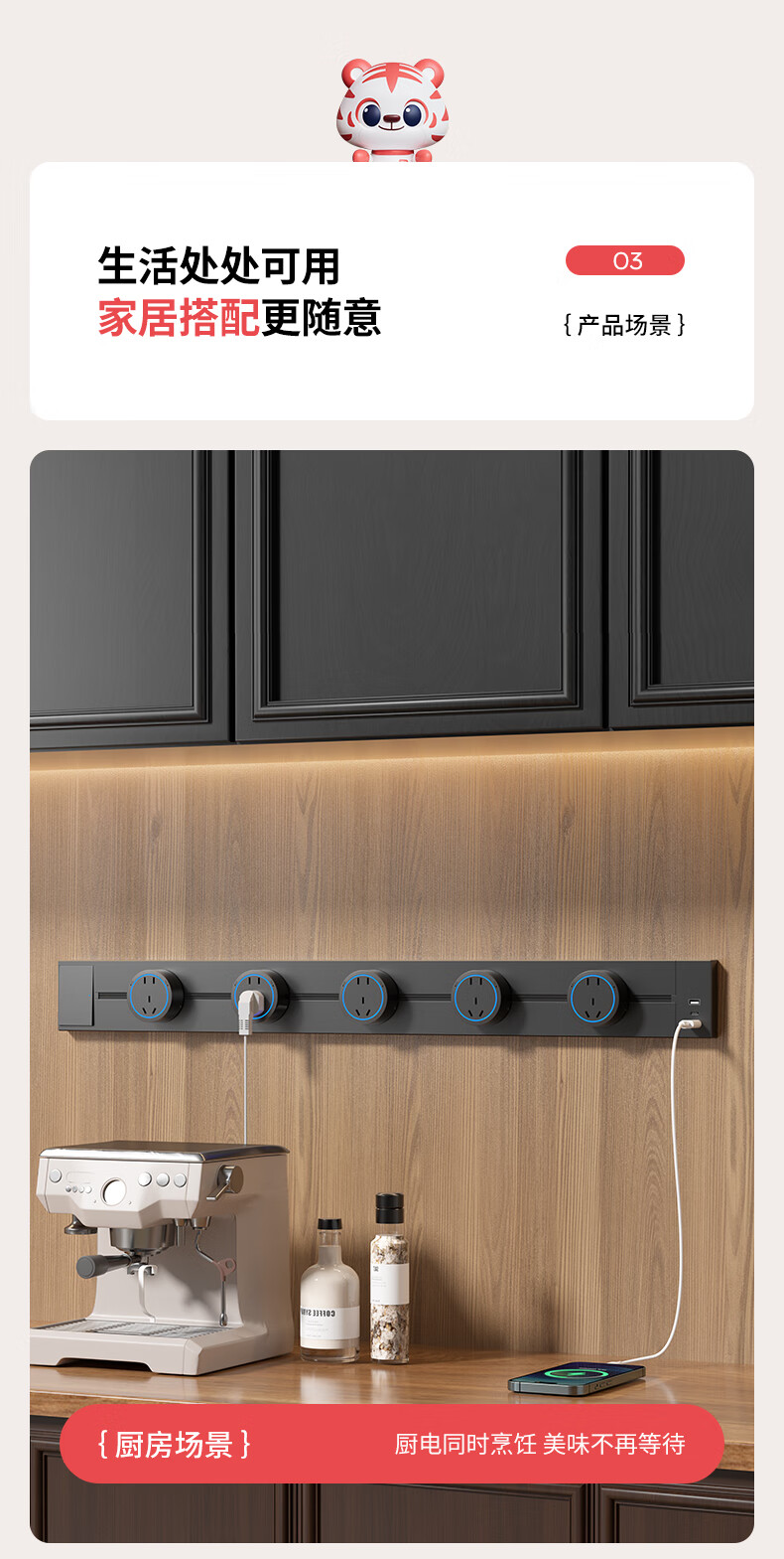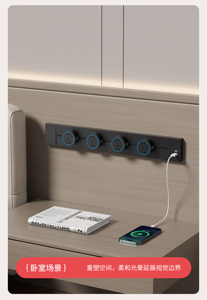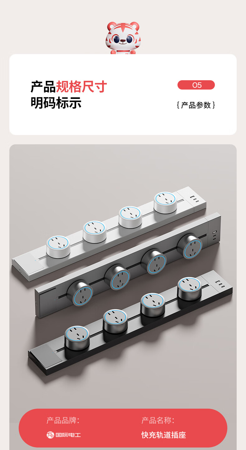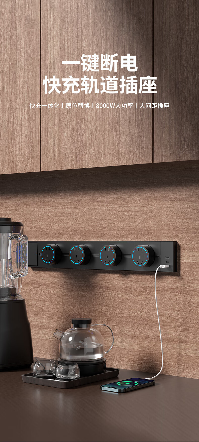 Fast charging track socket with switch master control movable sideboard slide rail plug-in kitchen power rail usb-c with switch white 30+2+ fast charging UC