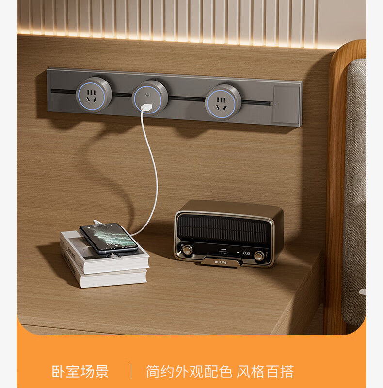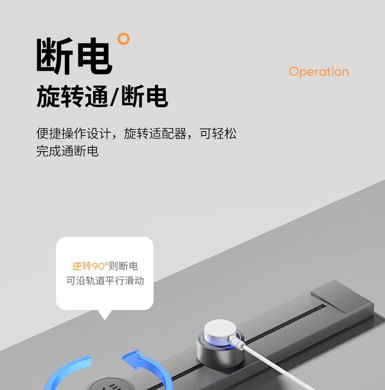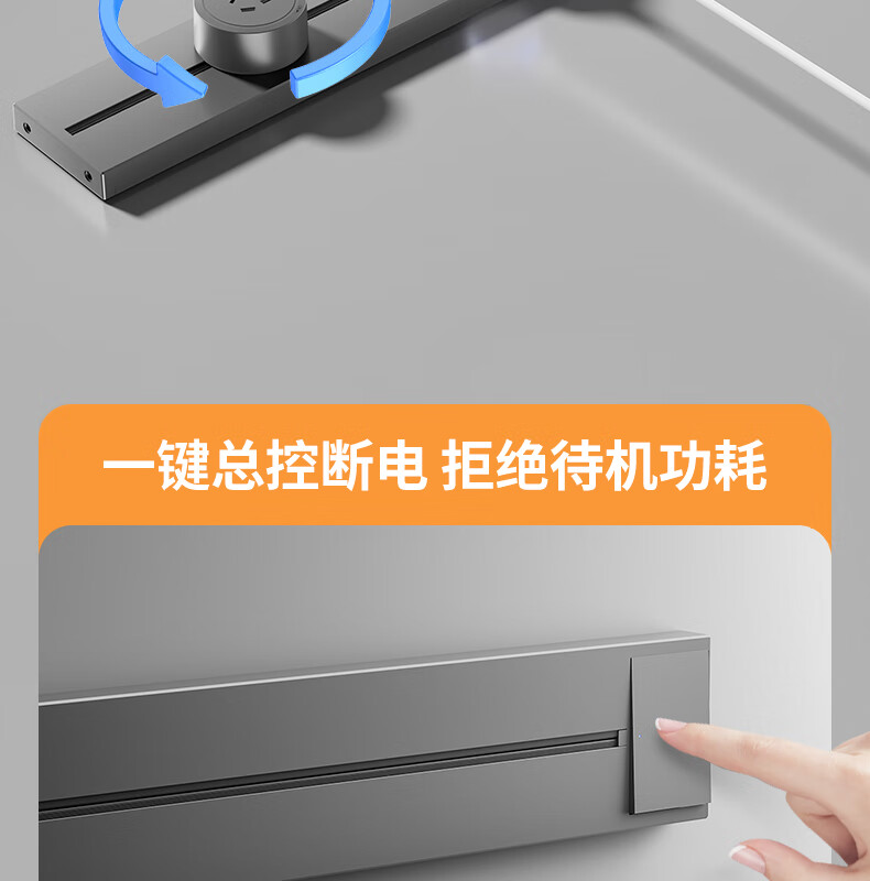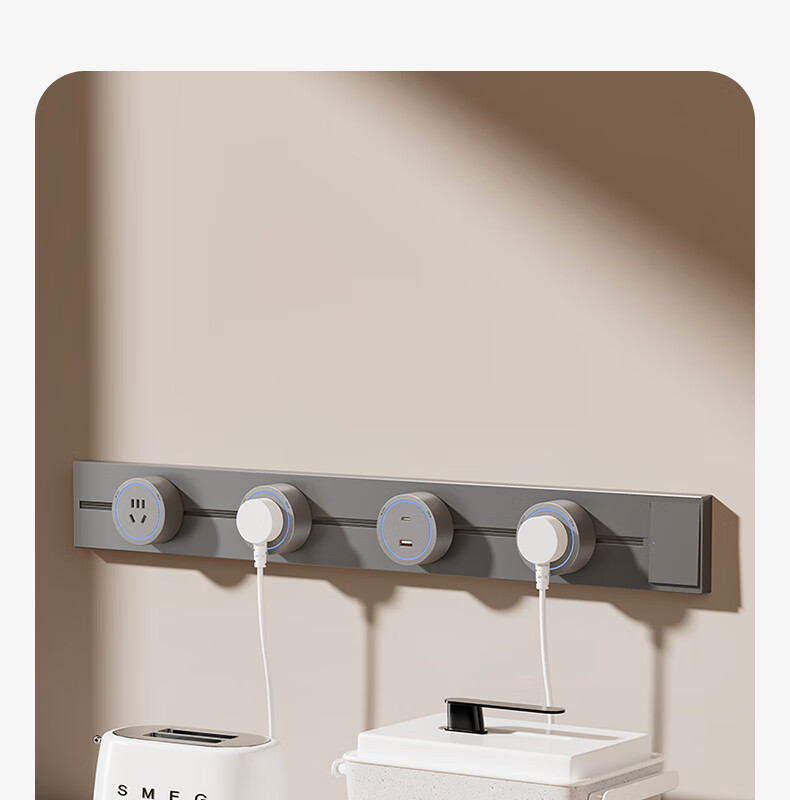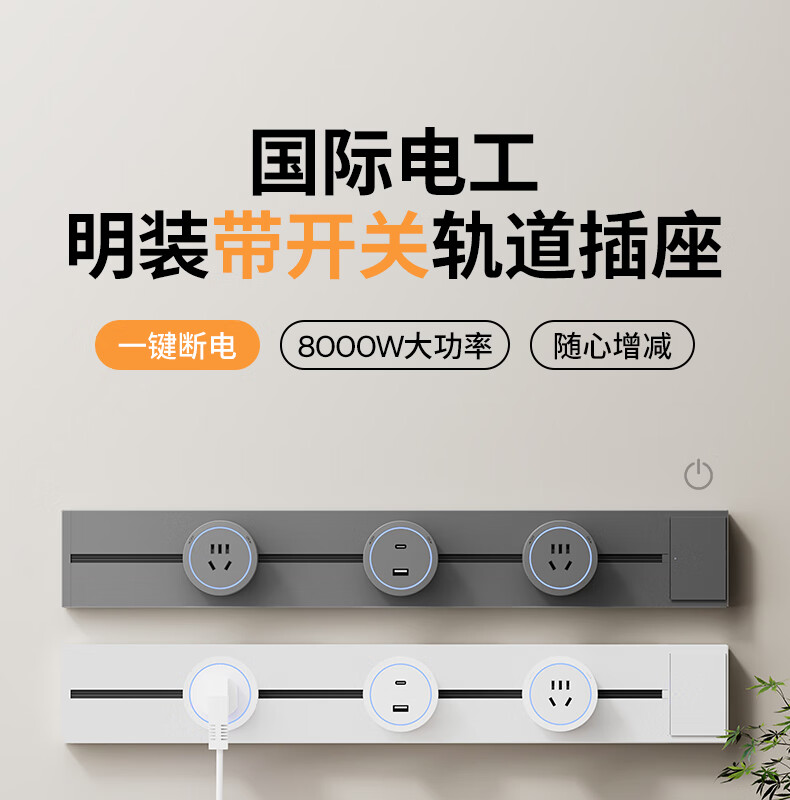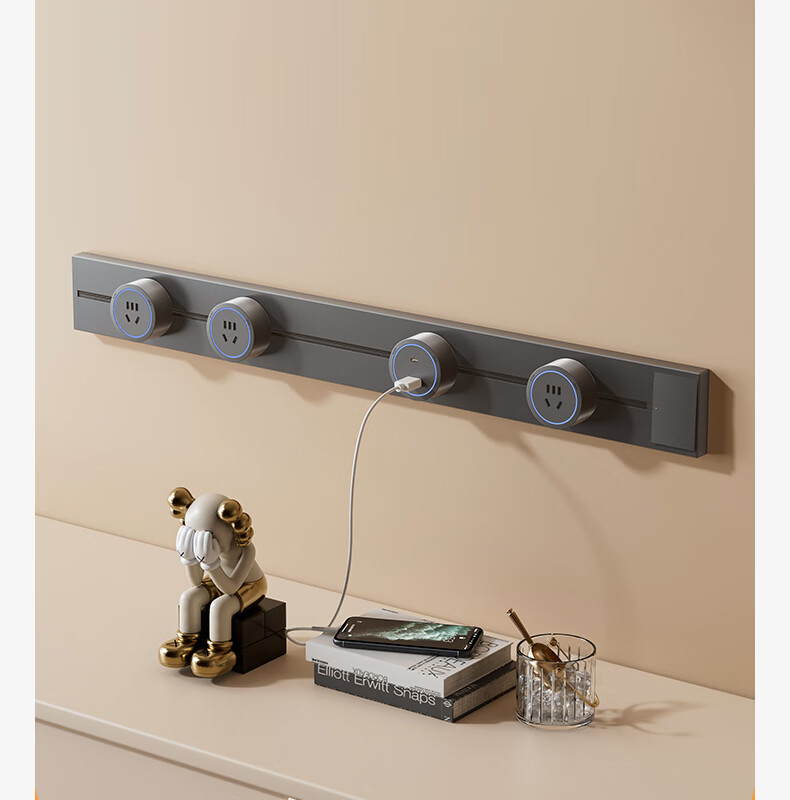 Movable surface-mounted track socket with switch, home kitchen sideboard sliding power guide rail extension strip, with switch, one-button power off, black 30CM rail A