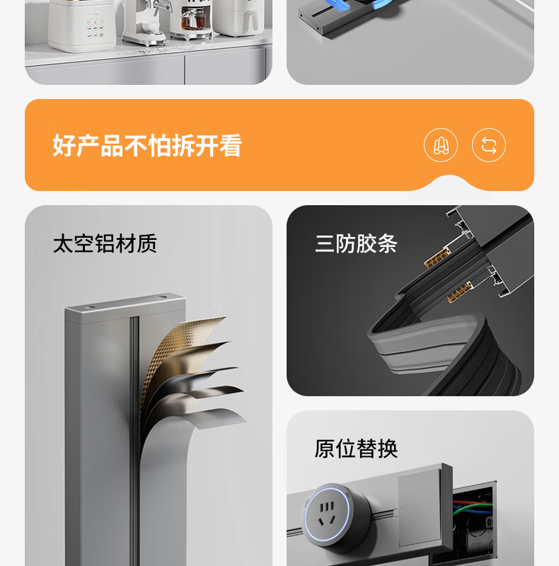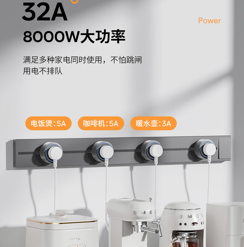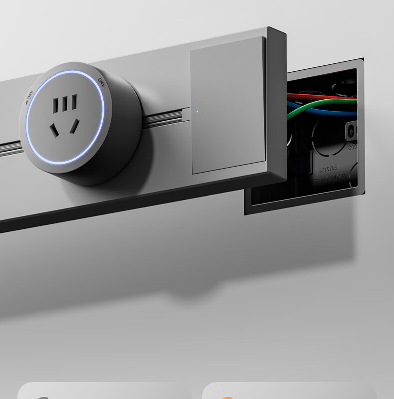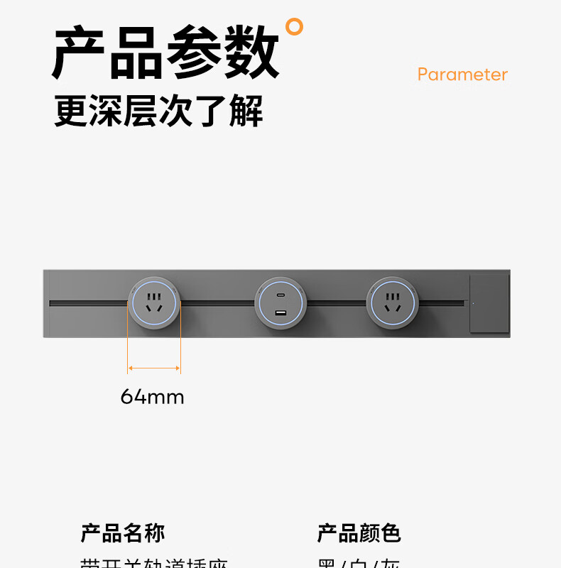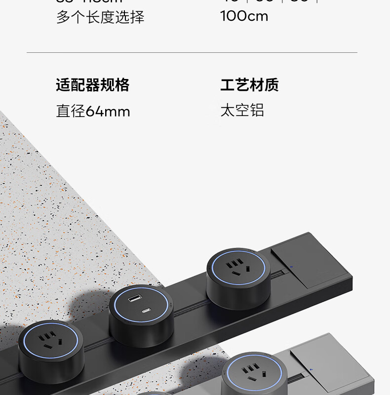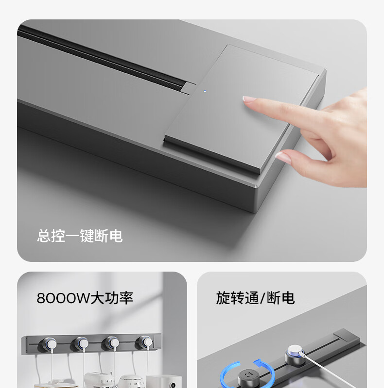 Movable surface-mounted track socket with switch, home kitchen sideboard sliding power guide rail extension strip, with switch, one-button power off, black 30CM rail A