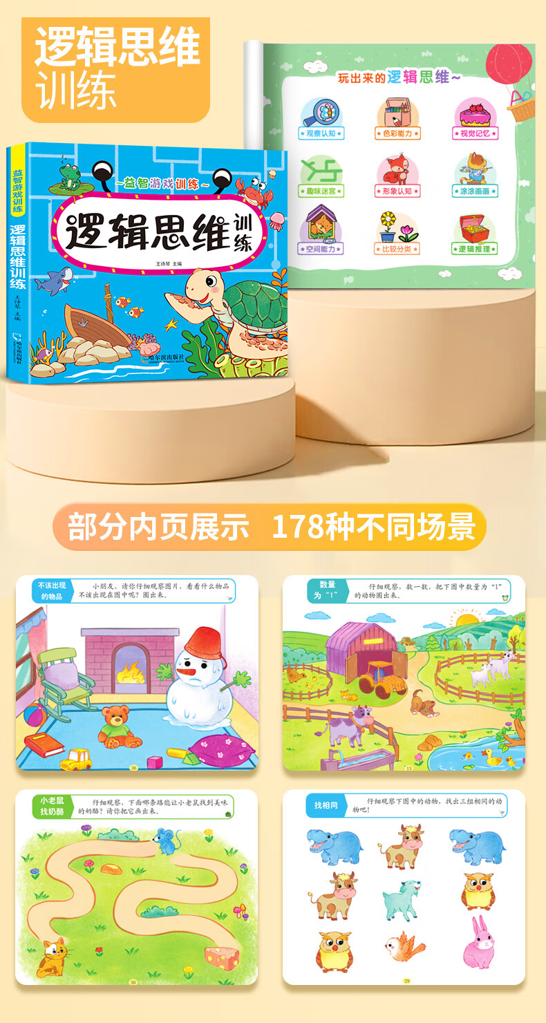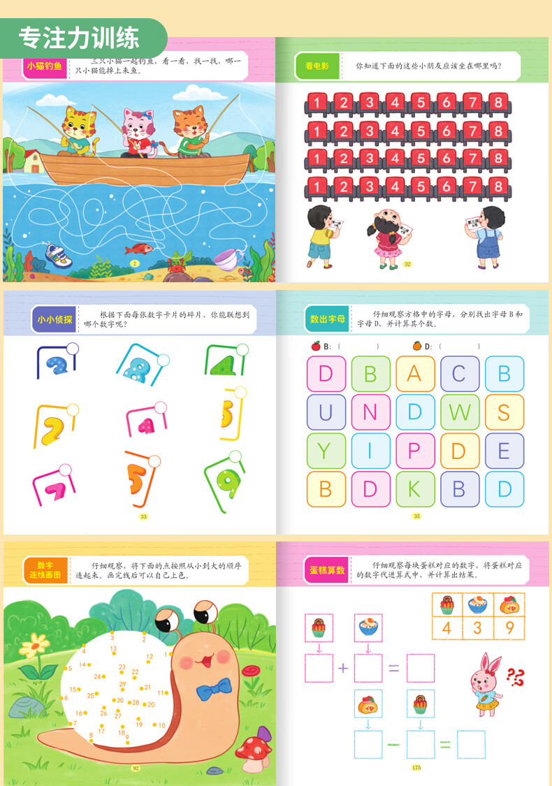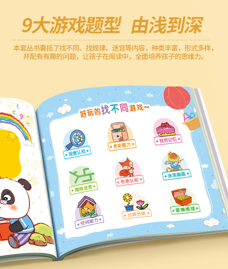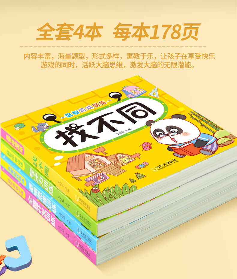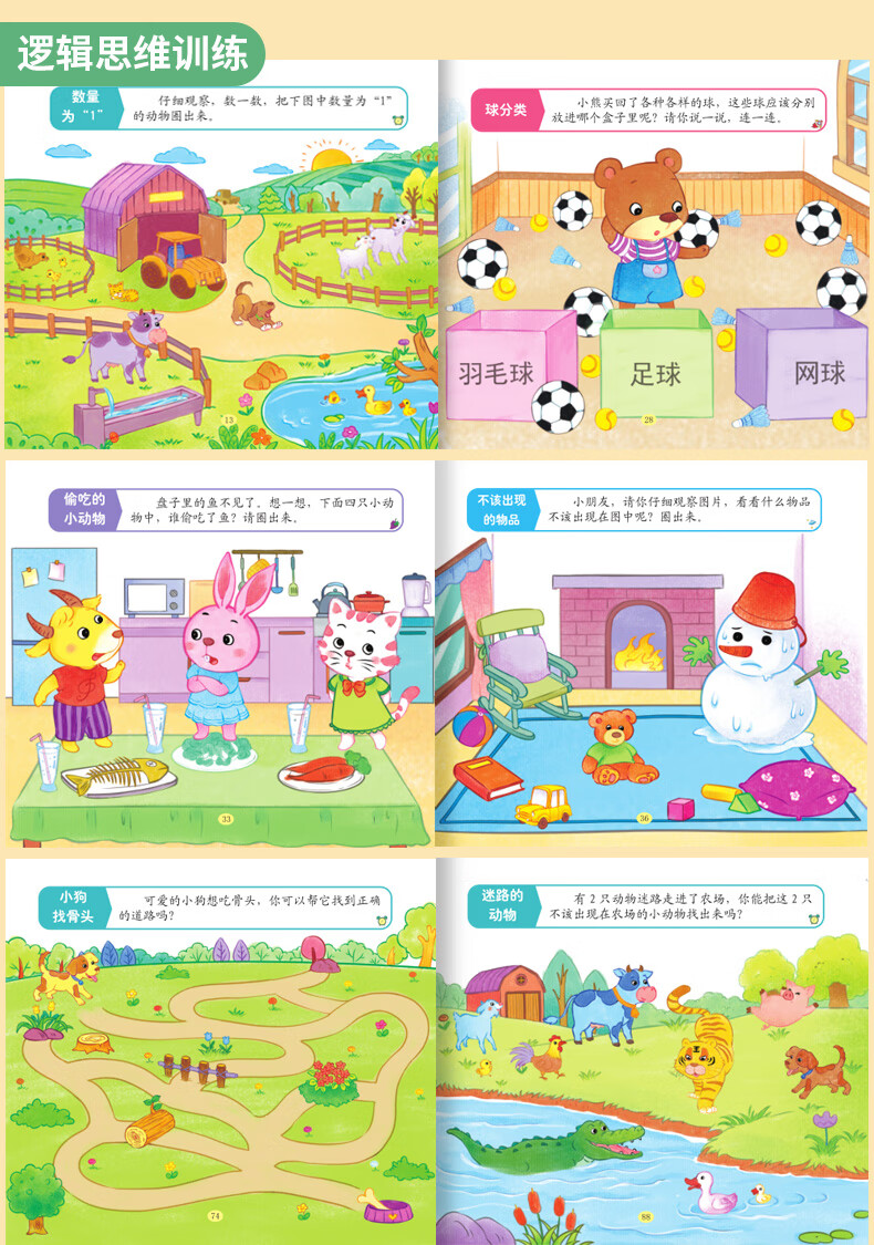 Early Childhood Enlightenment Book Find Differences Concentration Training 3-4-5-6-10 Years Old Mathematics Logical Thinking Training Book Whole Brain Development Thinking Training Children's Kindergarten Enlightenment Textbook Complete Set of 4 Game Books 3 Logical Thinking + Whole Brain Development + Concentration